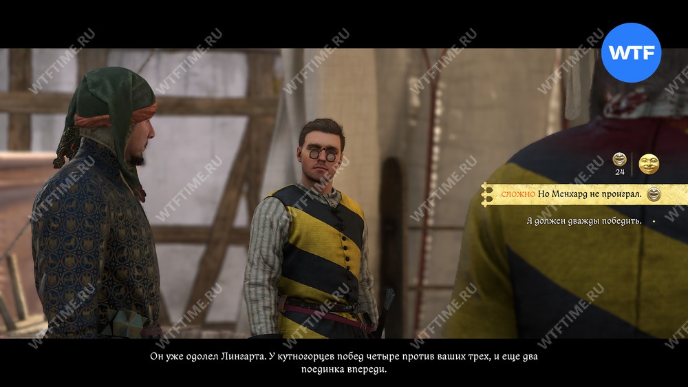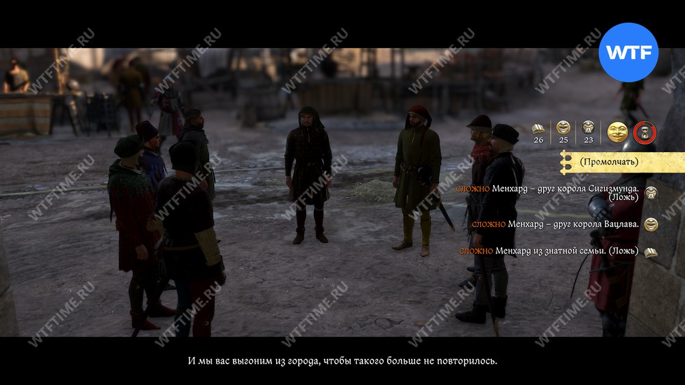 После этого вам придется пройти среднюю проверку убеждения и еще раз соврать, чтобы убедить рихтаржа, что Менхард не нарушал законов. От выбора варианта будет зависеть ваш штраф. Где-то вы теряете только репутацию, где-то еще и гроши: