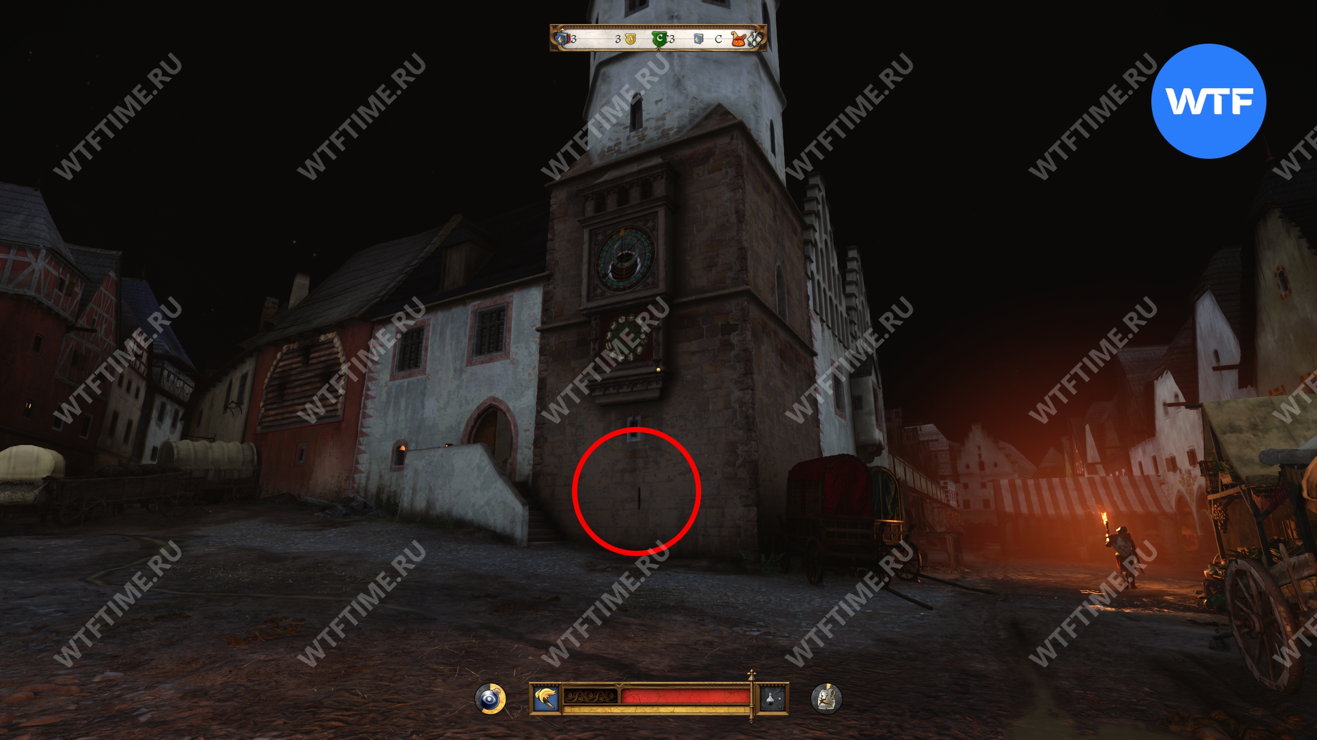 После этого отправляйтесь к кутногорской ратуше и повесьте меч прямо на внешнюю стену. Убедитесь, что рядом нет стражников, которые могут вас увидеть — их легко заметить по фонарям.