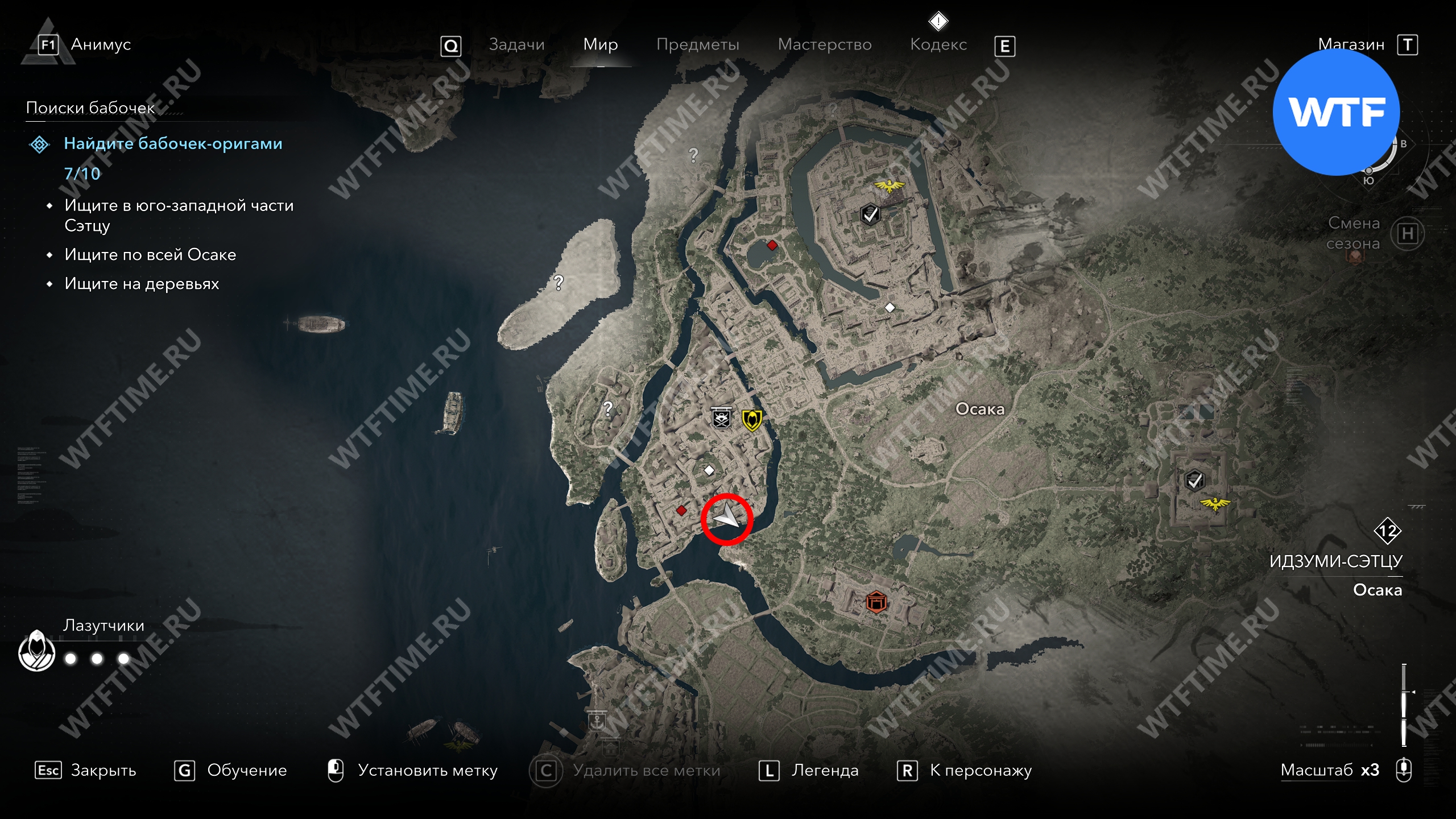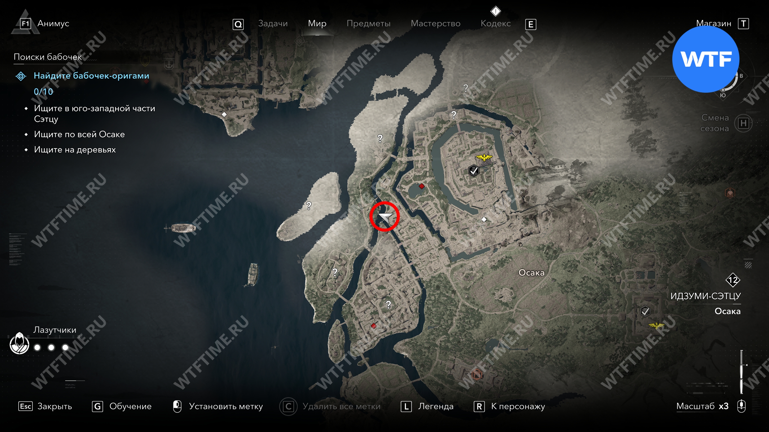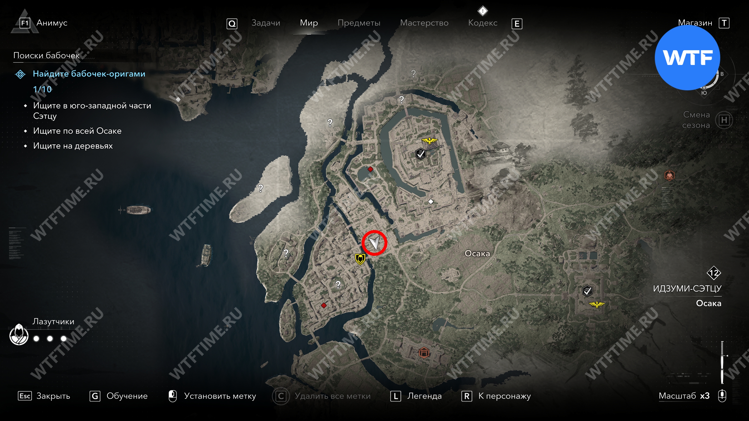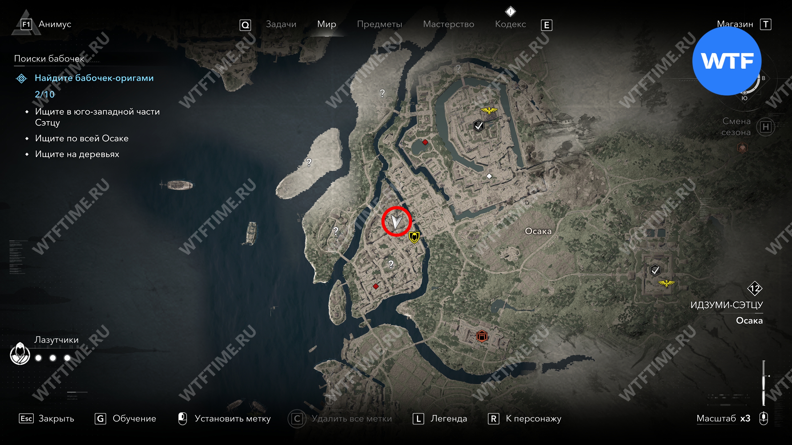 На картах ниже мы покажем точное расположение всех бабочек-оригами в AC Shadows. Прибыв в указанную область, нажмите на правую кнопку мыши, чтобы перейти в режим наблюдения. Бабочка будет подсвечена голубым кругом.