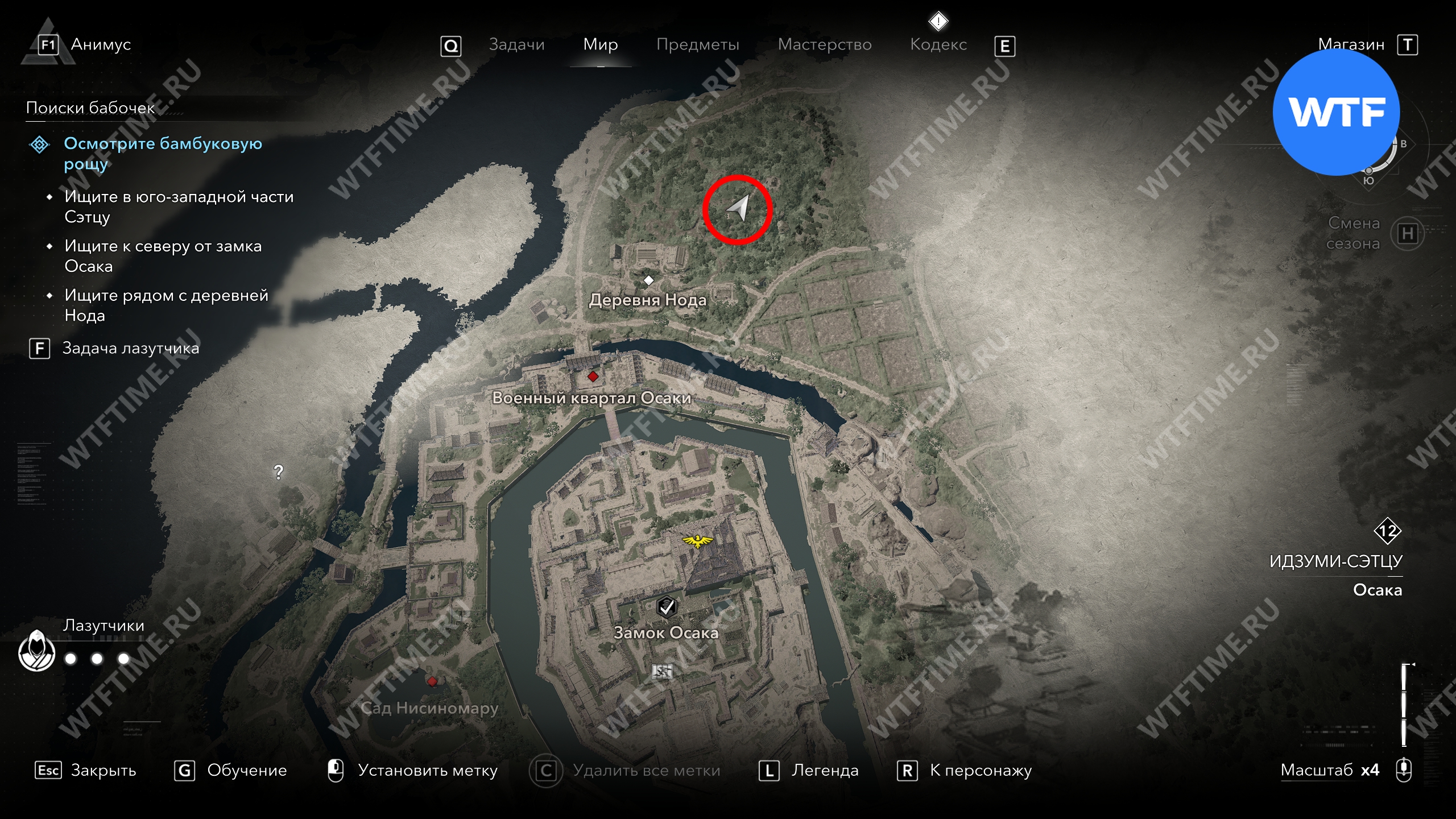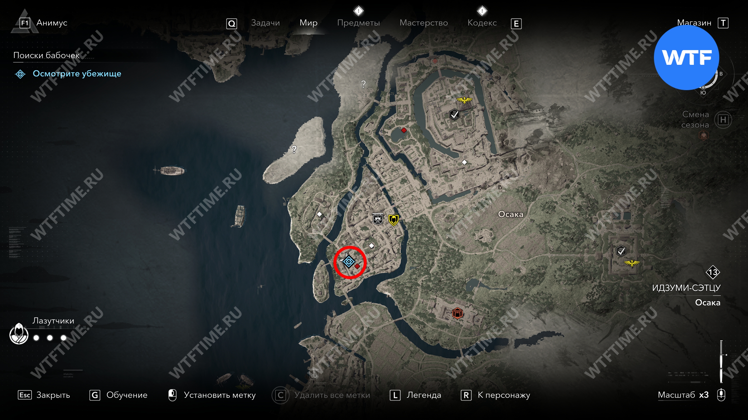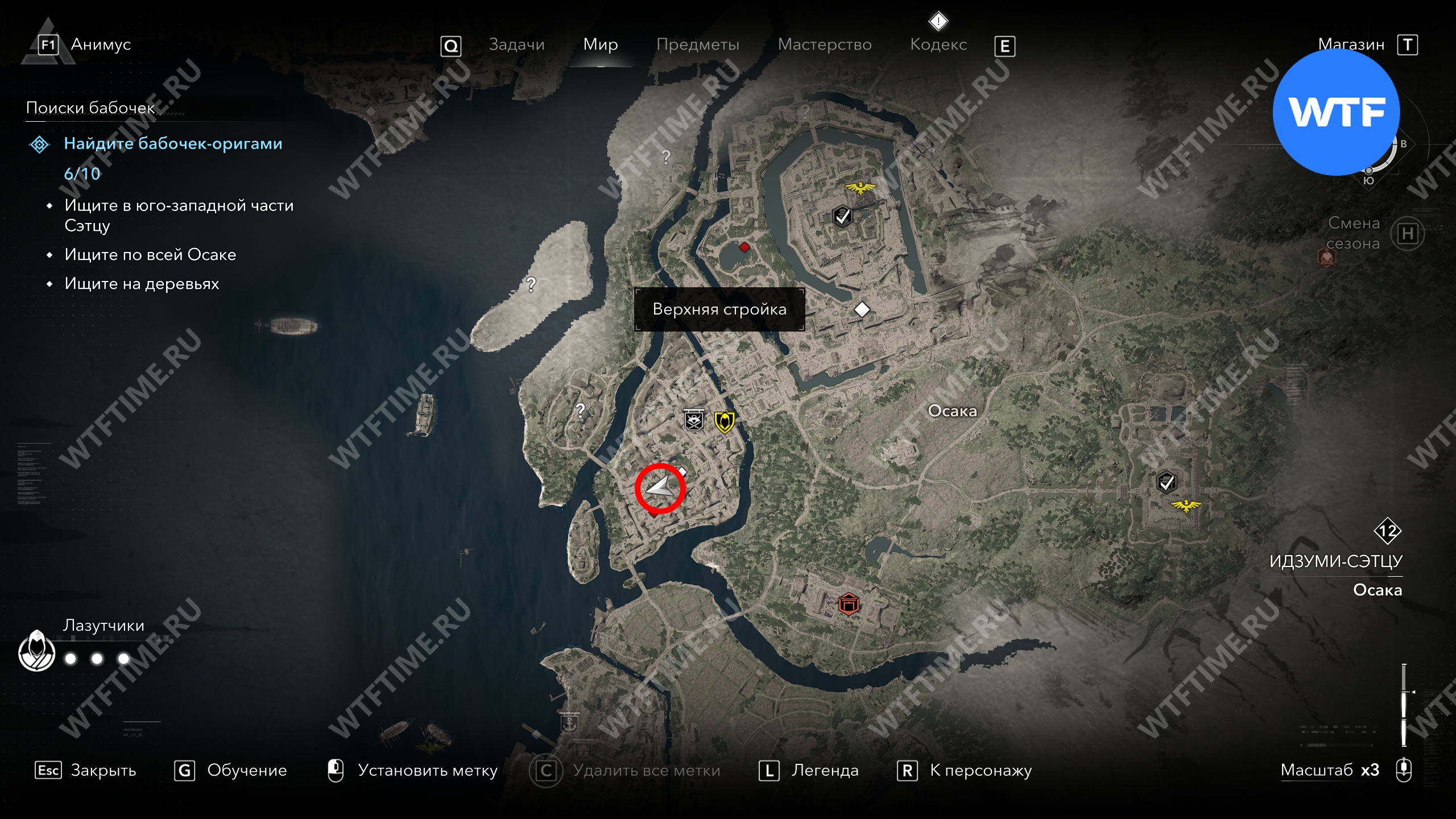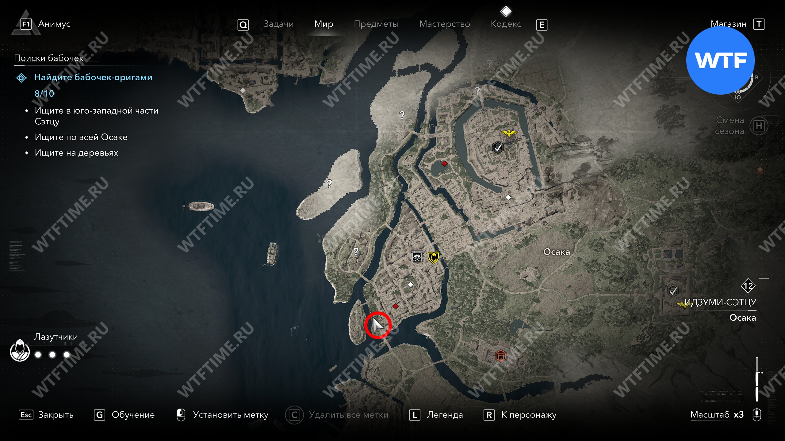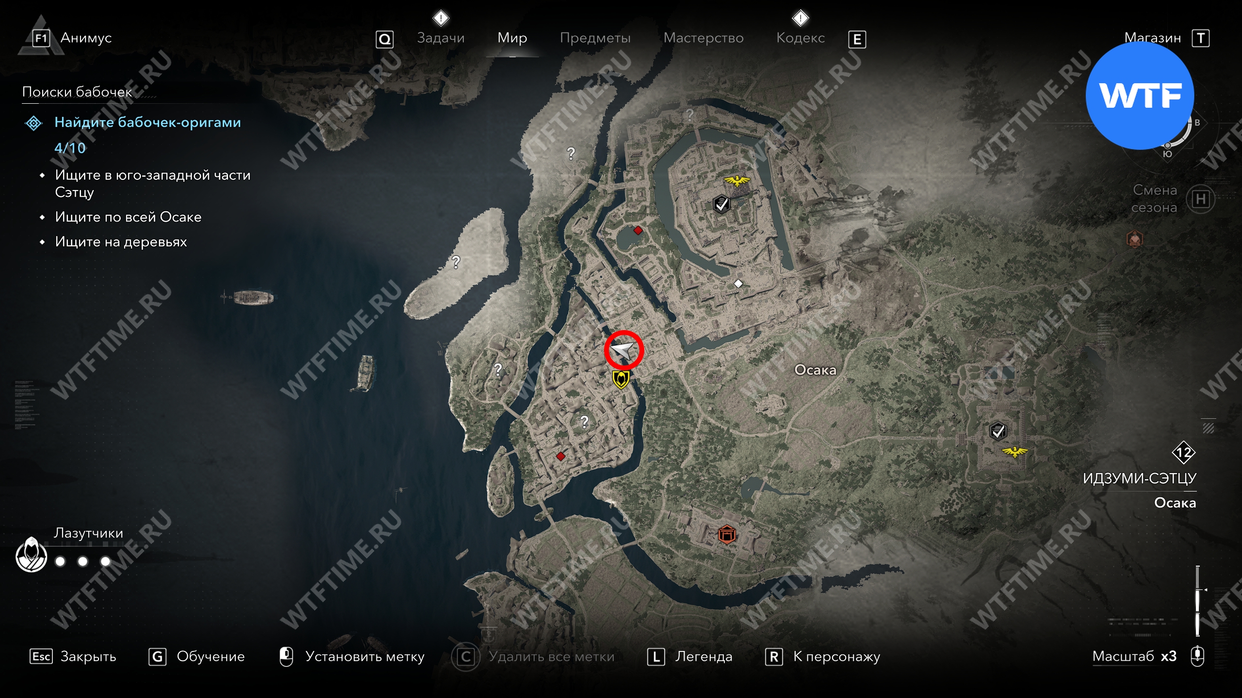 На картах ниже мы покажем точное расположение всех бабочек-оригами в AC Shadows. Прибыв в указанную область, нажмите на правую кнопку мыши, чтобы перейти в режим наблюдения. Бабочка будет подсвечена голубым кругом.