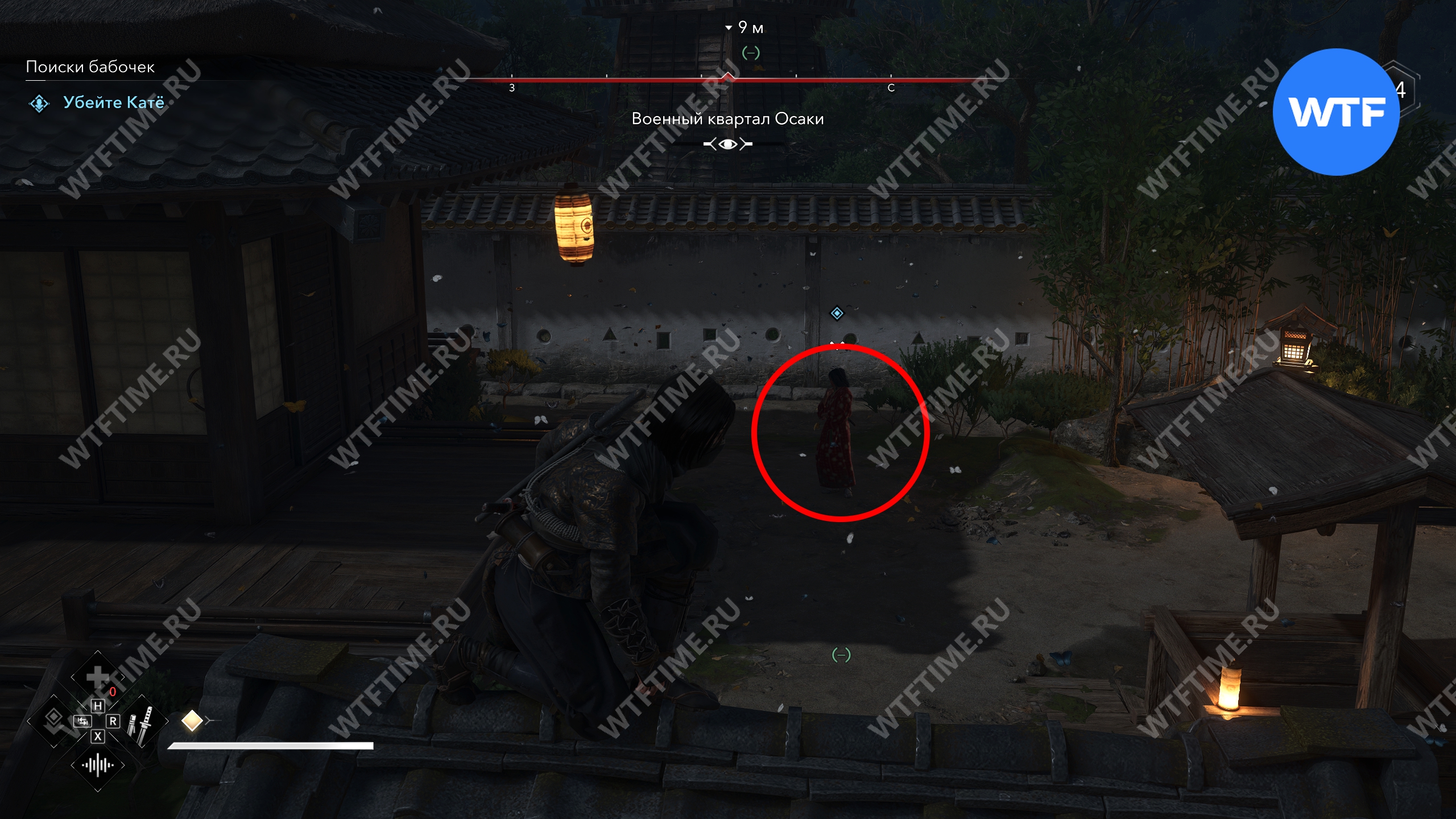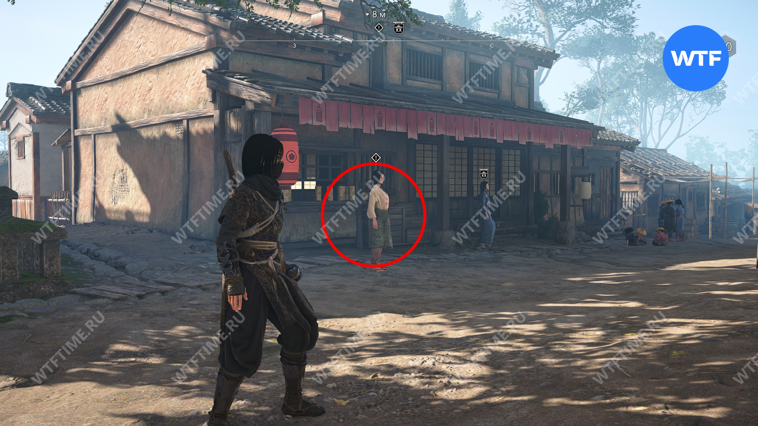 Женщину, возглавляющую сообщество по похищению детей, вы найдете в северной части сада Нисиномару. Убить её скрытно не получится, так как при приближении запускается кат сцена.