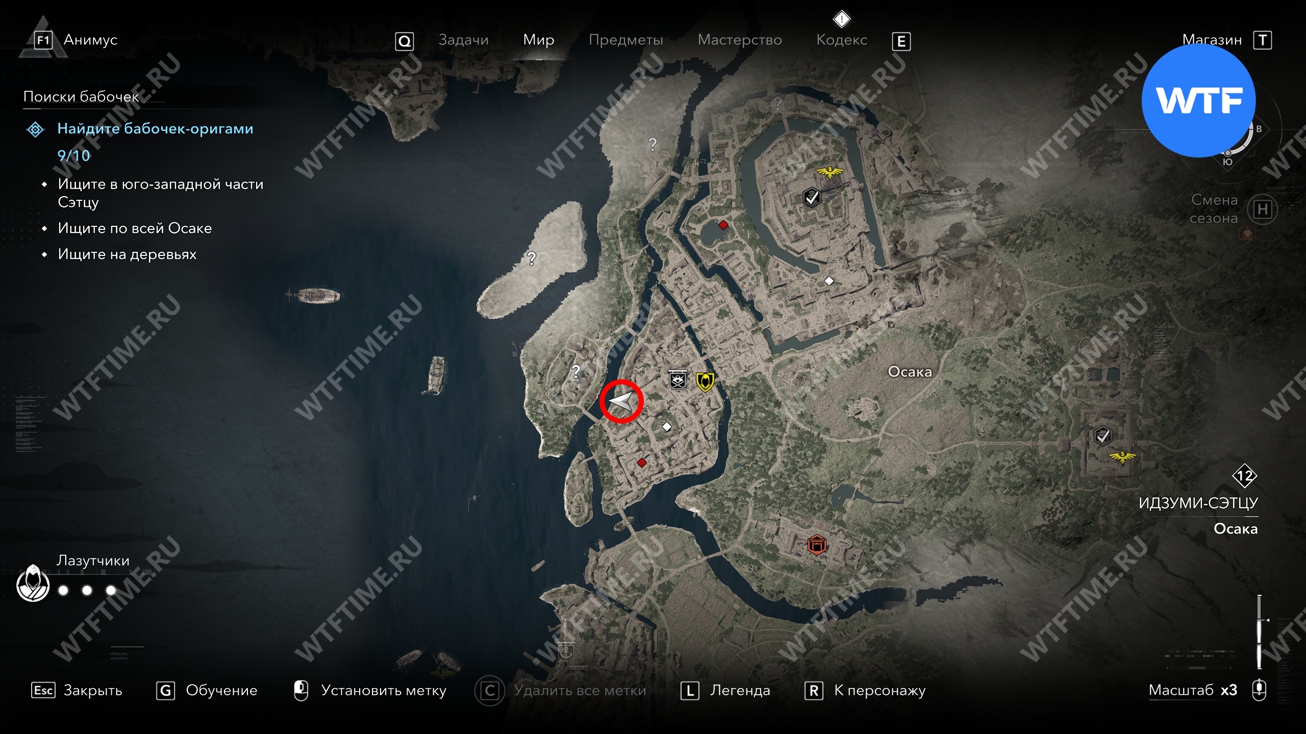 Поиски бабочек в Assassin's Creed Shadows: найдите бабочек-оригами