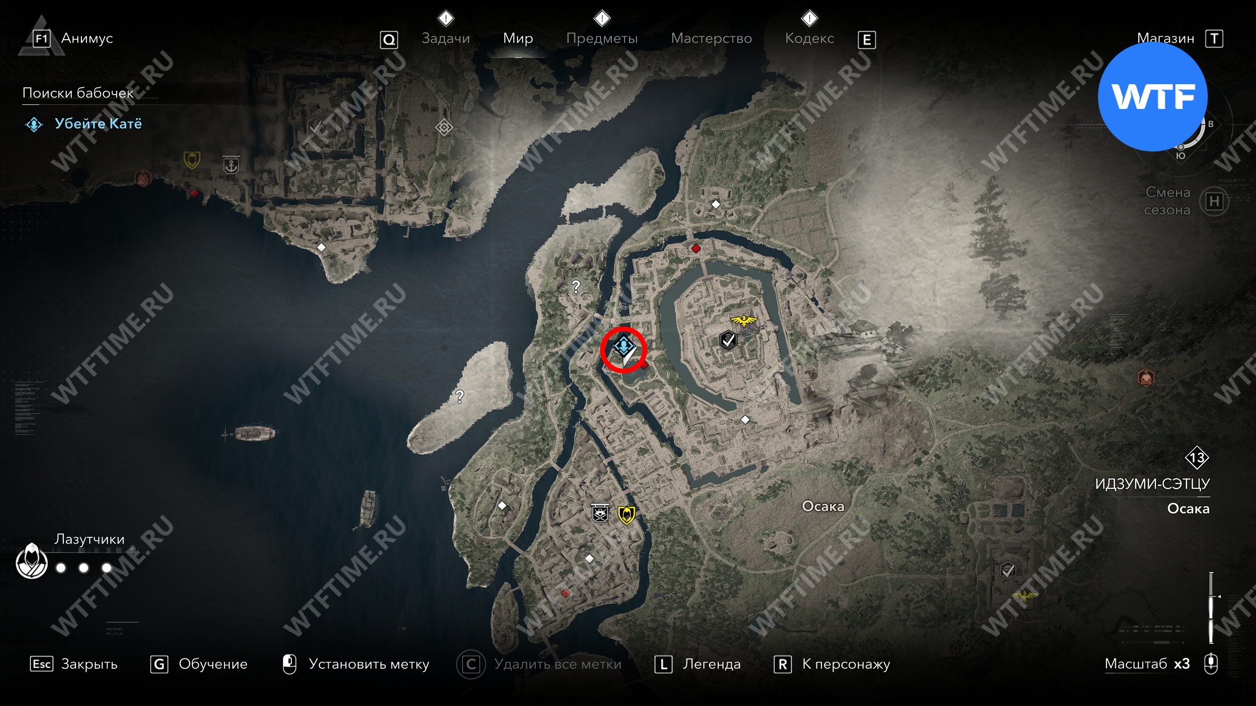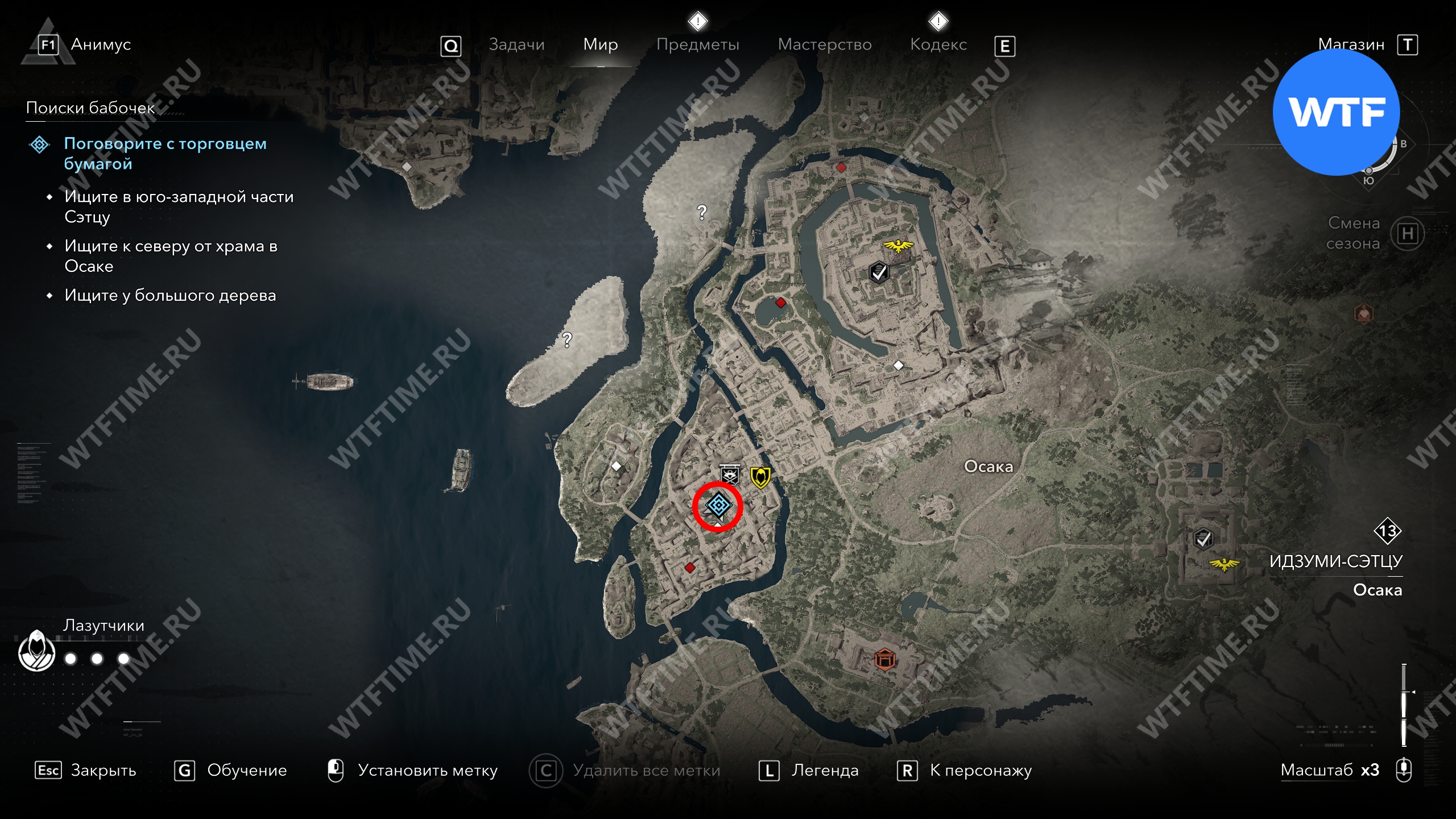 Чтобы начать прохождение квеста «Поиски бабочек» в Ассасин Крид Шадоу, отправляйтесь в Катано в центральной части Идзуми-Сэтцу. Вам нужно отыскать девушку, стоящую возле торговца декором.