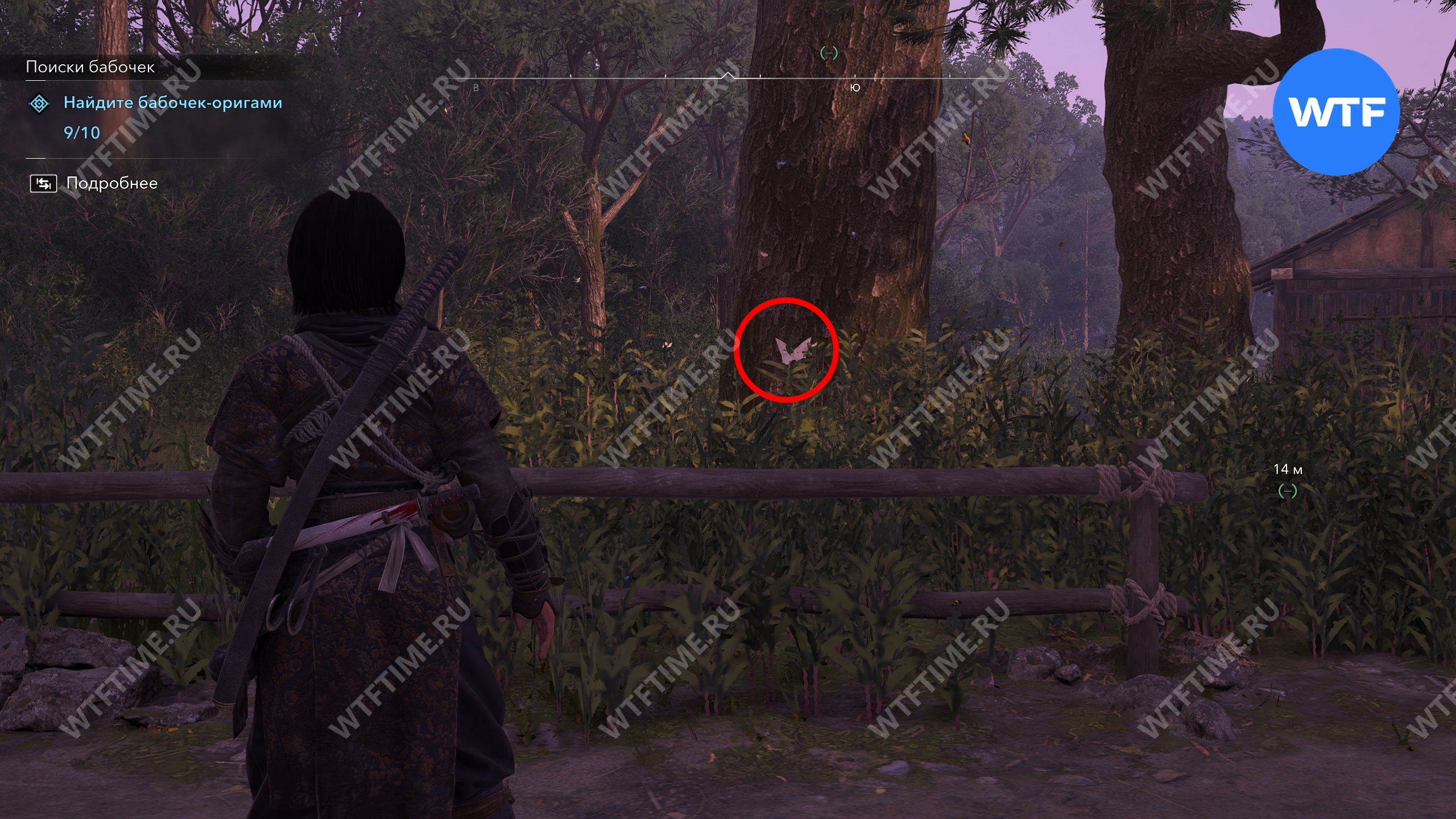Для выполнения первого этапа задания вы должны отыскать 10 бабочек-оригами. Все они сидят на деревьях и расположены относительно недалеко друг от друга. Белые бабочки содержат таинственные послания, которые разблокируют следующие квесты.