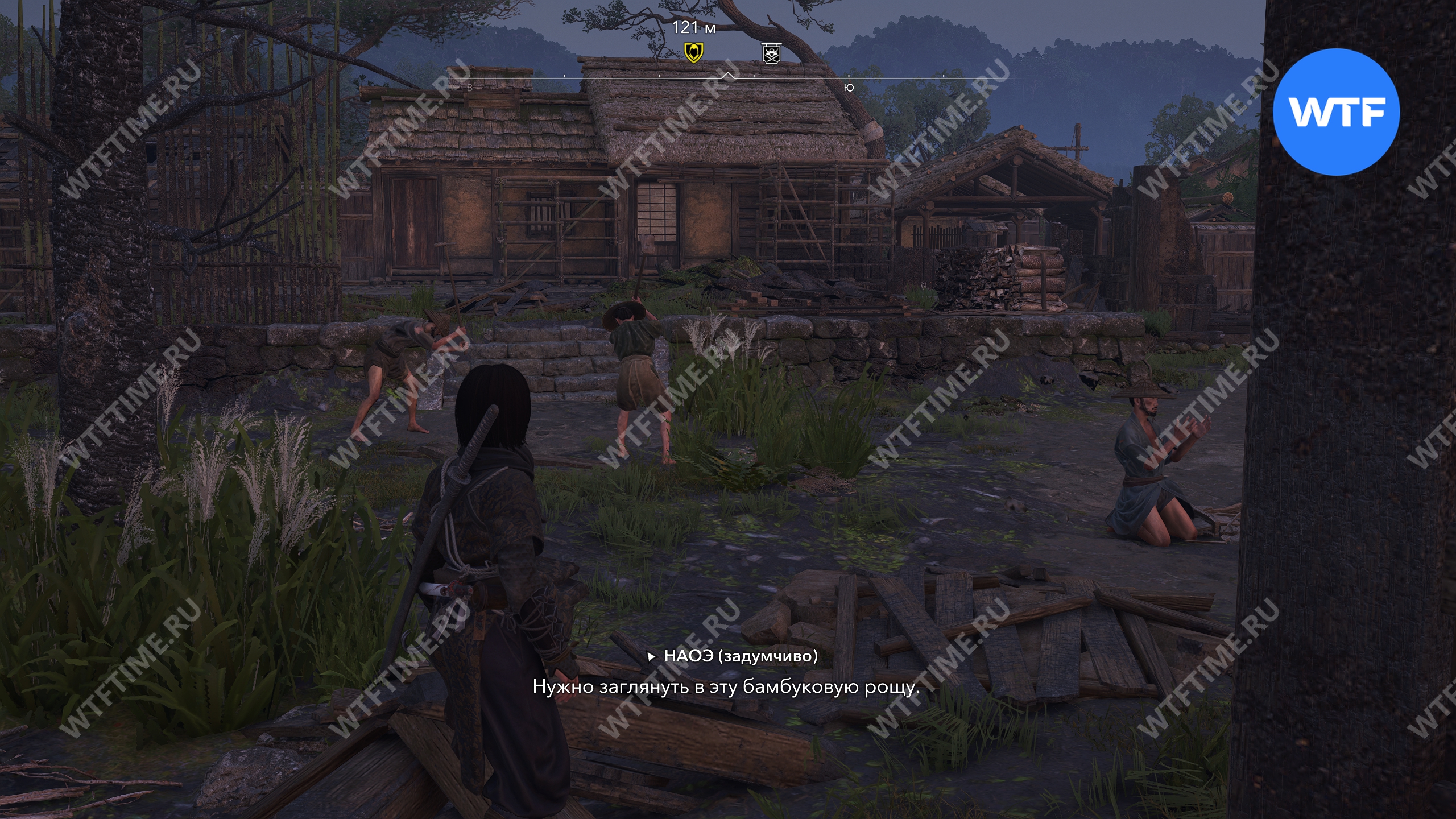 Место, на которое указывают подсказки из квеста, показано на скриншоте ниже. Вам нужно прийти туда и послушать разговор двух рабочих про женщину, часто посещающую бамбуковую рощу.