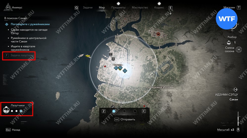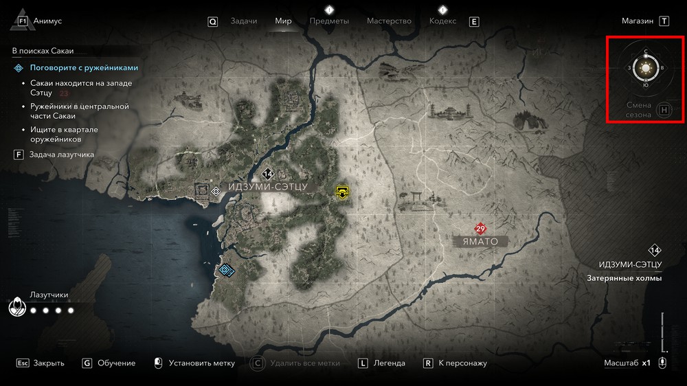 - Смена сезонов — при смене сезона ваш запас лазутчиков автоматически пополняется. Вы также можете изменить сезон вручную, если белая полоса на вашем компасе заполнена достаточно.