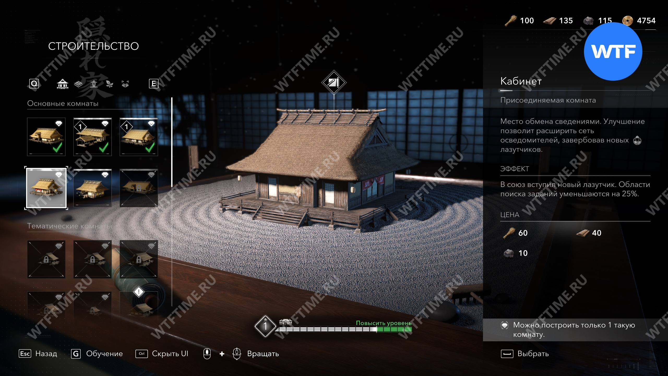 - Кабинет — его постройка в Убежище и последующее улучшение принесет вам по одному дополнительному лазутчику за каждый уровень.