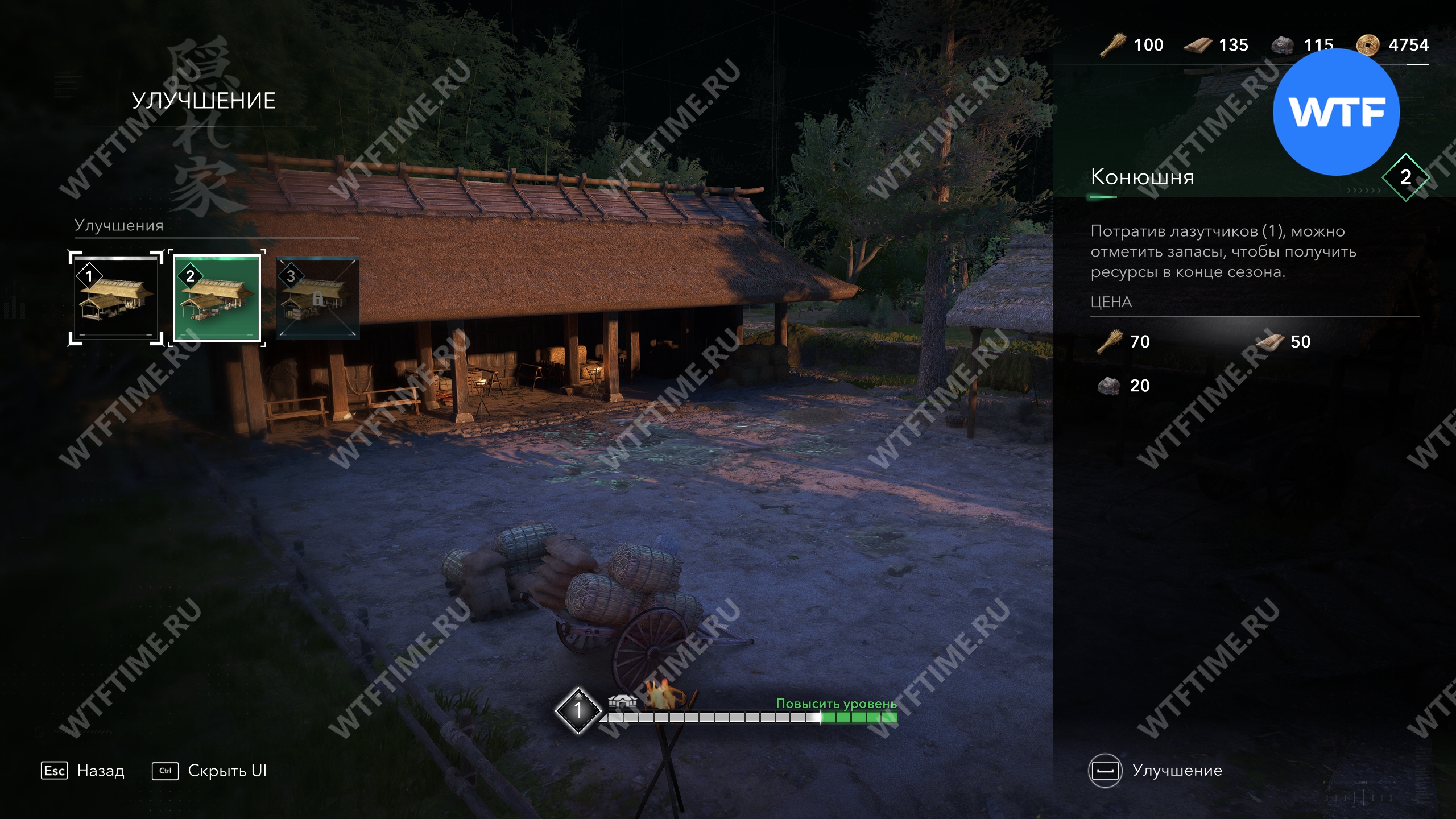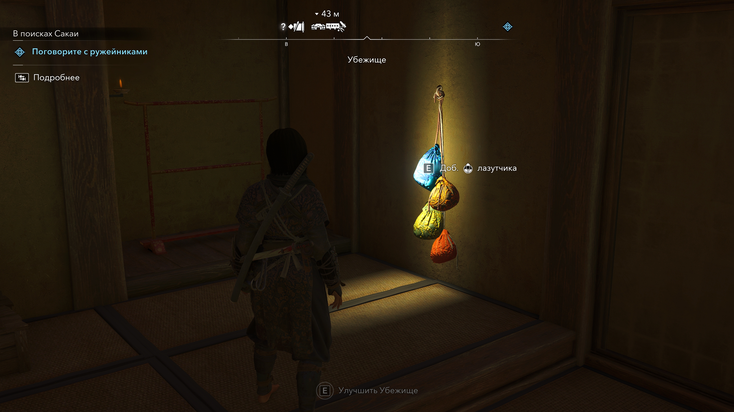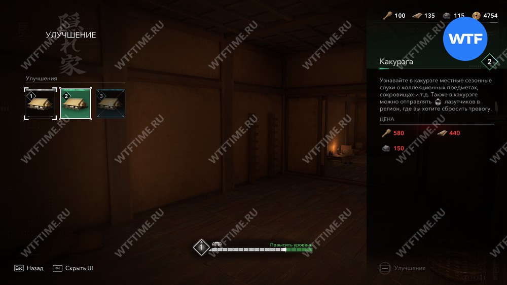 Также лазутчиков можно использовать для сброса тревоги в регионе, чтобы охота на вас не мешала исследованиям. Чтобы использовать этот вариант, нужно улучшить какурэгу в Убежище до 2 уровня.