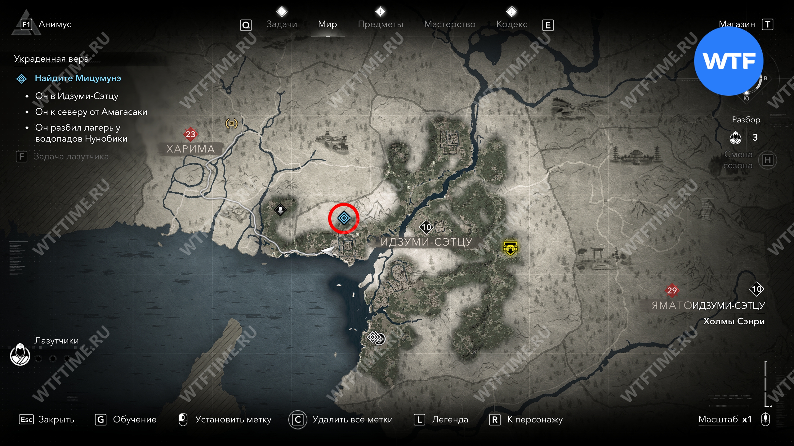 Неподалеку есть точка быстрого перемещения «Дозорная башня Накаяма». Рекомендуем сразу открыть её, чтобы позже вы смогли быстро вернуться обратно в лагерь к Мицумунэ.