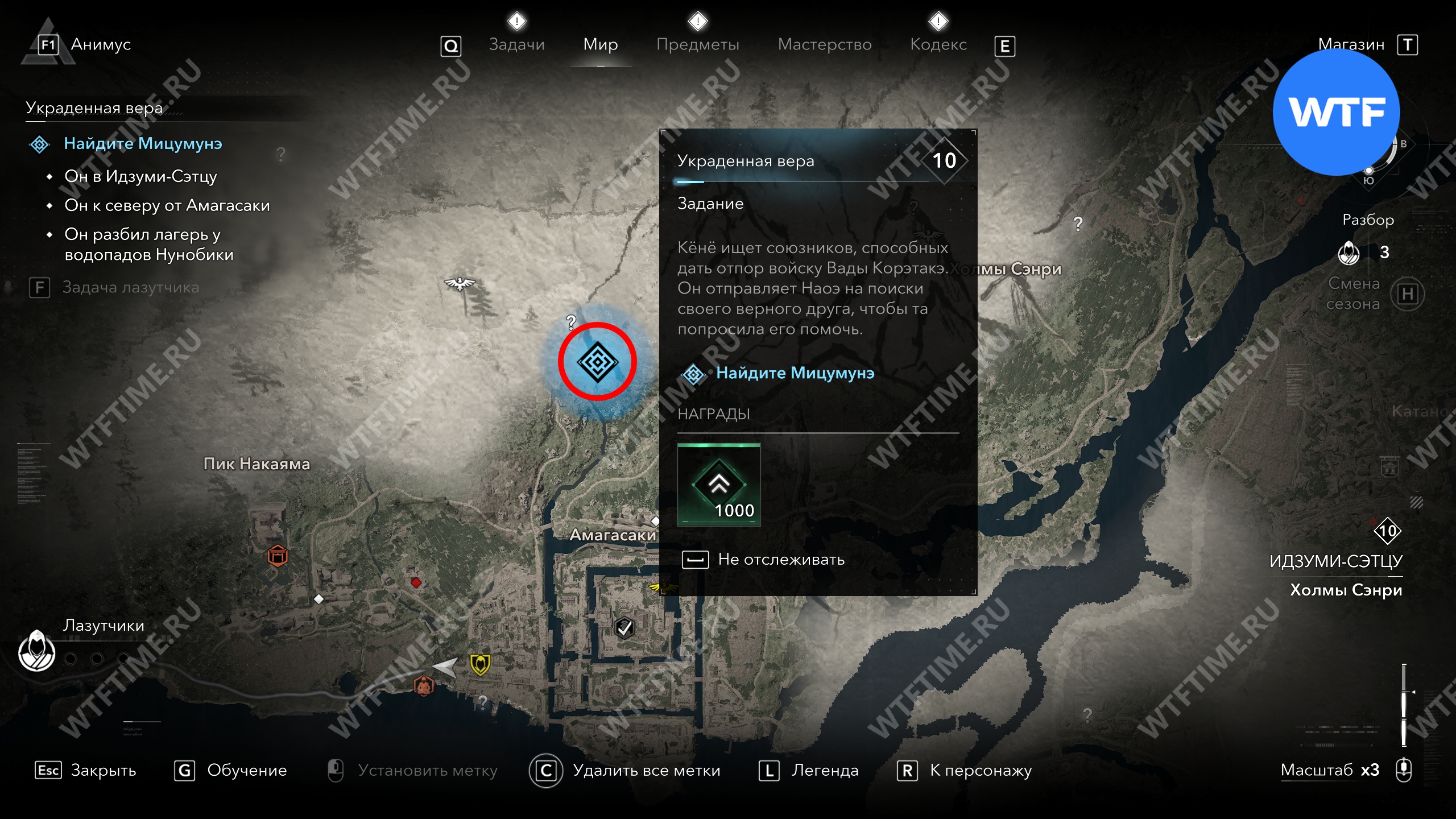 После этого останется только вернуться Мицумунэ. На этом прохождение квеста «Украденная вера» в AC Shadows будет завершено. В награду за его завершение вы получите 1000 опыта и сможете перейти к следующему квесту в цепочке «Голову с плеч».