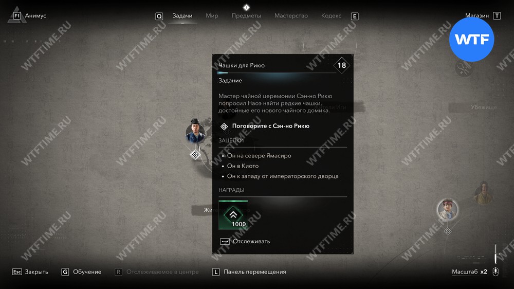 Чтобы начать прохождение квеста «Чашки для Рикю» в Ассасин Крид Шадоу, вы предварительно должны завершить сюжетную цепочку квестов по убийству онрё Золотое Тэппо. После этого в вашем меню задач появится новая отметка.