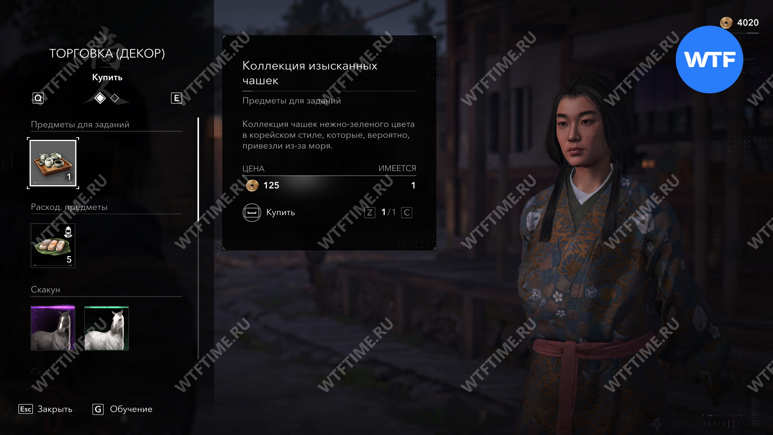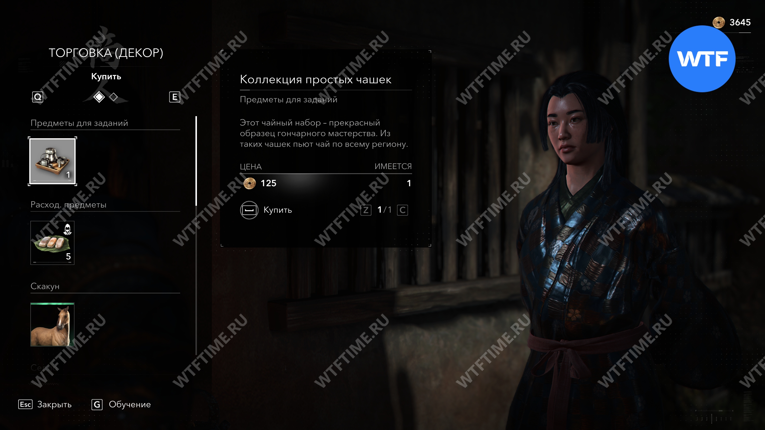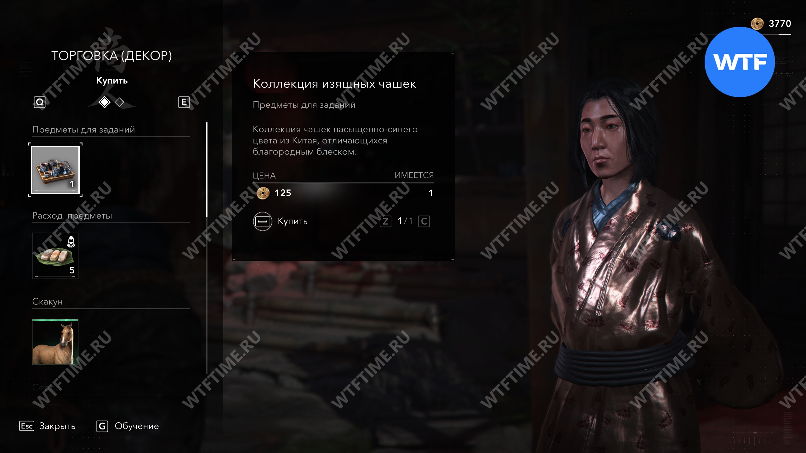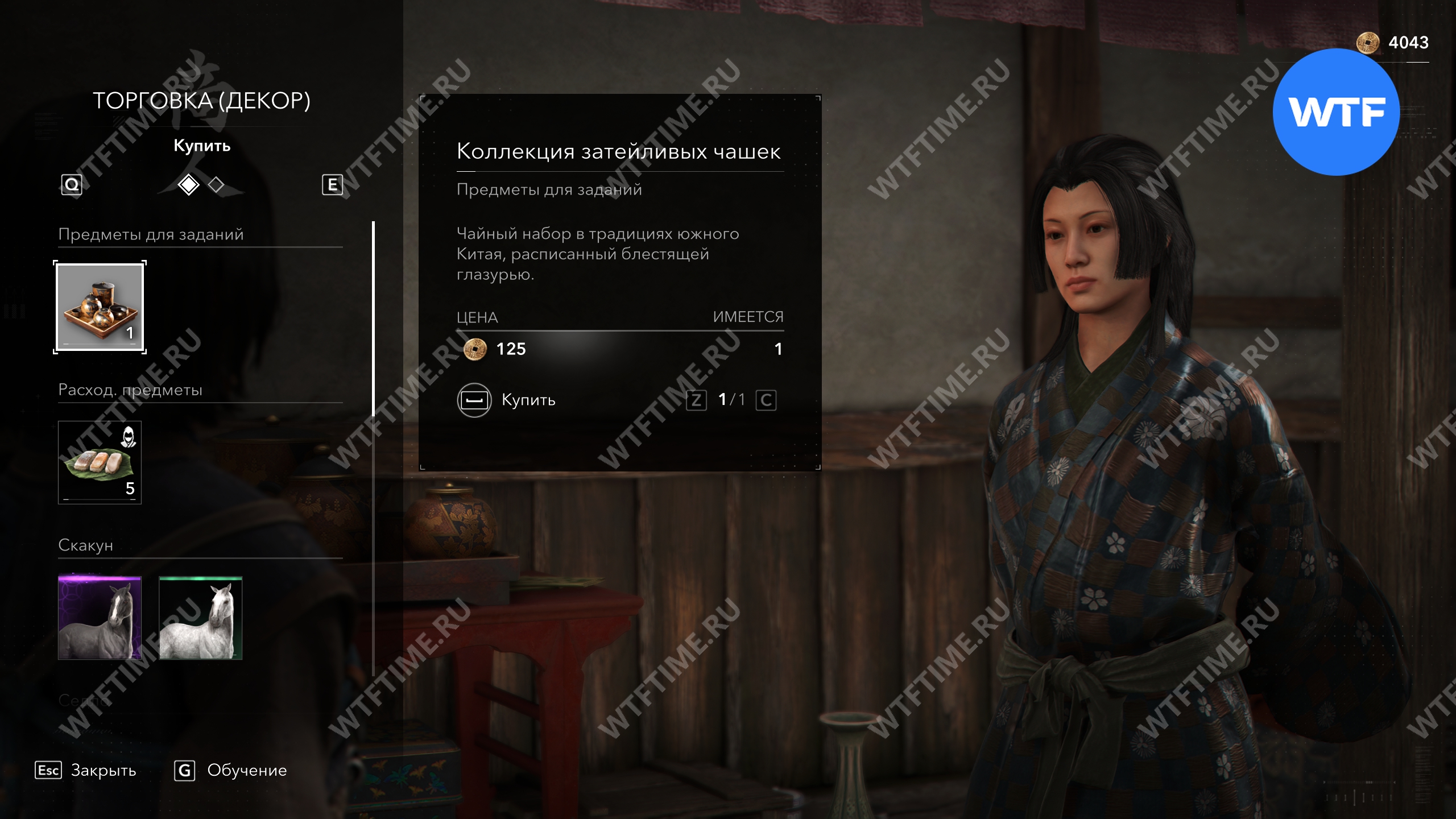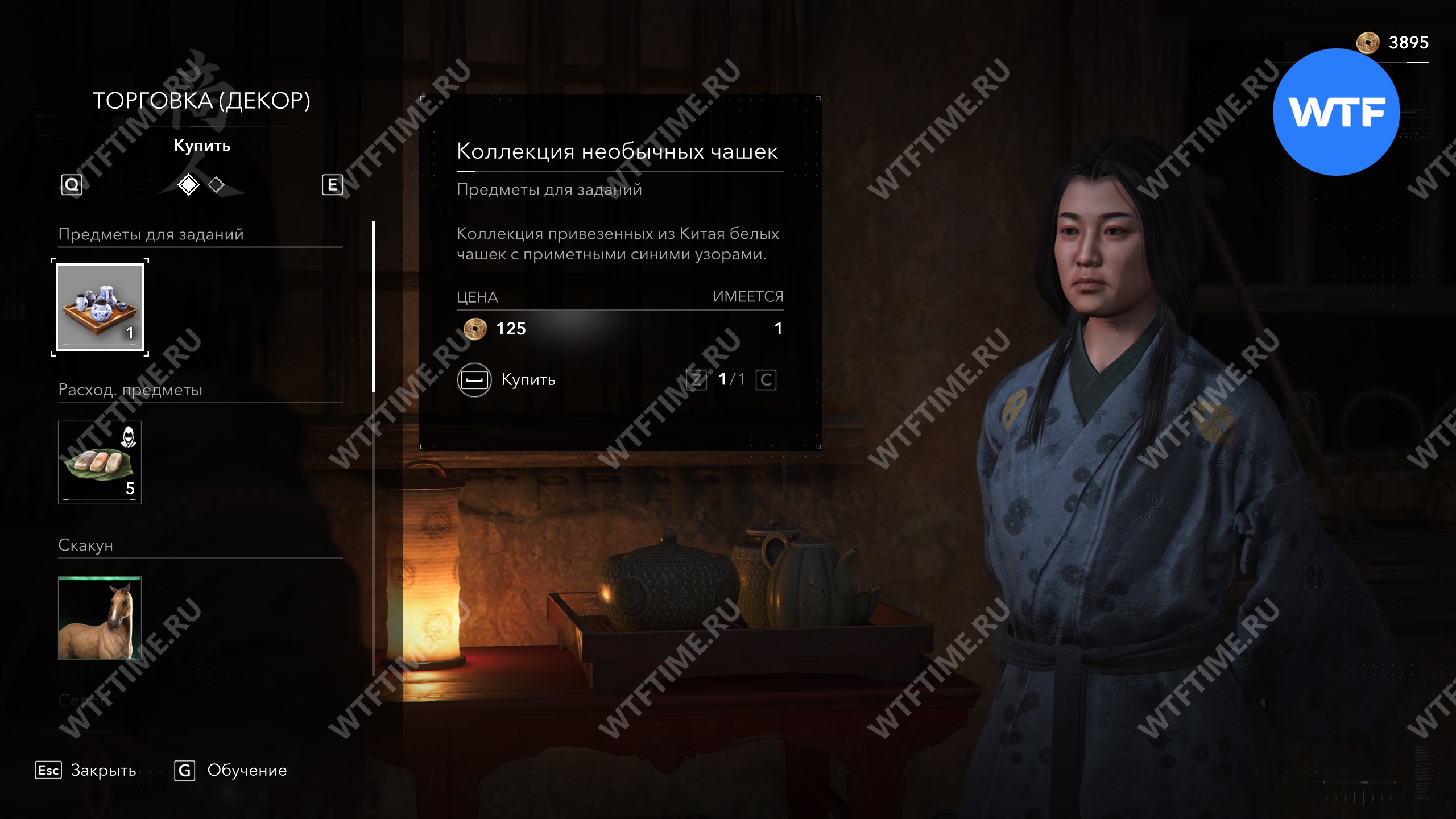 Последний набор чашек вы получите в награду за убийство онрё Мудрость по сюжету. Затем вы сможете вернуться к мастеру Сэн-но Рикю, который даст вам некоторые предметы декора.