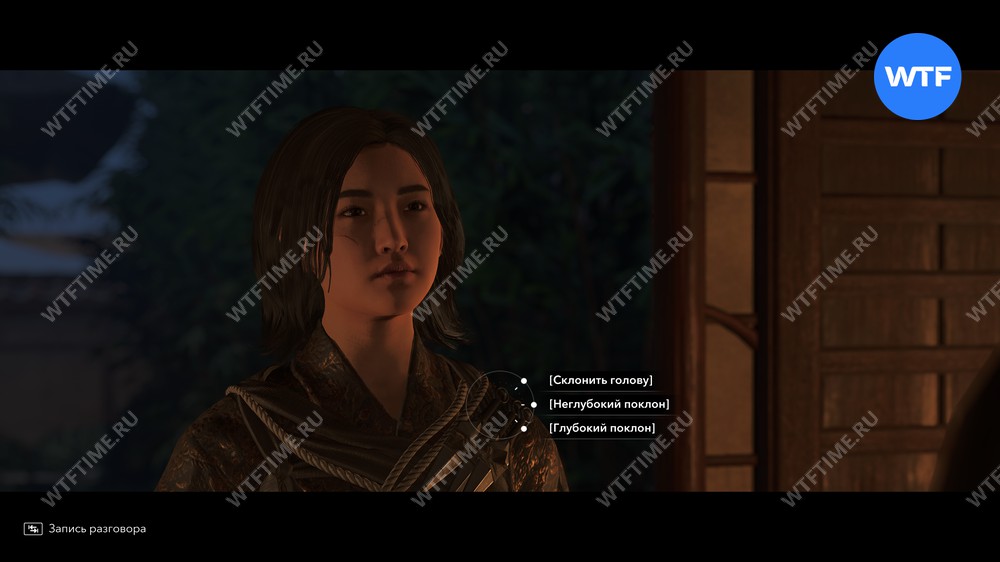 Идите следом за Сен-но Рикю, чтобы добраться до места, где пройдет обучение. Первое, что вам предложат освоить — это приветственный поклон. Правильный ответ здесь — «Неглубокий поклон», но если вы ошибетесь, то ничего страшного не произойдет, вас просто поправят.