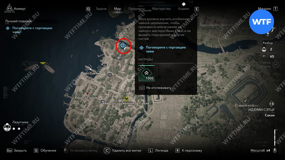 Точное место, где можно найти лавку торговца чаем, показано на скриншоте ниже. Поговорите с Сен-но Рикю и он согласиться рассказать вам об особенностях проведения чайной церемонии.