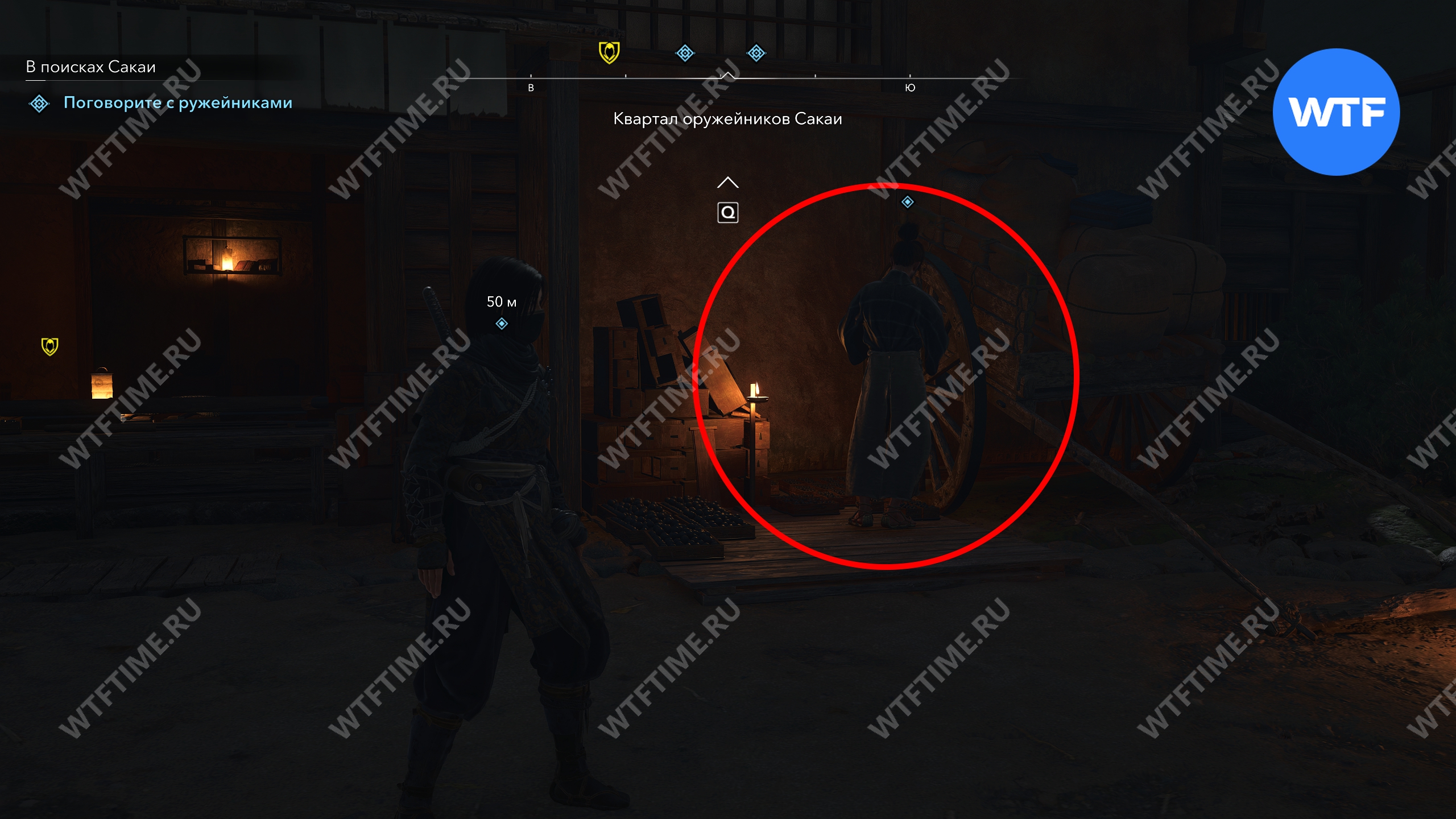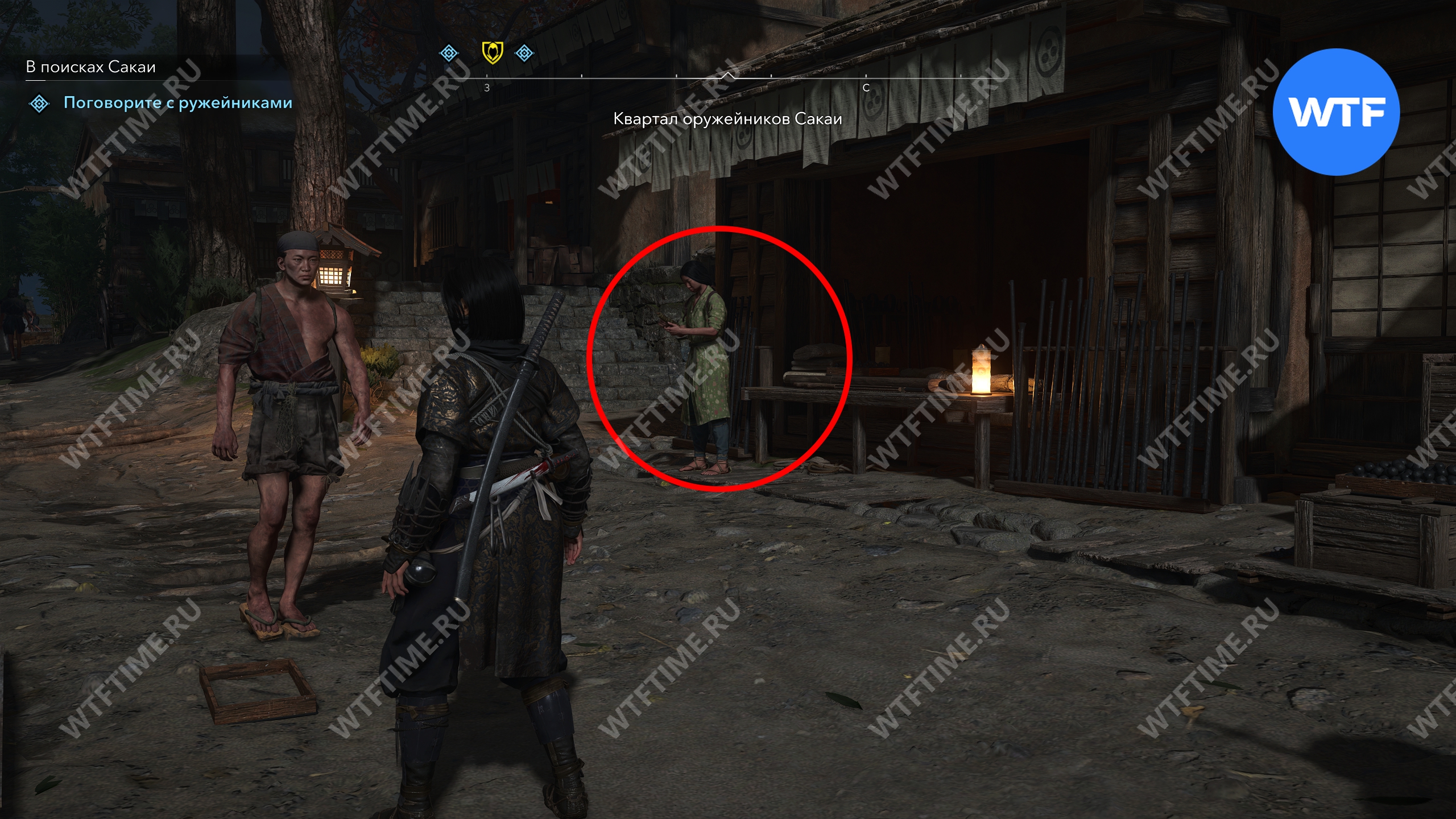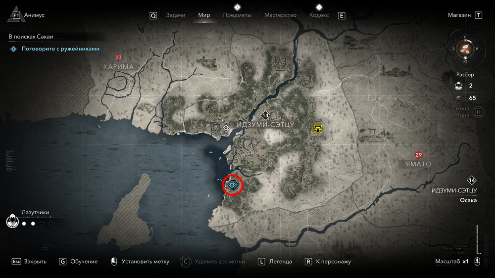 Вы можете найти трех ружейников в квартале оружейников Сакаи (три верхние отметки на скриншоте ниже), однако у них не будет той информации, которую вы ищите.
