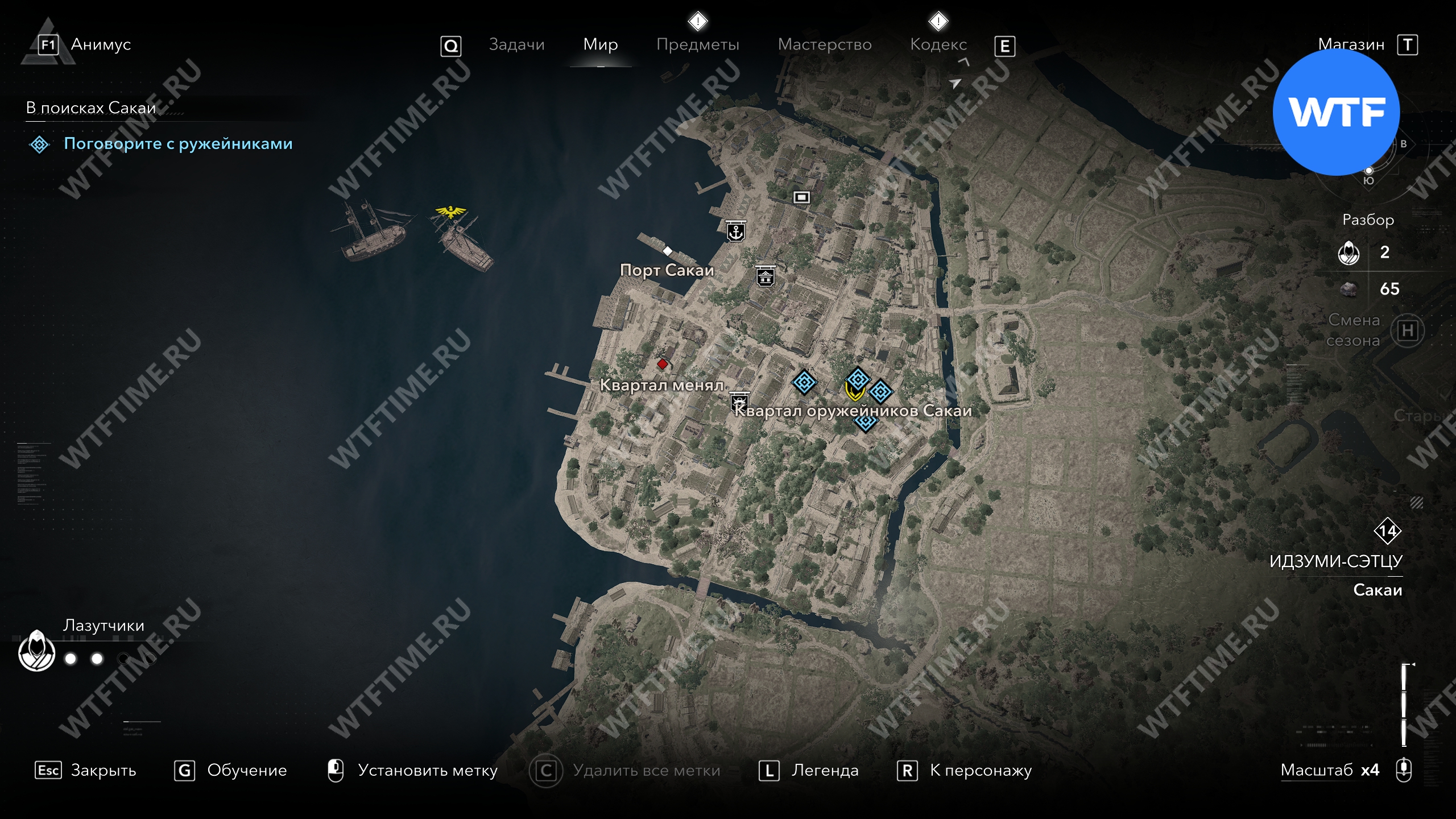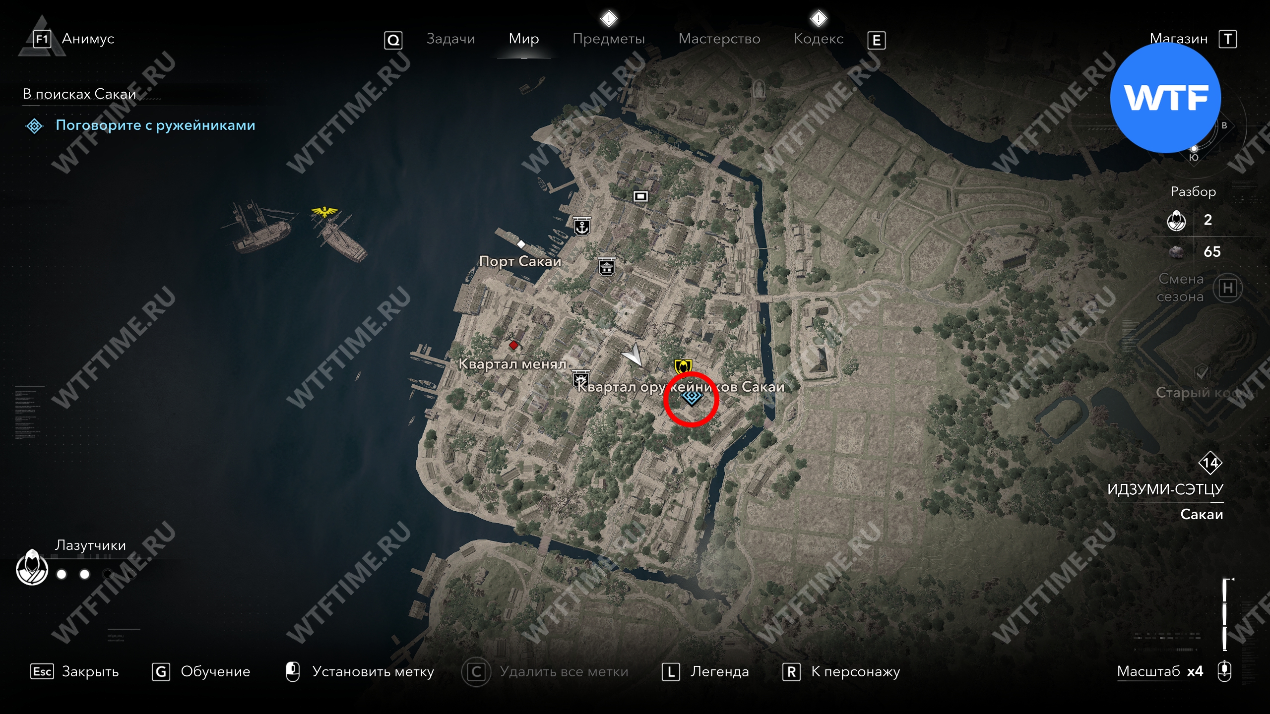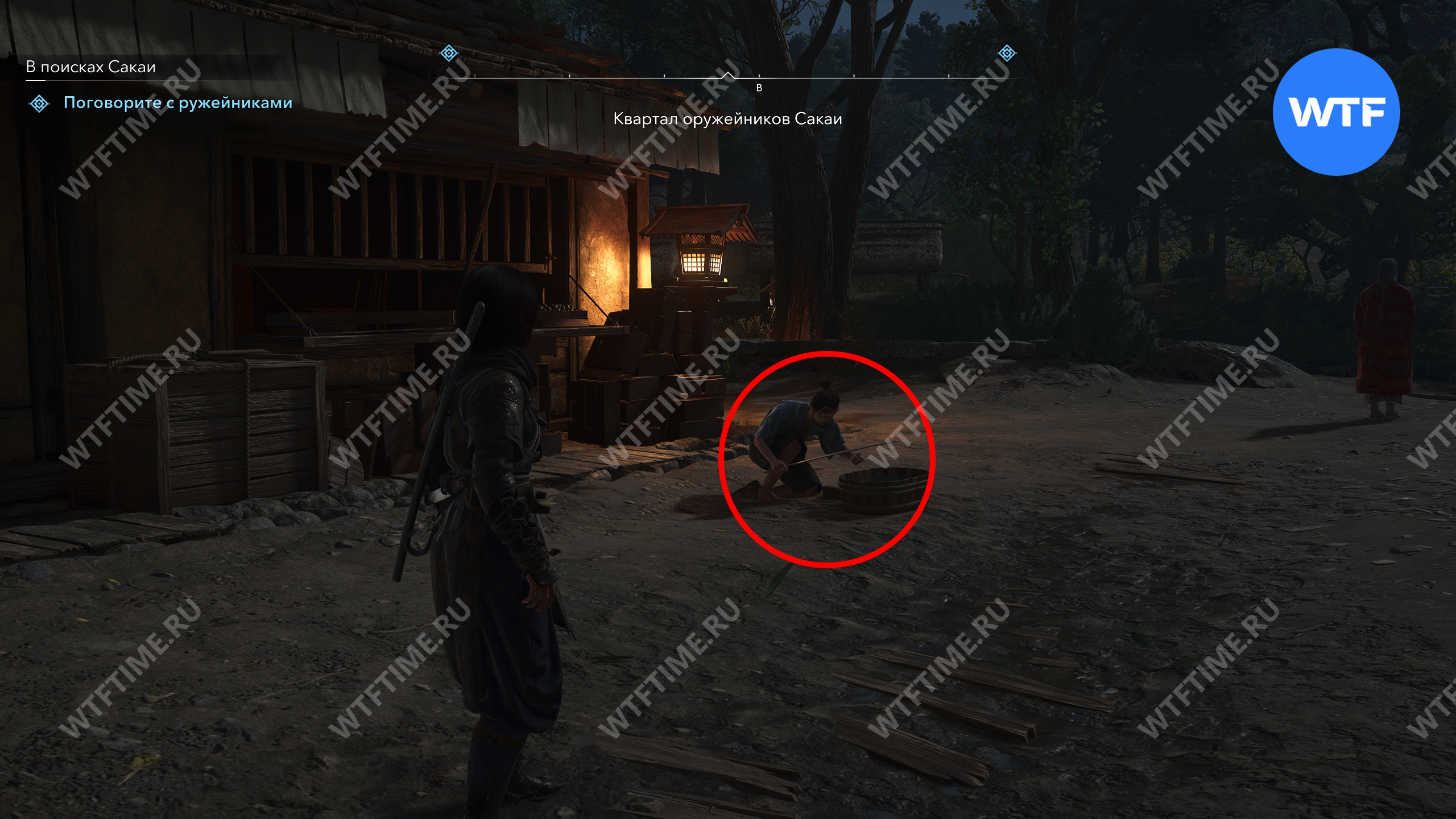 Вы можете найти трех ружейников в квартале оружейников Сакаи (три верхние отметки на скриншоте ниже), однако у них не будет той информации, которую вы ищите.