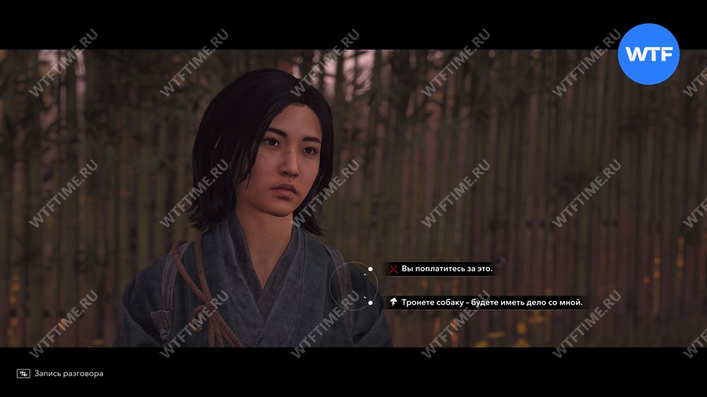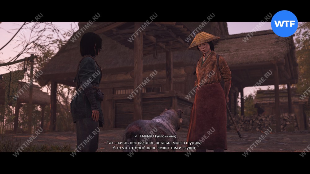 После этого у вас будет выбор из двух вариантов диалога: вы можете сразу напасть на женщину и остальных самураев во дворе, либо угрожать им. Во втором случае они просто уйдут.
