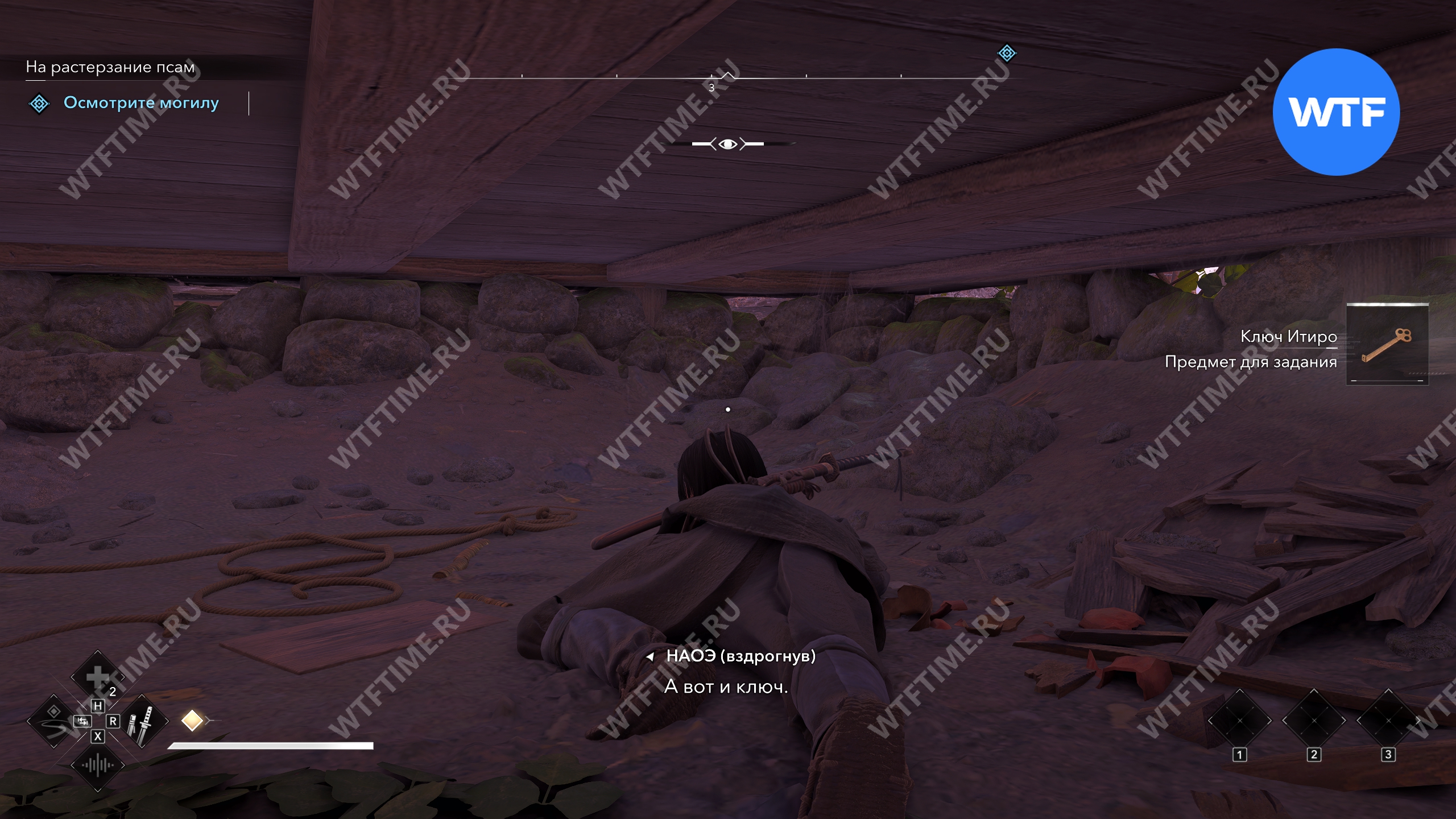 Что бы вы ни выбрали, ключ придется искать самостоятельно. Вам нужно обойти дом справа от вас с восточной стороны и пролезть через небольшой лаз в нижней части стены. Там вы найдете ключ Итиро.