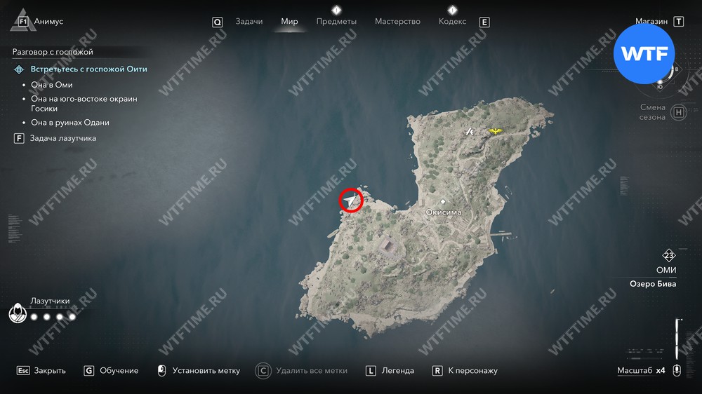 Чтобы получить легендарного скакуна, вы должны отправиться в регион Оми в северо-восточной части игровой карты. В центре этого региона расположено большое озеро Бива, а прямо посреди него — остров Окисима, также известный как остров кошек.