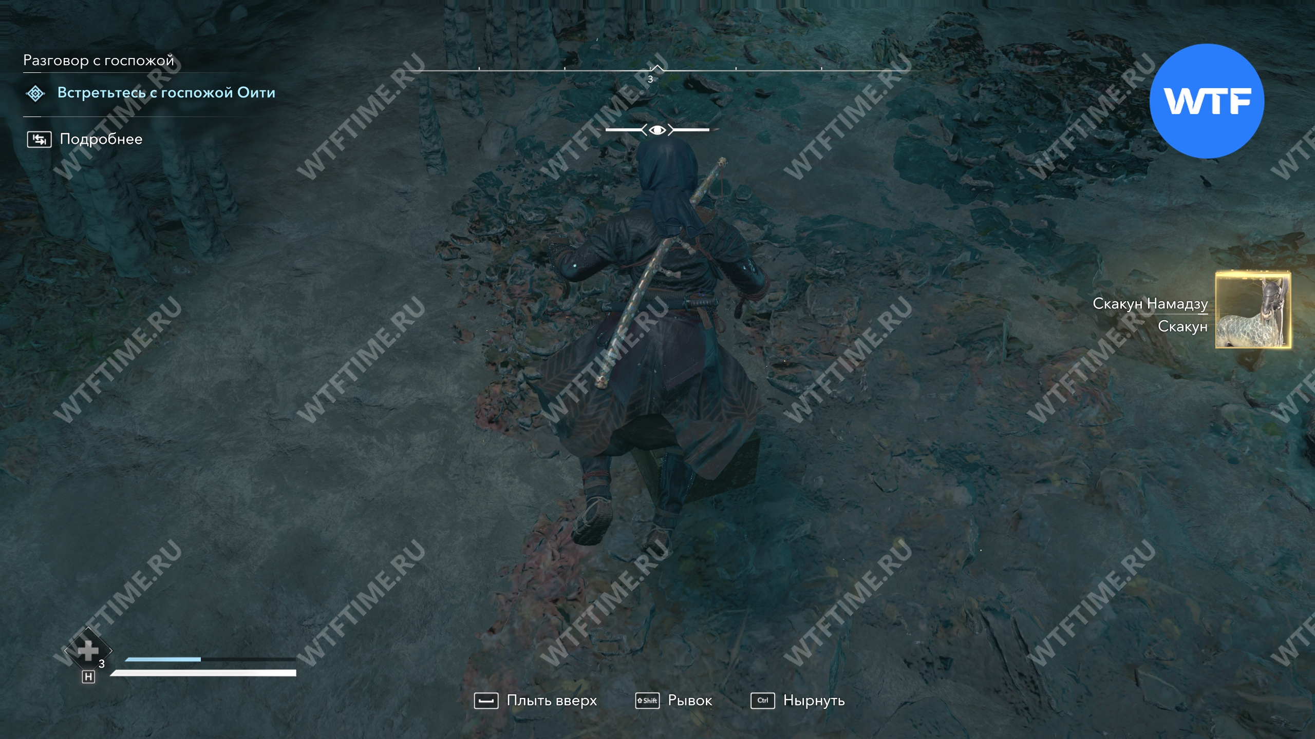 Нужный вам сундук стоит под водой, примерно по центру конечной части пещеры, где вы всплывете чтобы продышаться. Внутри вы найдете секретного легендарного скакуна Намадзу.