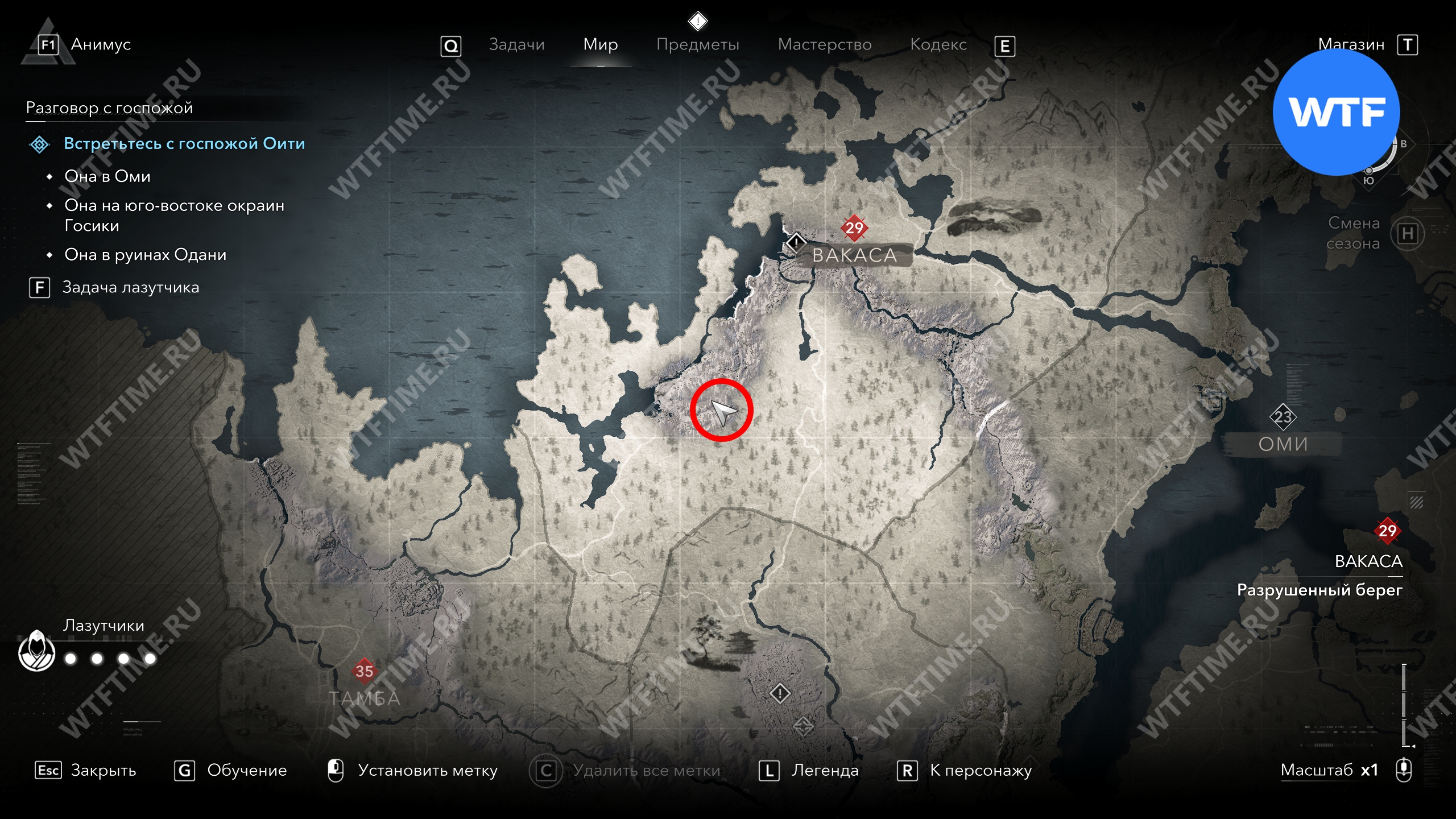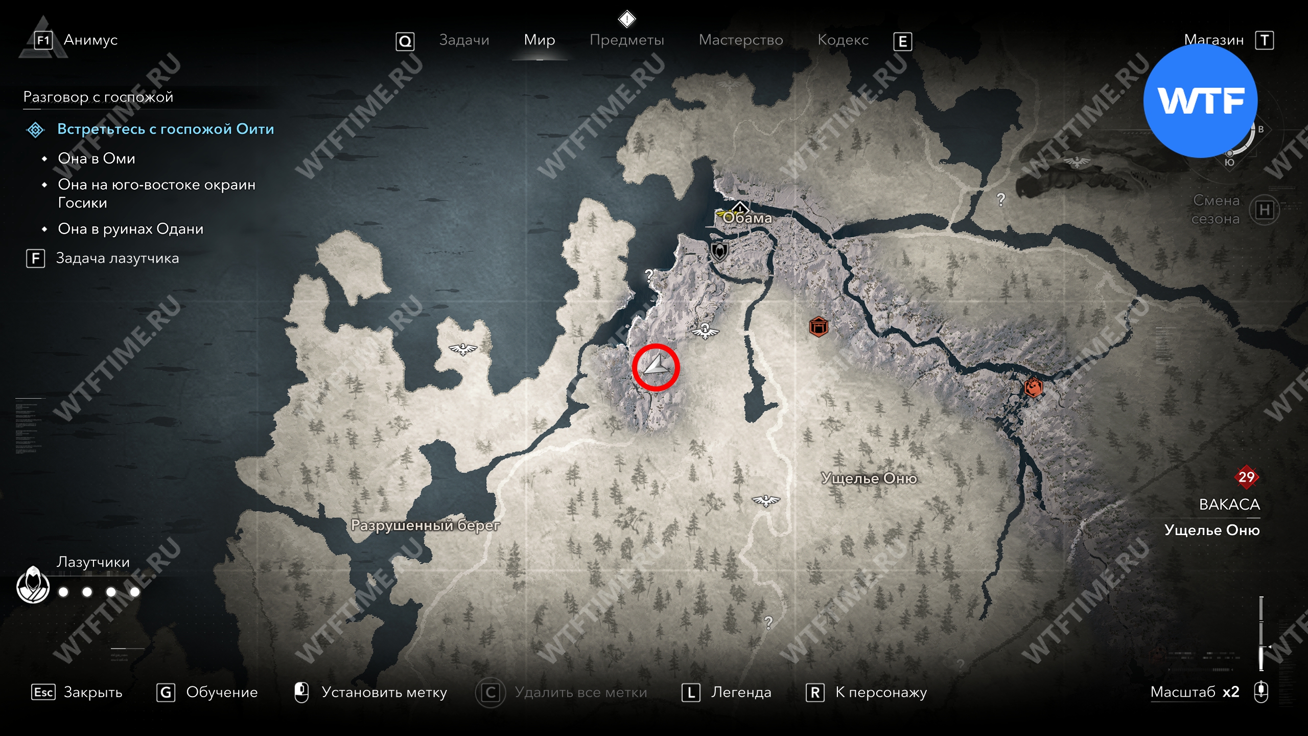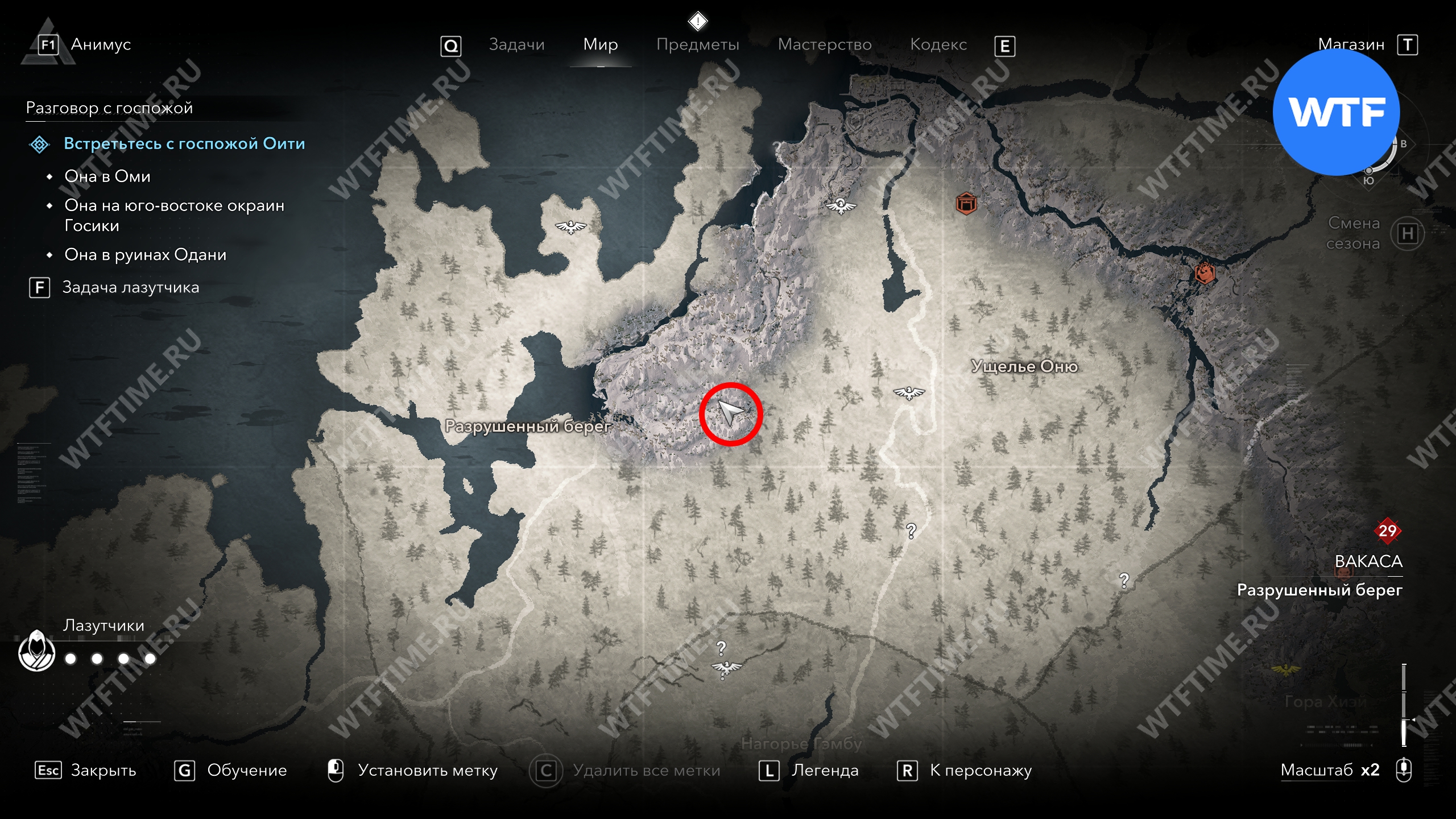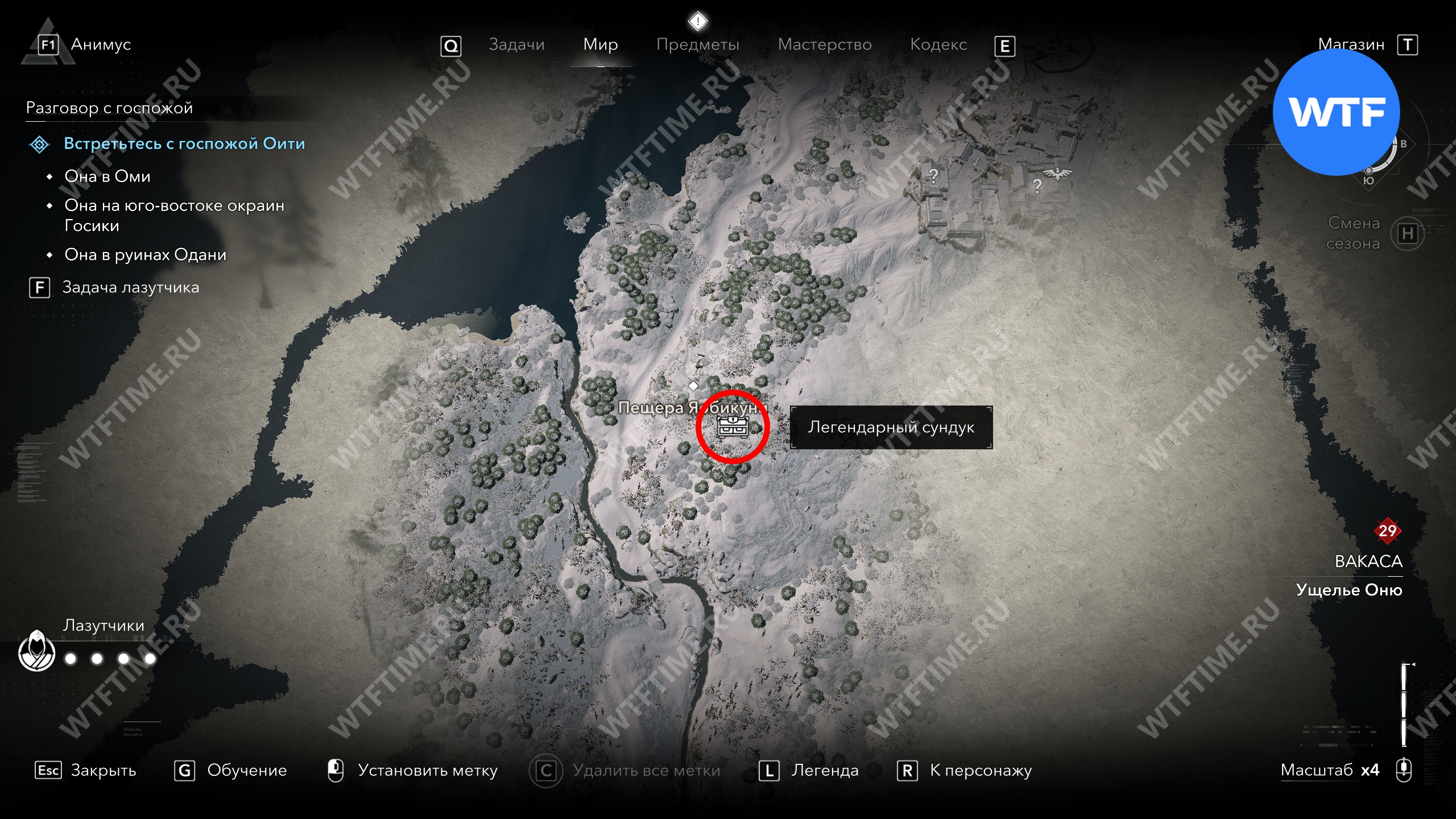 Регион Вакаса находится в северной части игровой карты. В его юго-западной части, к юго-западу от Обамы, есть пещера под названием Яобикуни. Точное место показано на скриншоте ниже. Внутри этой пещеры сидит всего один враг.