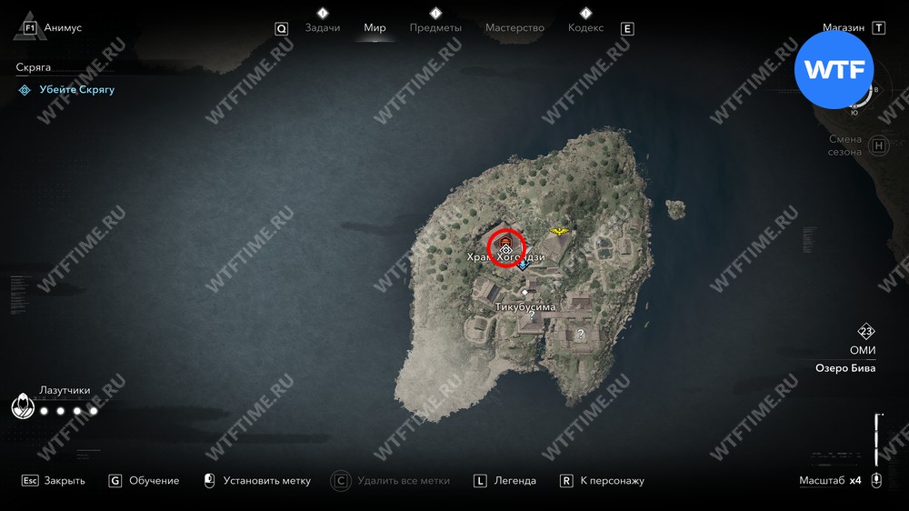 За кого бы вы ни играли, ваша цель будет находится в храме Хогондзи в центре острова. Прямо перед входом также можно найти Скрягу, который является одной из целей для дополнительного задания «Бесчестные дайканы».