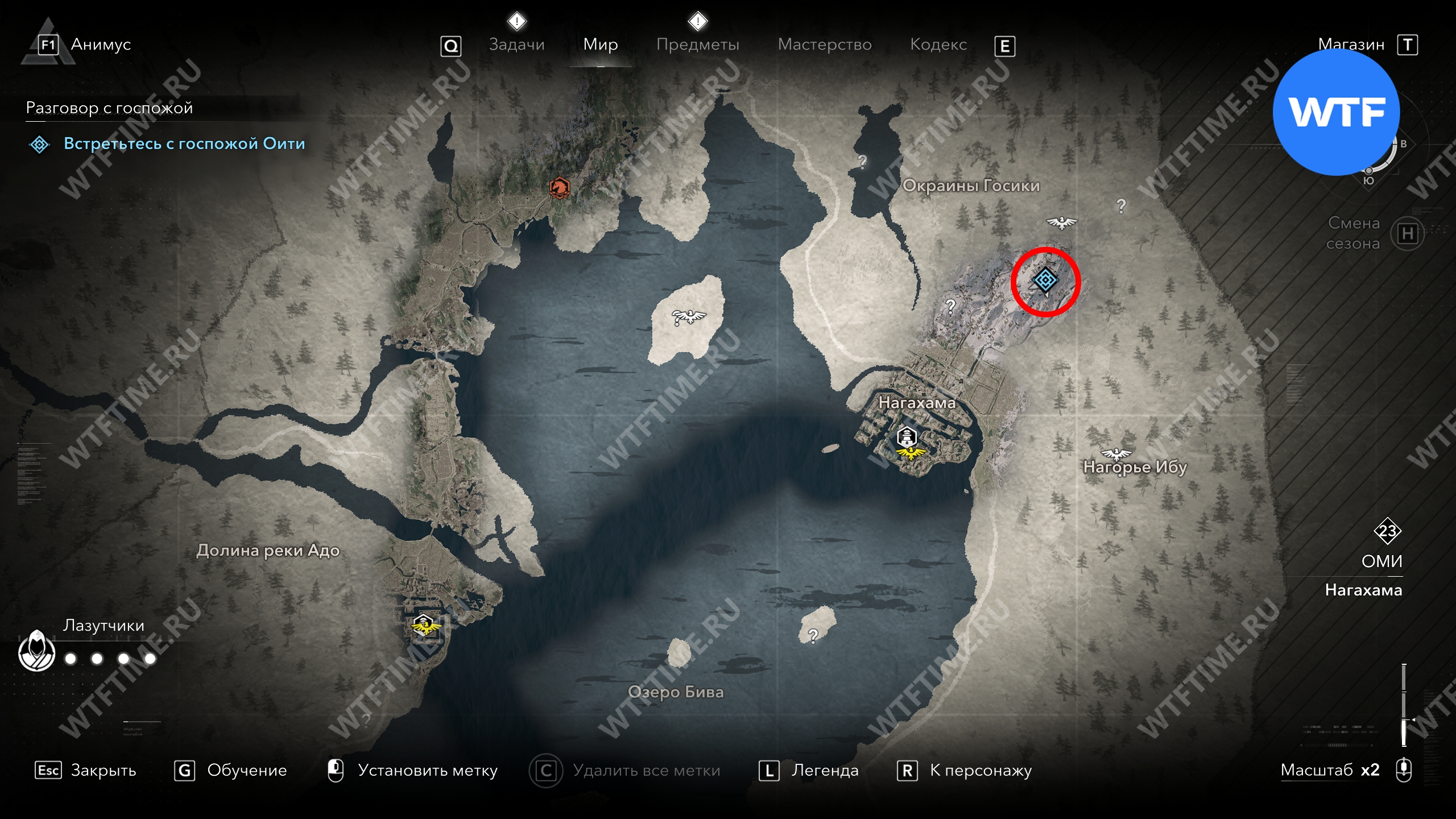 Если до этого вы не исследовали регион Оми, то подсказки по квесту вам не особо помогут. Чтобы встретиться с госпожой Оити, отправляйтесь в северо-восточную часть региона. Руины Одани расположены к северо-востоку от Нагахамы.