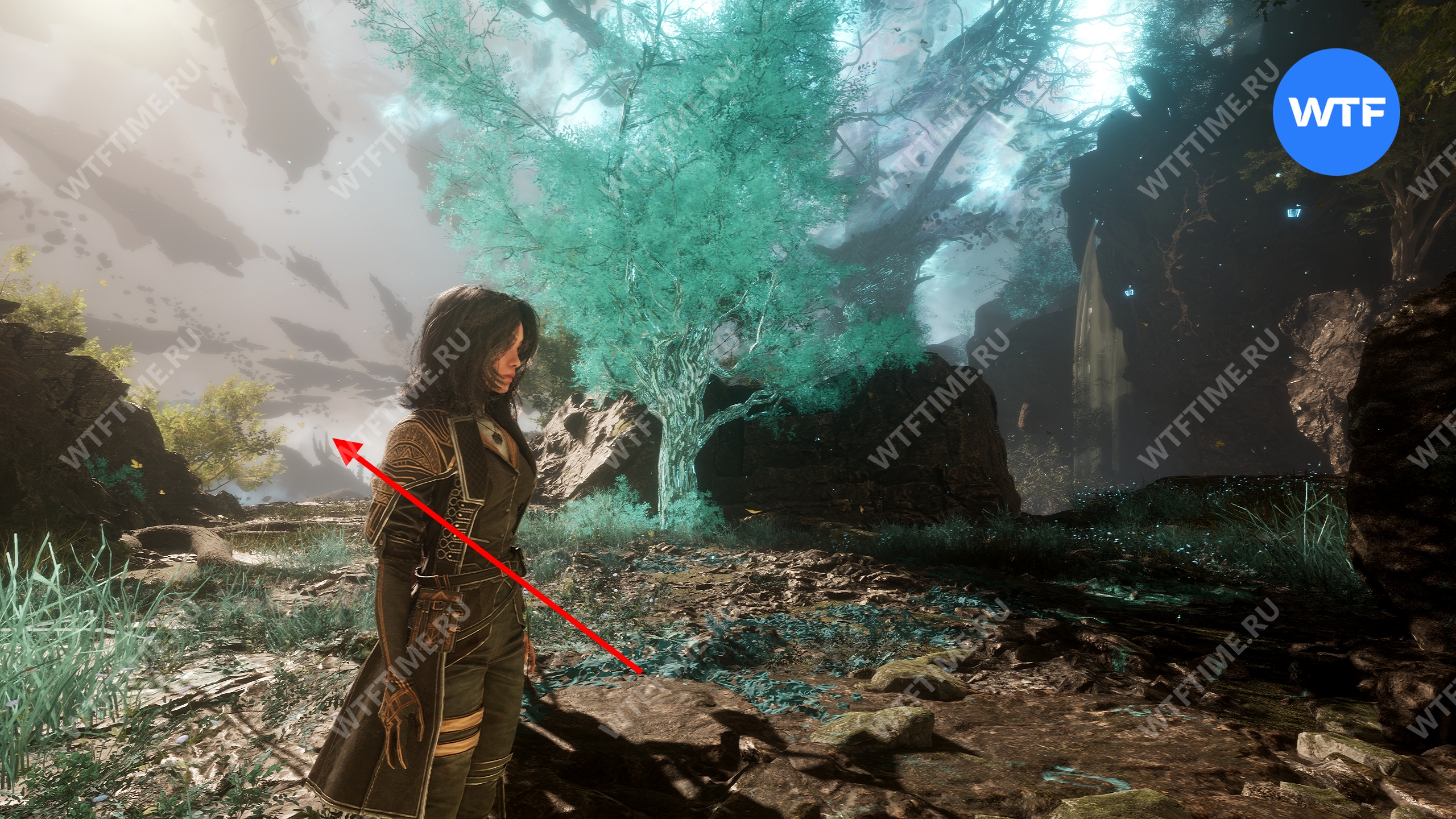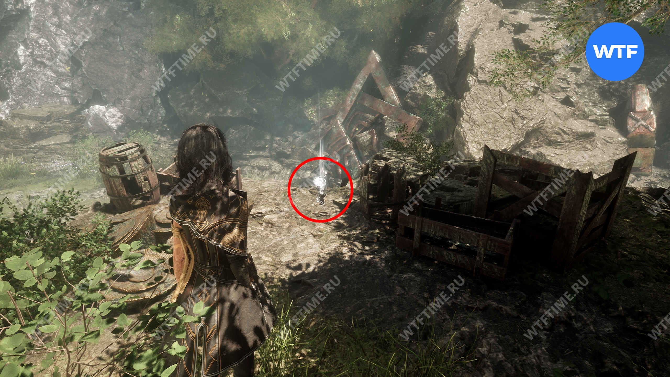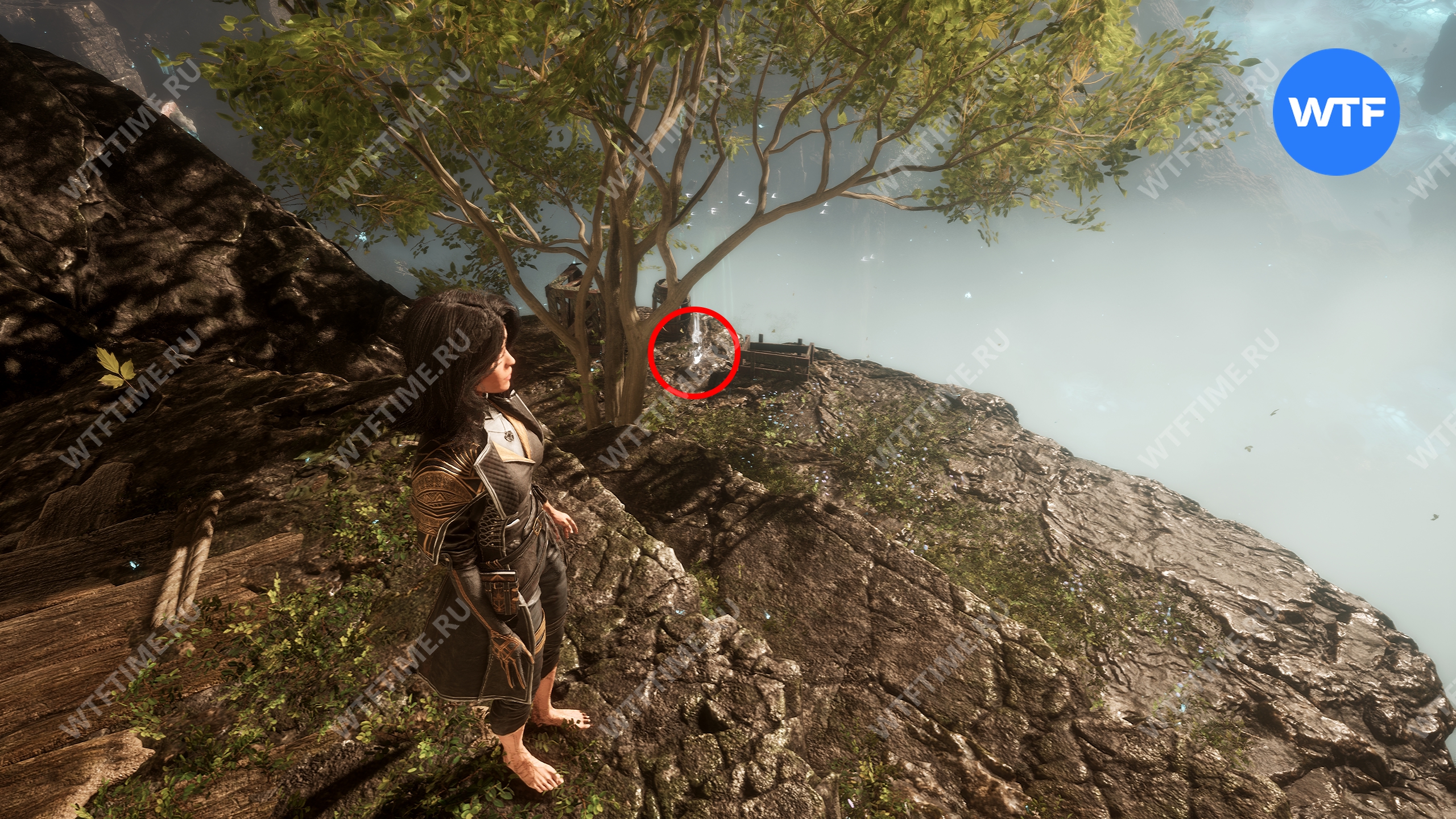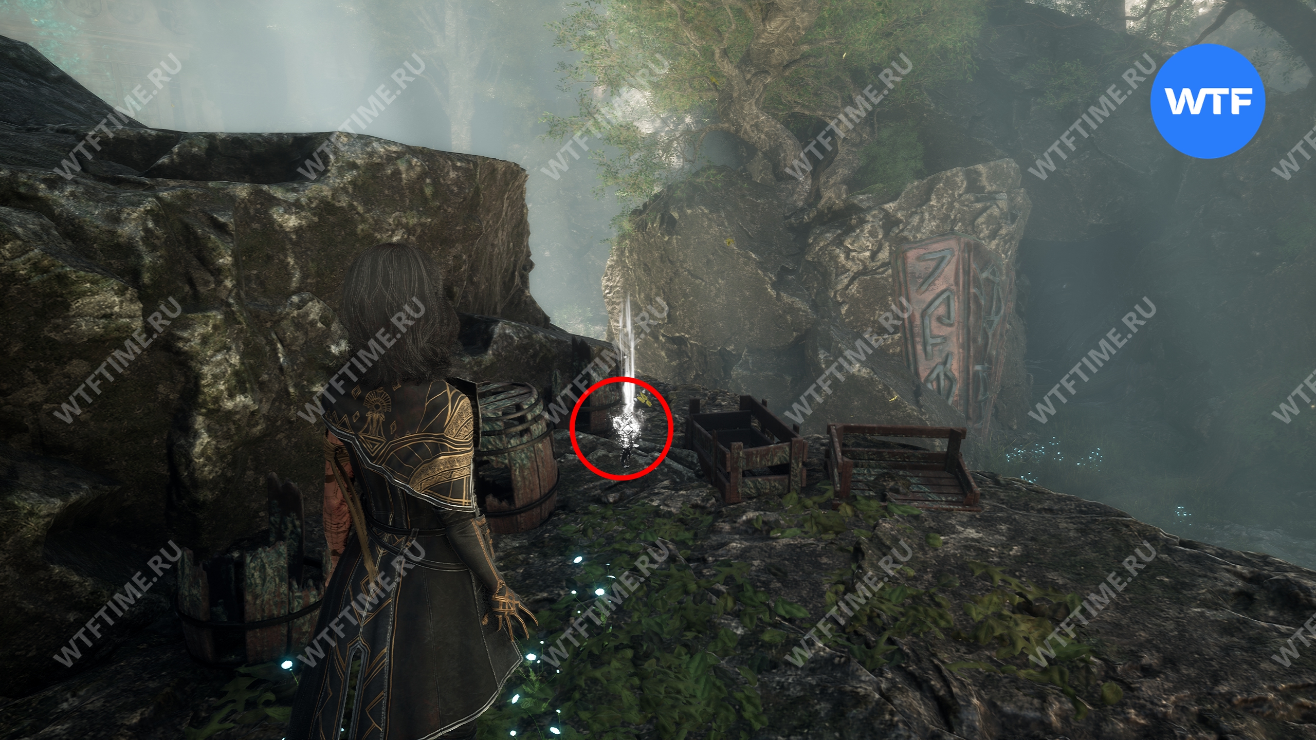 Если пройти по тропинке между скал прямо напротив места, где вы нашли смолу, то в конце пути можно найти осколок тоника возрождения. Это очень полезный предмет, который позволит вам воскрешать павших персонажей.