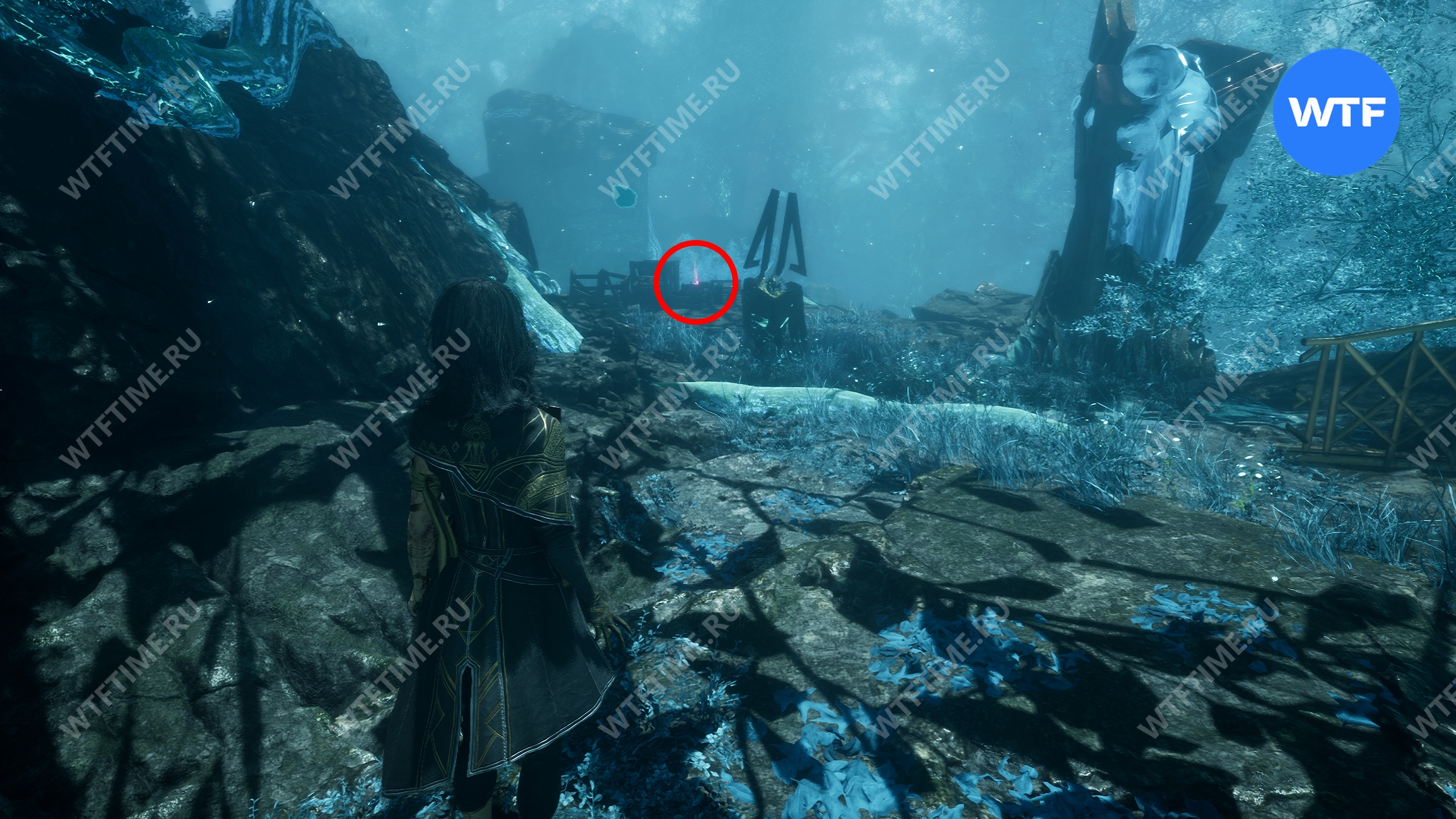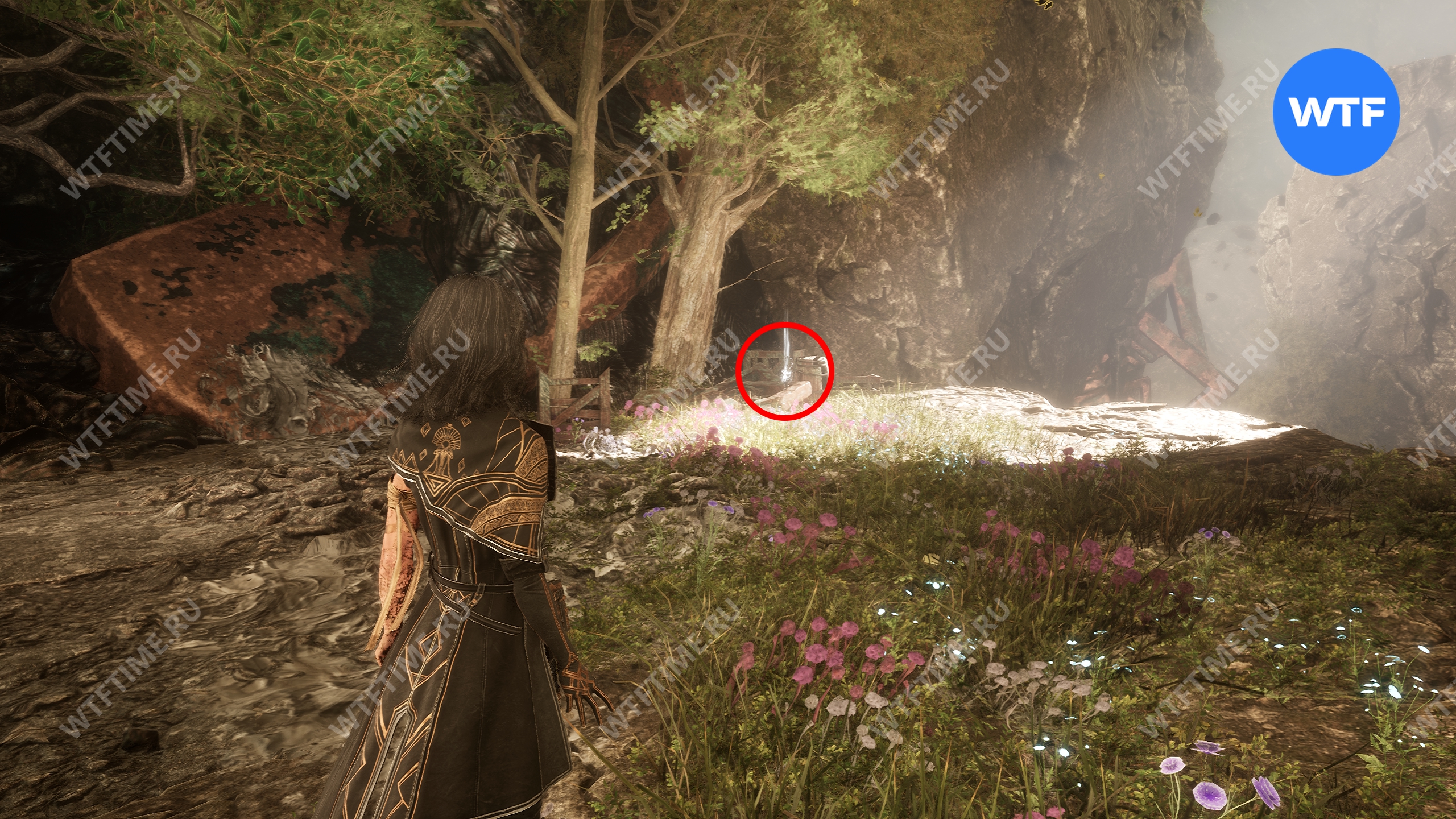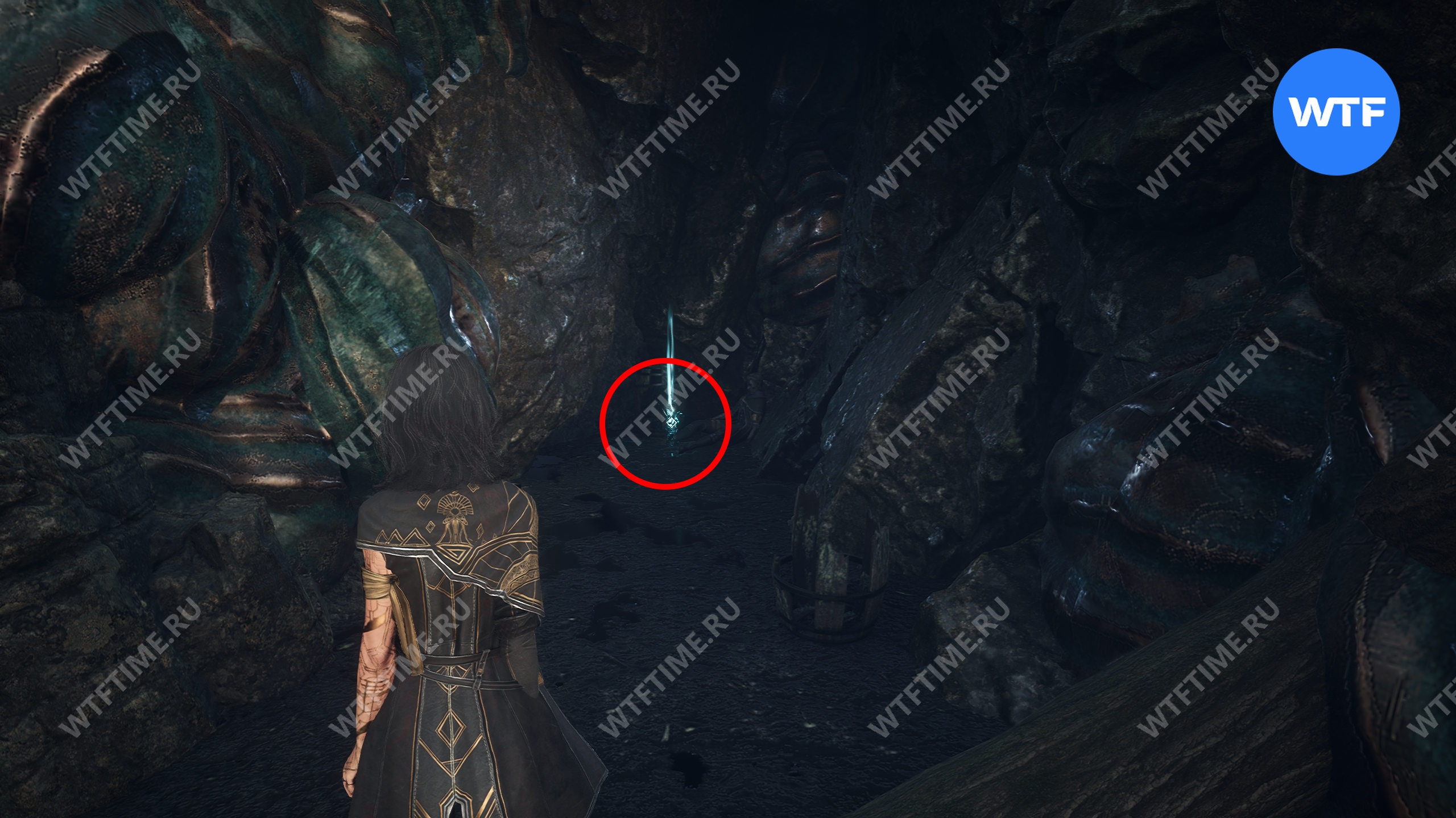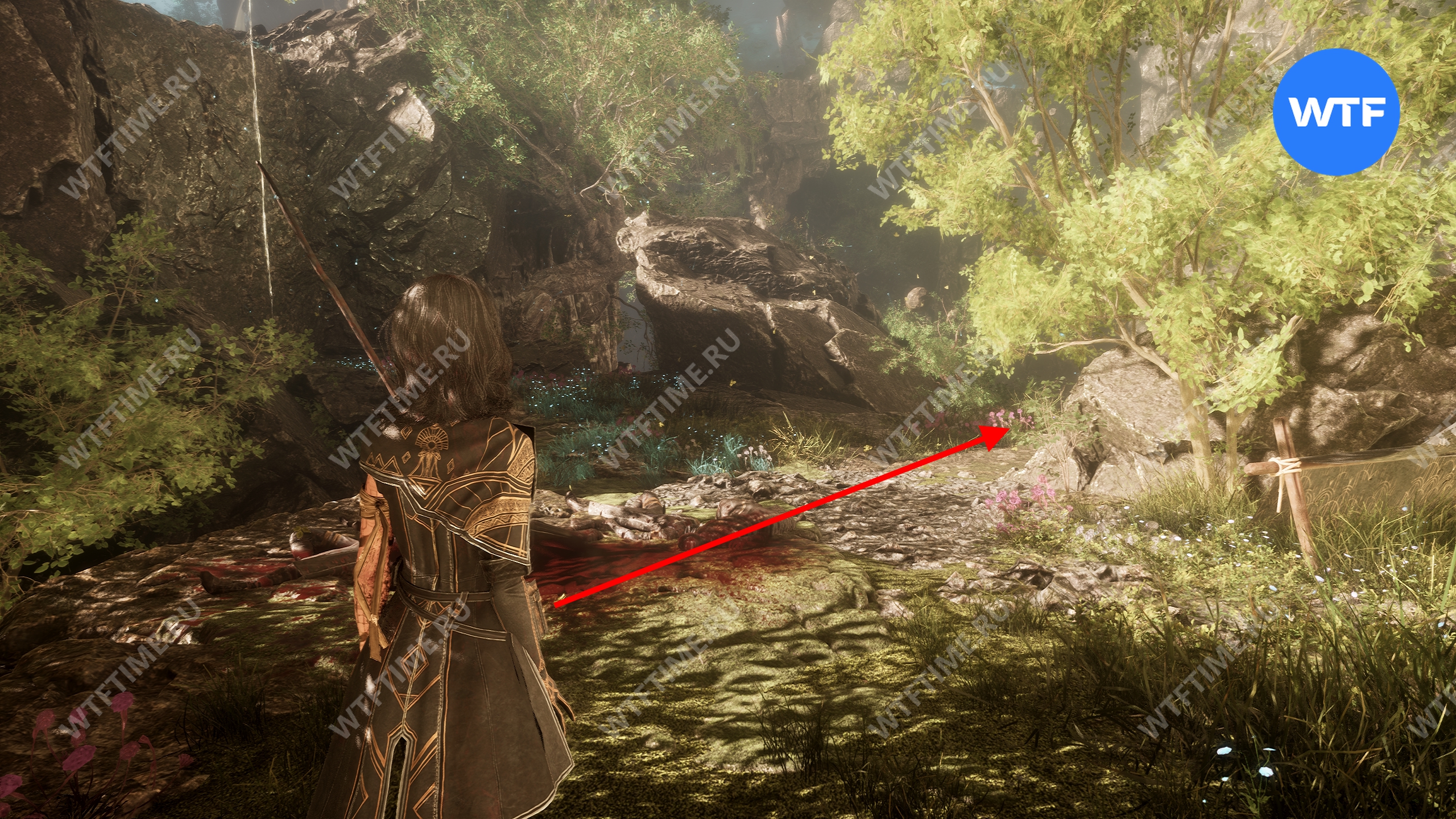 Если пройти по тропинке между скал прямо напротив места, где вы нашли смолу, то в конце пути можно найти осколок тоника возрождения. Это очень полезный предмет, который позволит вам воскрешать павших персонажей.