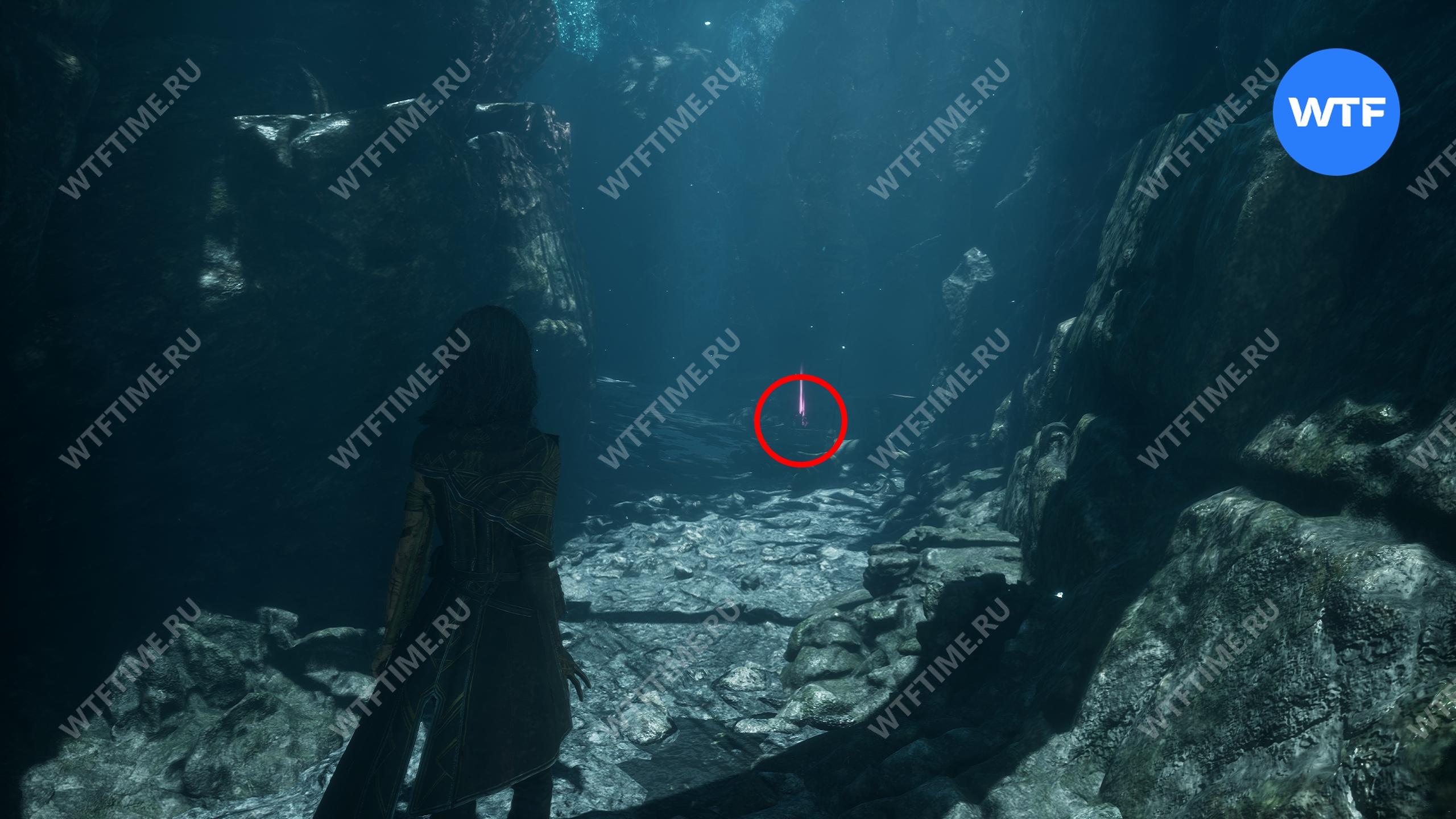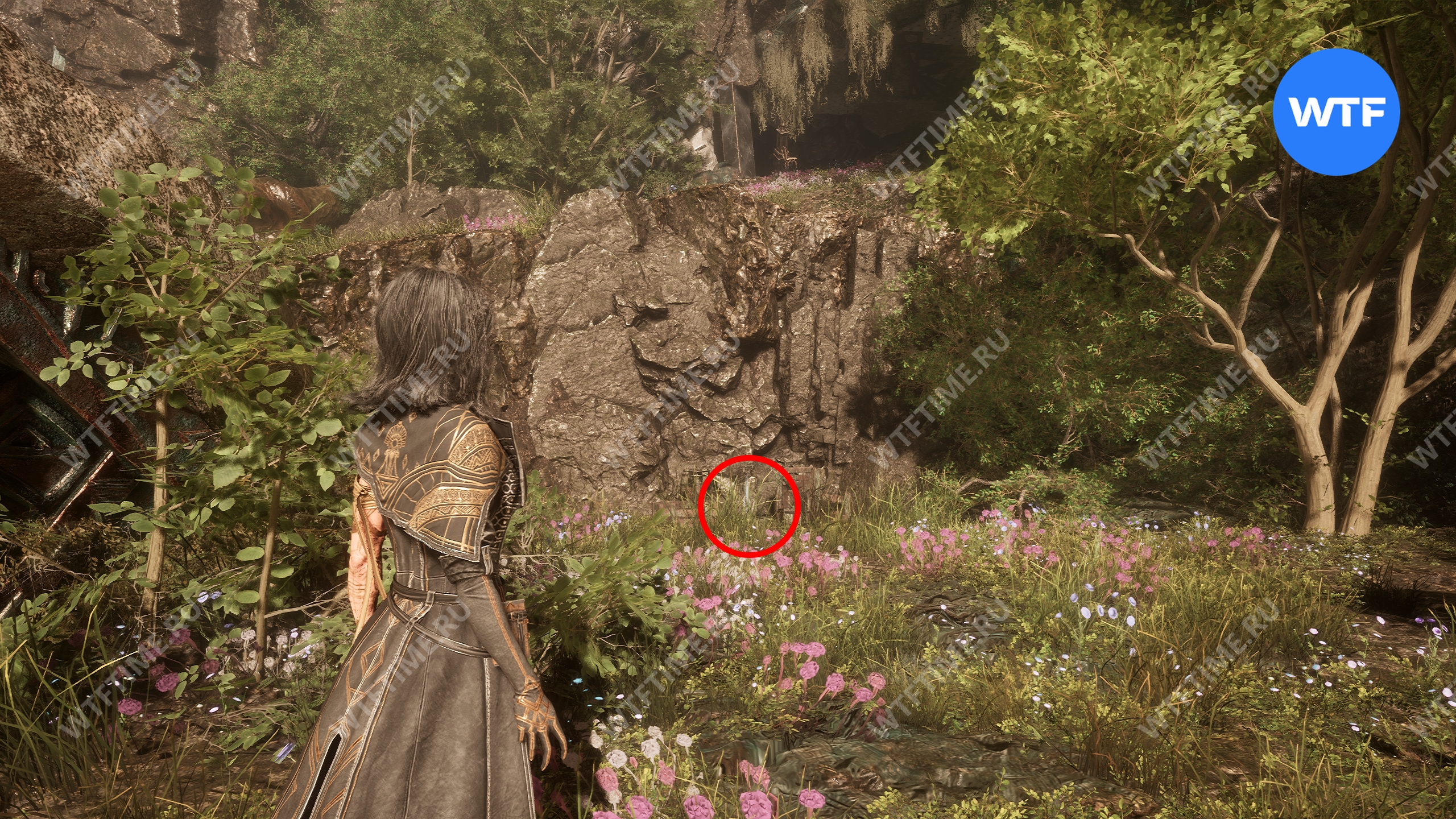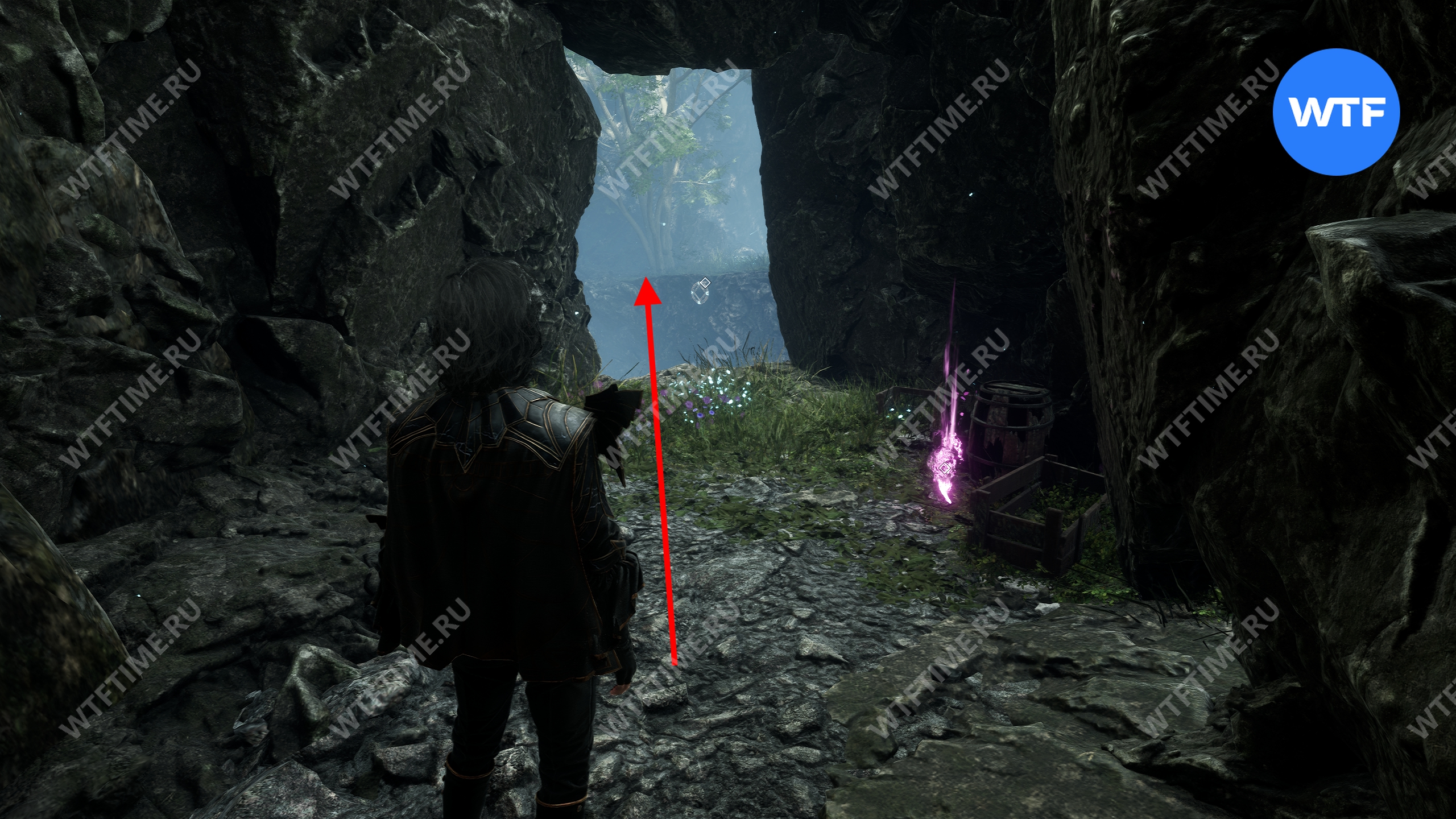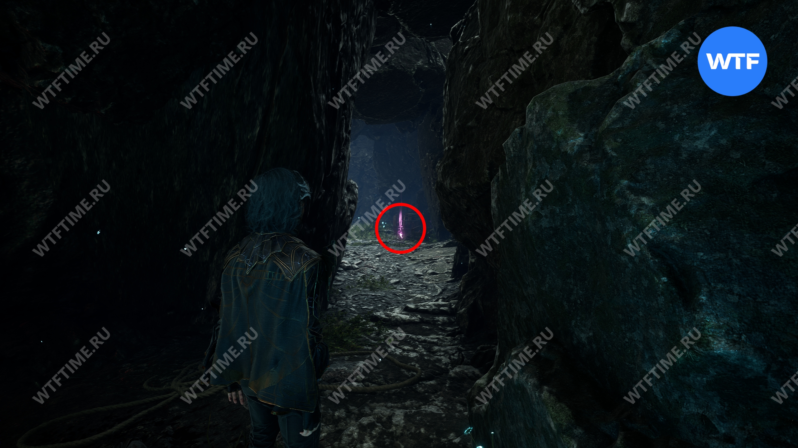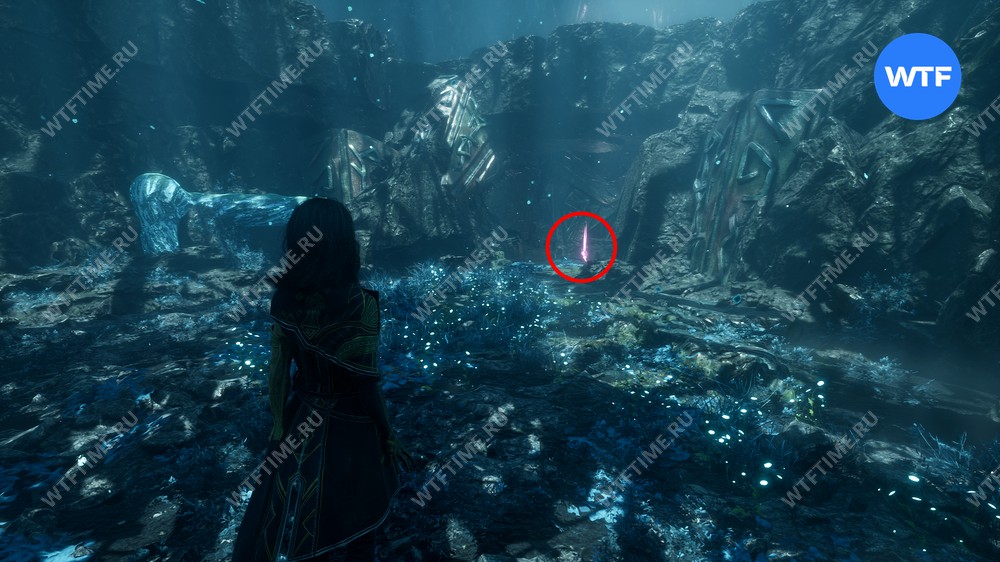 После этого вернитесь обратно в Весеннюю Леваду и переместитесь к флагу экспедиции «Заброшенный лагерь Экспедиции», чтобы попасть обратно в пещеру к Жбану. Справа от него есть камень, который вам надо разрушить. Прямо за ним вы найдете цвет люмины.