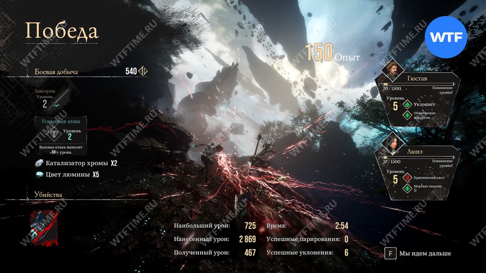 Продолжайте идти вперед по тропе, пока не наткнетесь на двух ланселье и не познакомитесь с механикой первого удара. За победу над ними вы получите новое оружие для Гюстава «Лансерам».