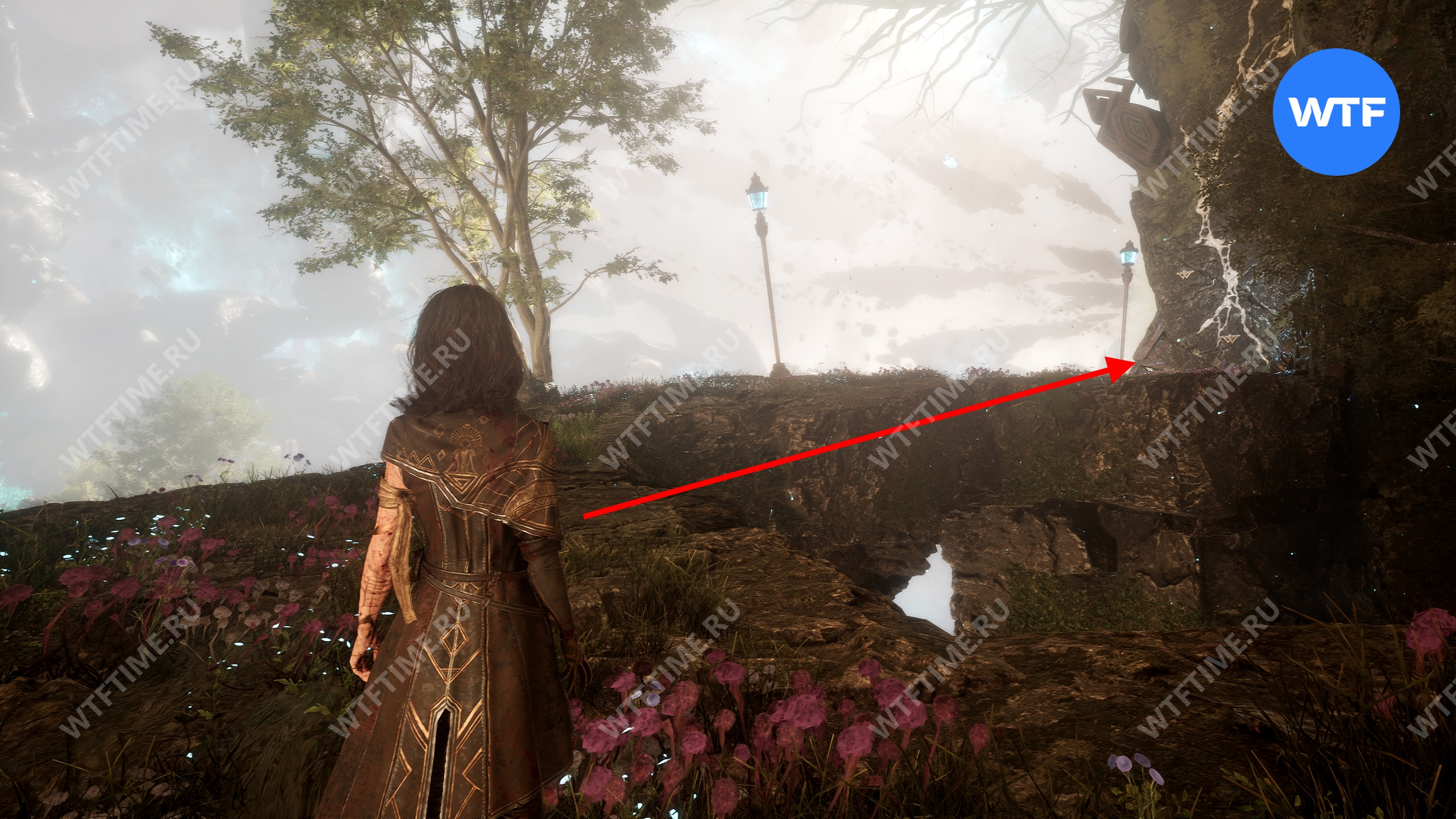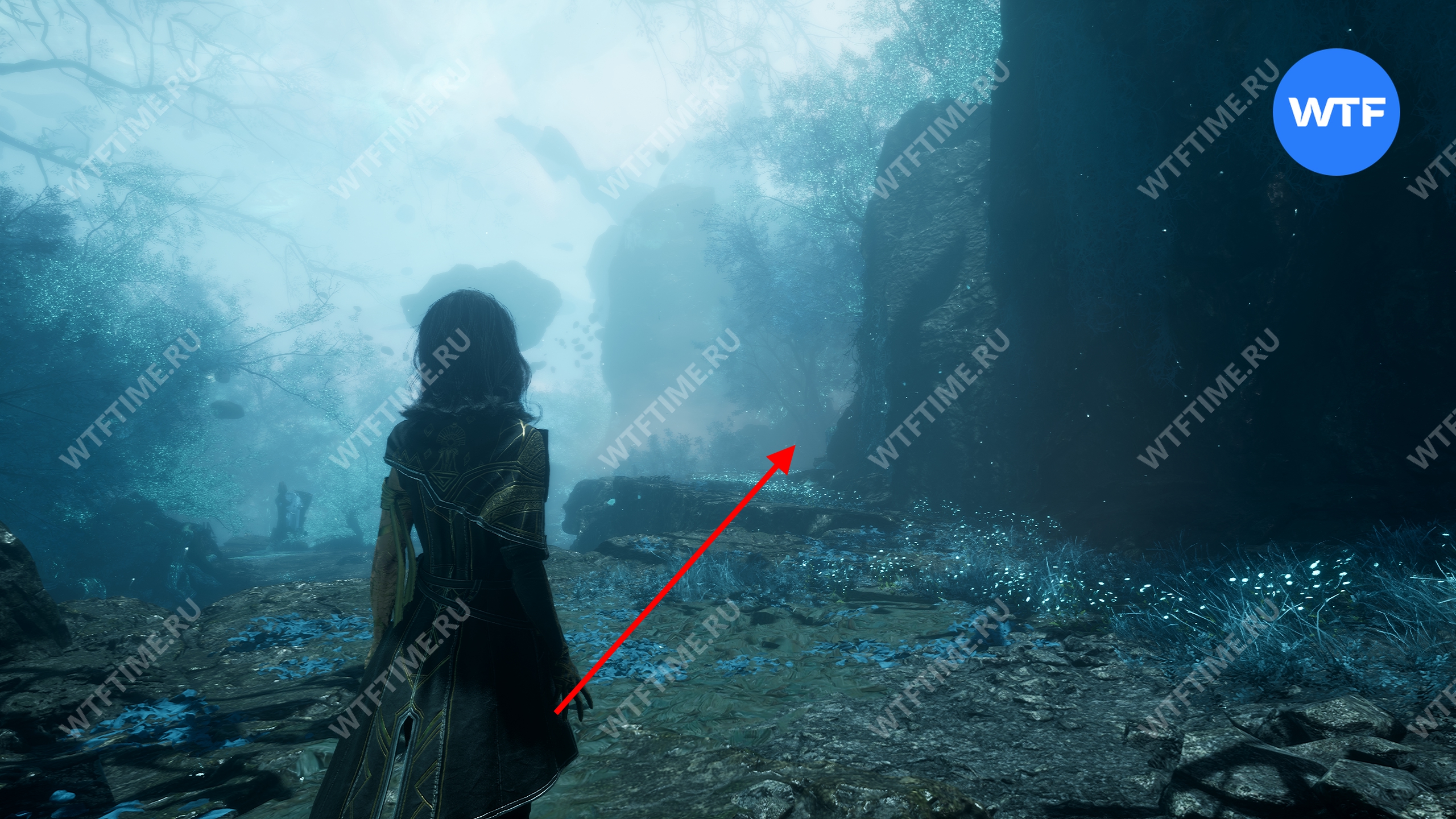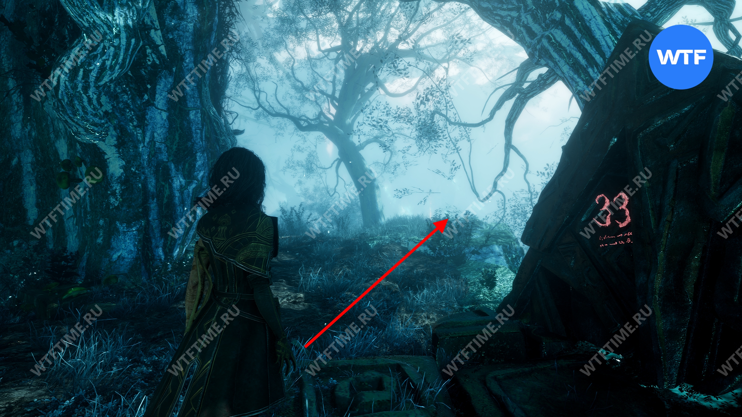 Теперь вернитесь обратно к веревке и поднимитесь наверх. Затем от светящегося дерева идите налево и спуститесь вниз с каменного уступа. Под деревом у обрыва вы найдете 720 хромы.