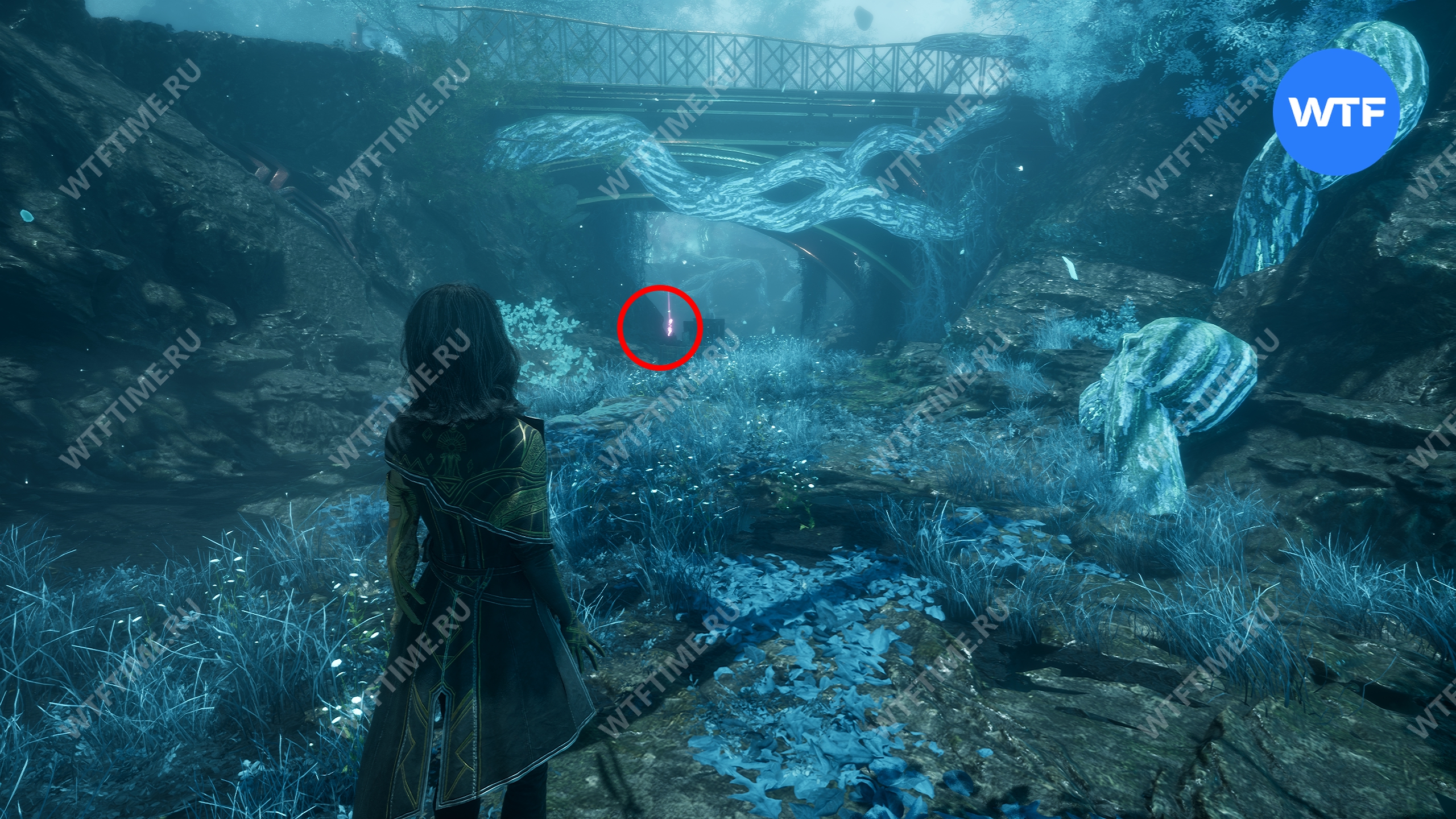 Вернитесь к развилке и теперь идите направо, под мост. Там вам встретится еще один отряд противников, из которых выпадает катализатор хромы, а также цвет люмины, лежащий прямо под мостом.