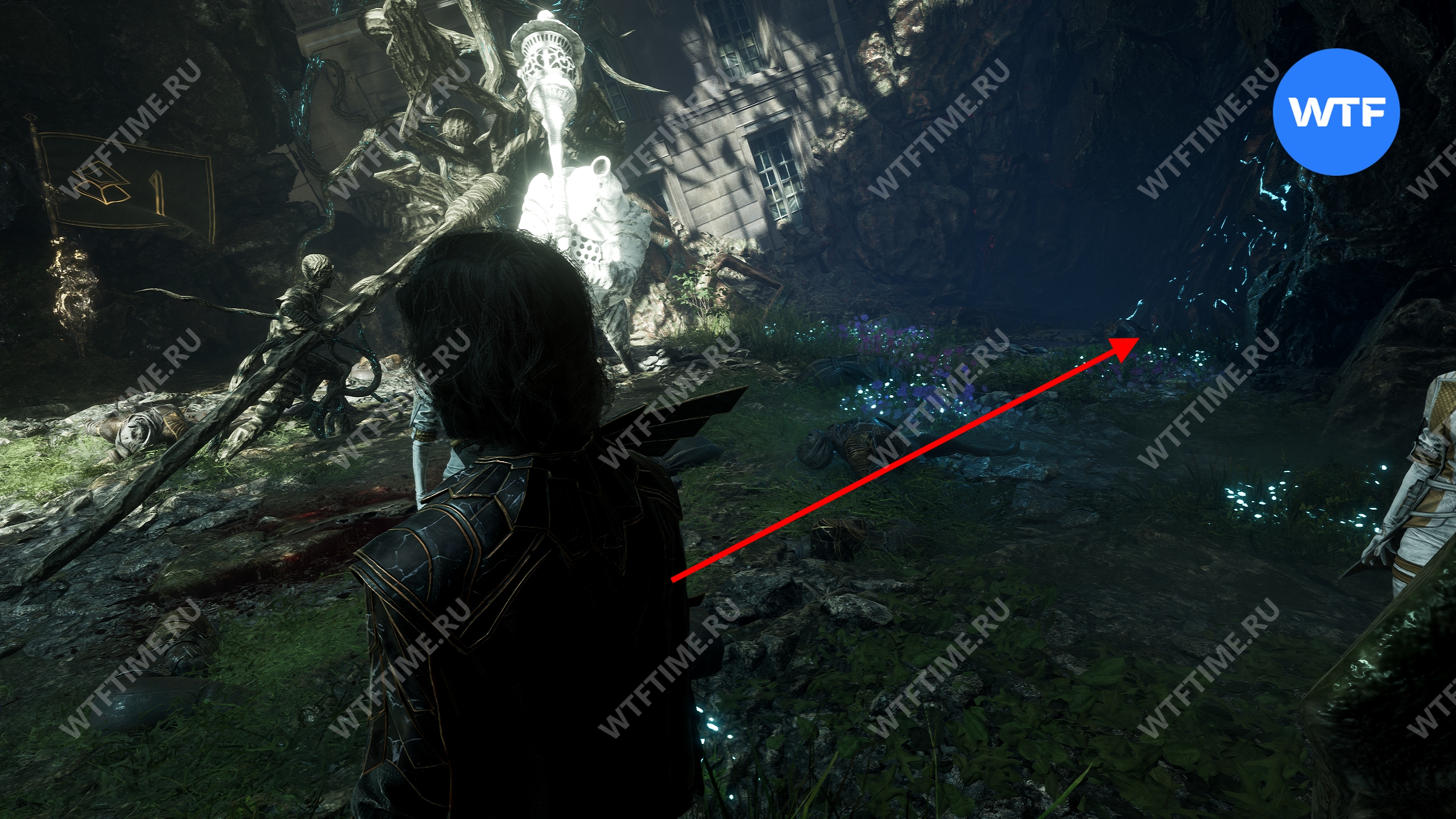 Вернитесь на главную тропу, разберитесь с еще двумя Ланселье, а затем зайдите внутрь дома. После этого справа от вас вы сможете подобрать катализатор хромы, который нужен для улучшения оружия.