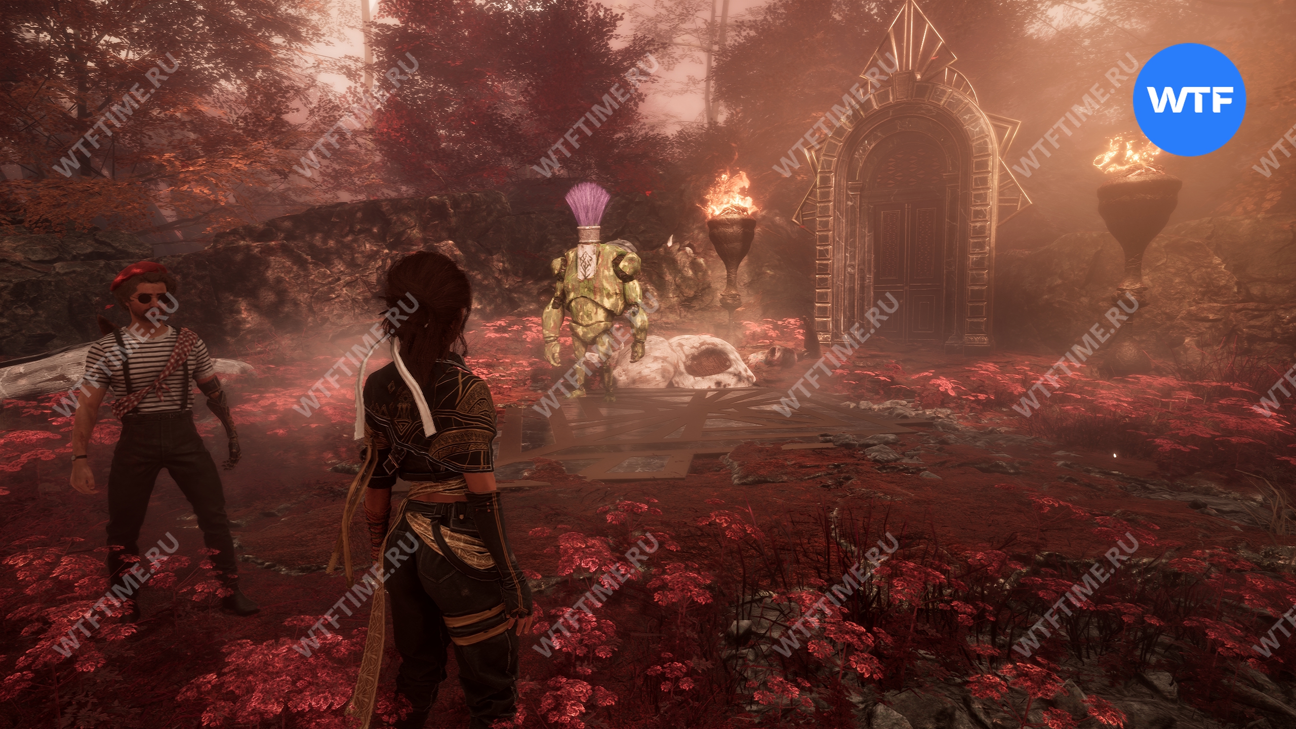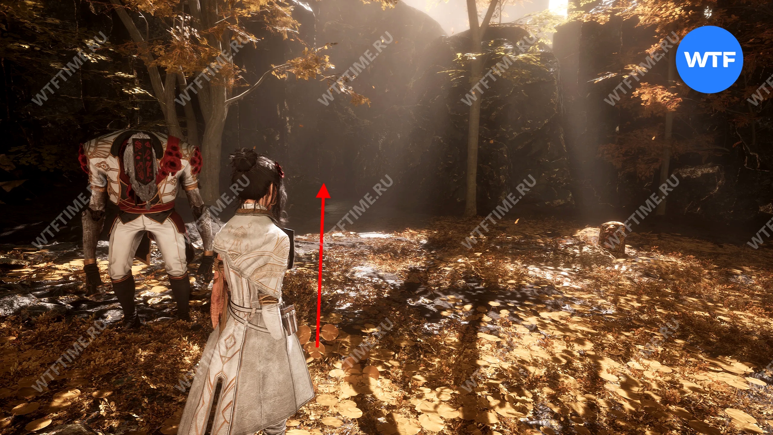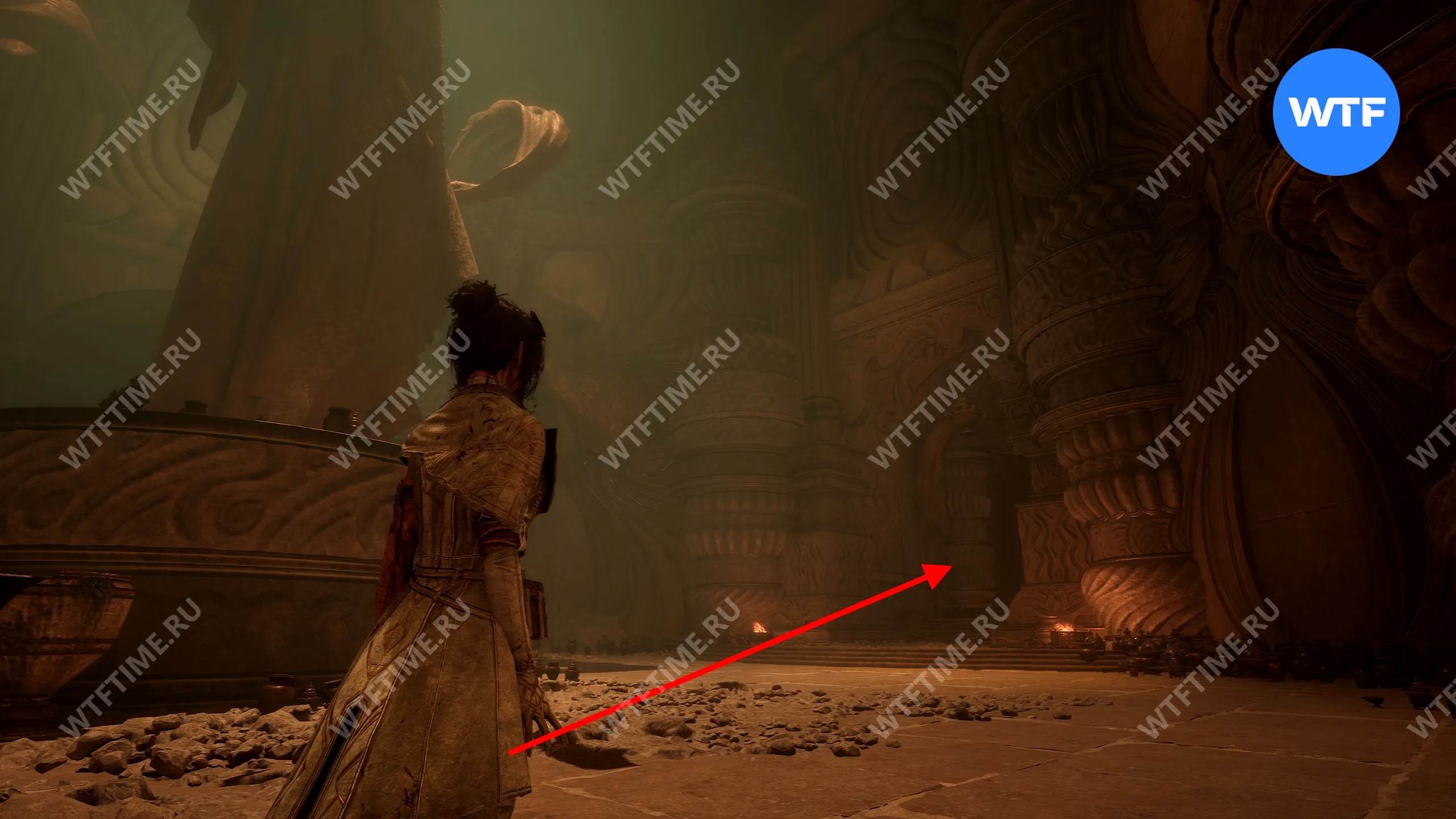 - Сломанную статую справа от входа;