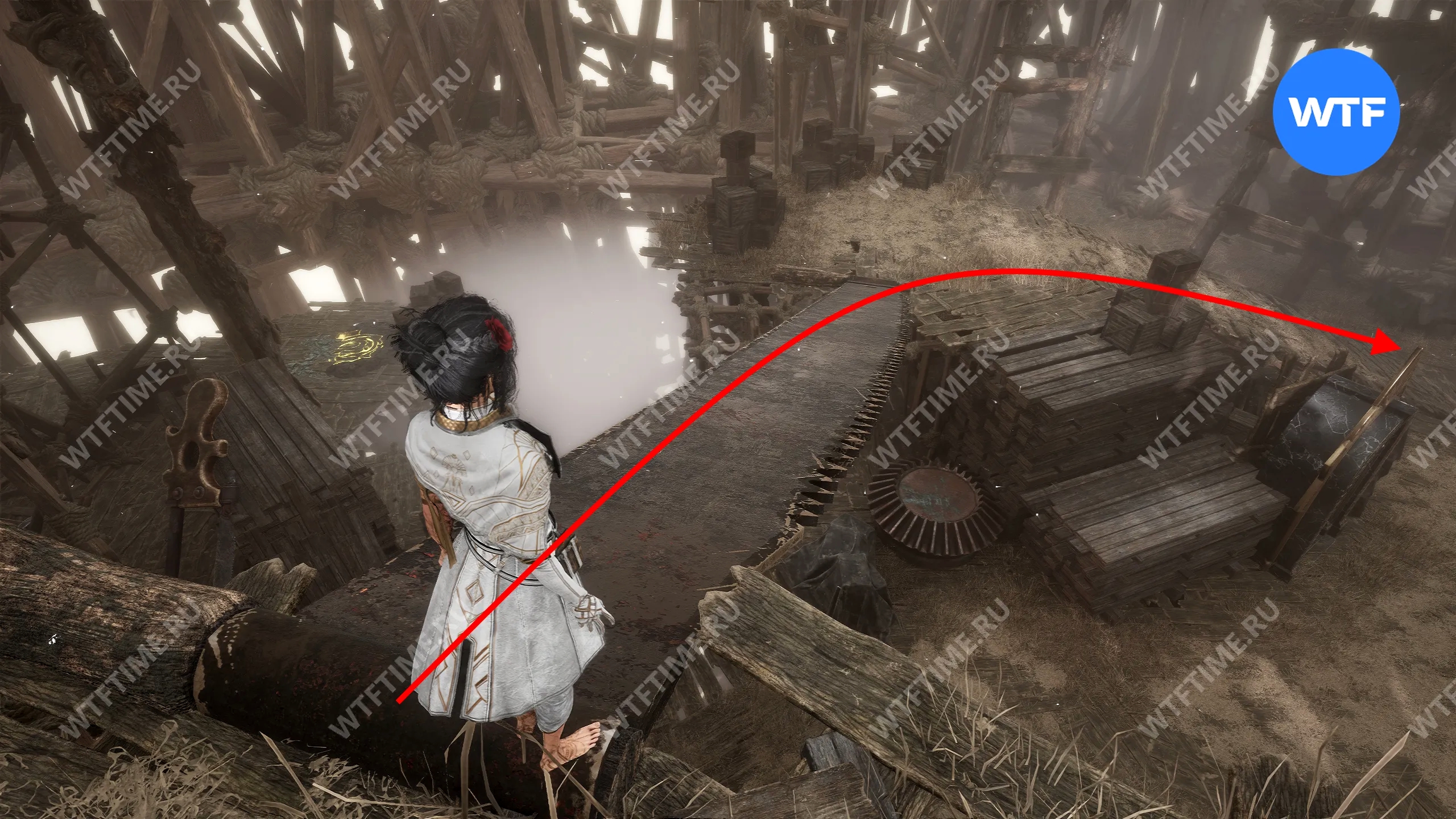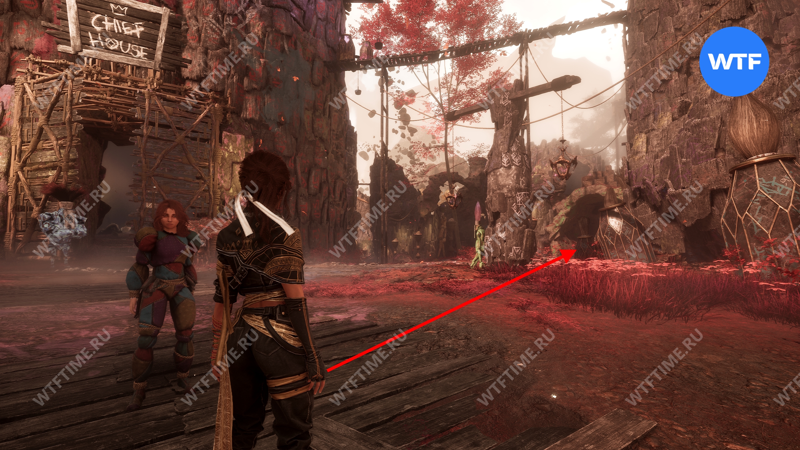 В 3 акте вы сможете посетить локацию Высь, связанную с персональным квестом Маэль. Добравшись до флага экспедиции «Зона лестниц», спуститесь вниз по деревянному мосту.