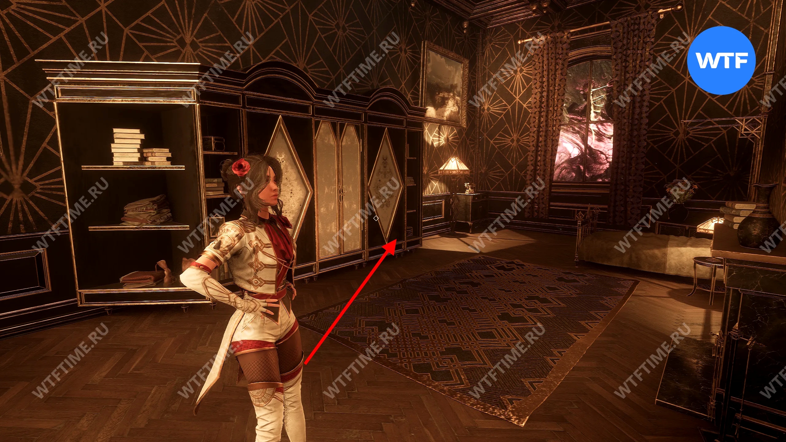 На втором этаже также есть книжная полка, при взаимодействии с которой откроется скрытый проход в кабинет рядом. Там вы найдете костюм для Версо «Городской наряд».