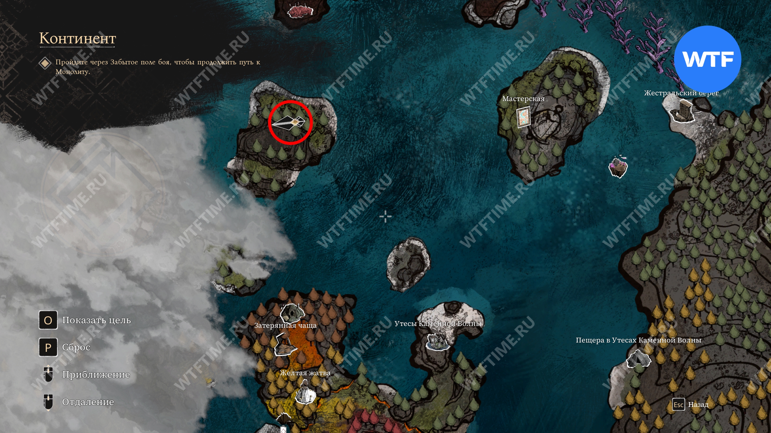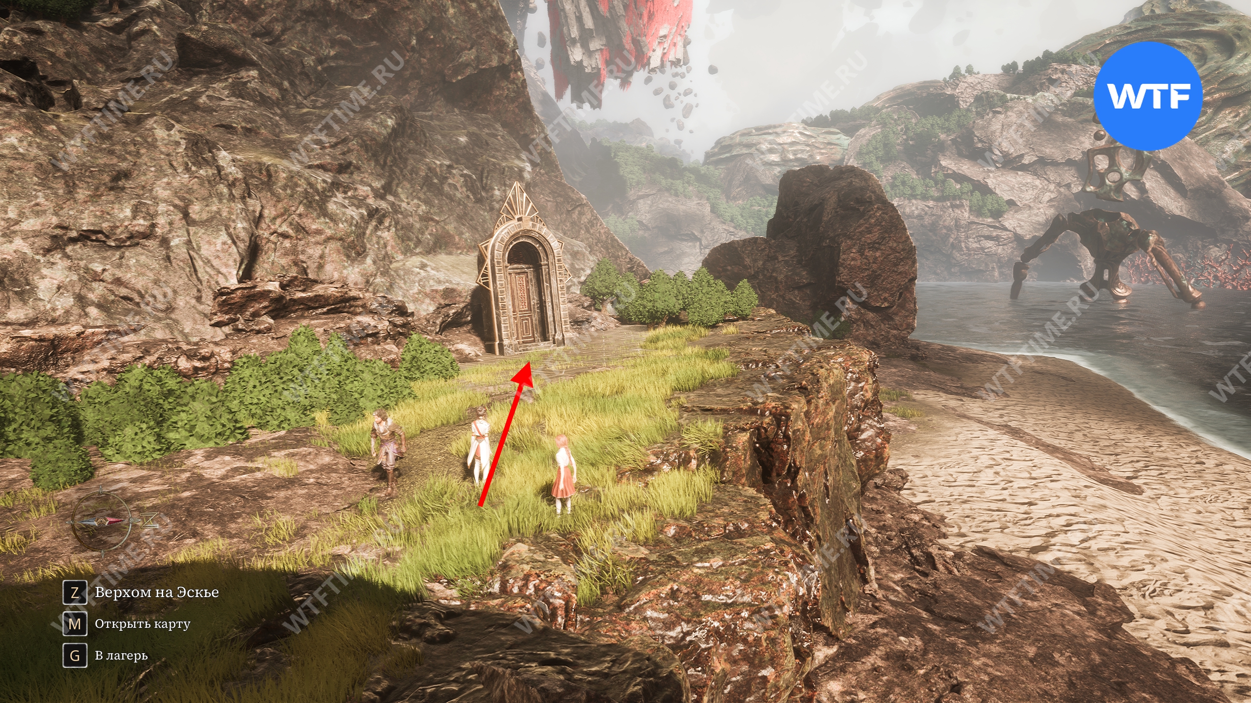 После завершения первого акта вы получите возможность плавать на Эскье. Доберитесь до безымянного острова со скриншота ниже, расположенного к северо-западу от Утесов Каменной волны. Там вы найдете одиноко стоящую дверь.