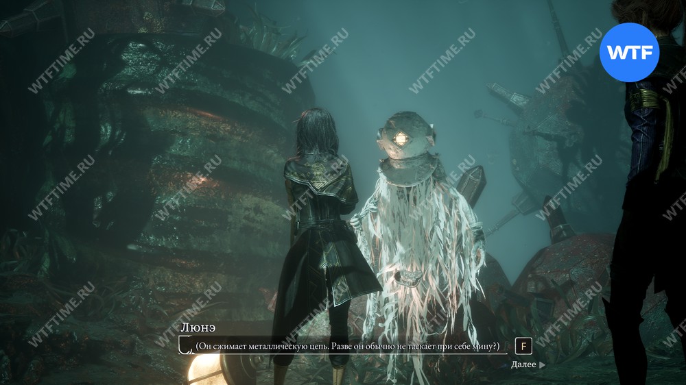 Там вы встретите белого деминера, сжимающего в руке пустую металлическую цепь. В отличие от обычных невронов, он не станет на вас нападать. Чтобы ему помочь, вы должны отыскать пропавшую мину.