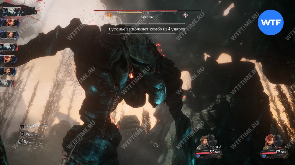 Также у Бутонье есть несколько комбо, сочетающих в себе удары руками и головой. Для начала запомните эти комбинации, уклоняясь, а потом переходите к более сложным парированиям для нанесения дополнительного урона.