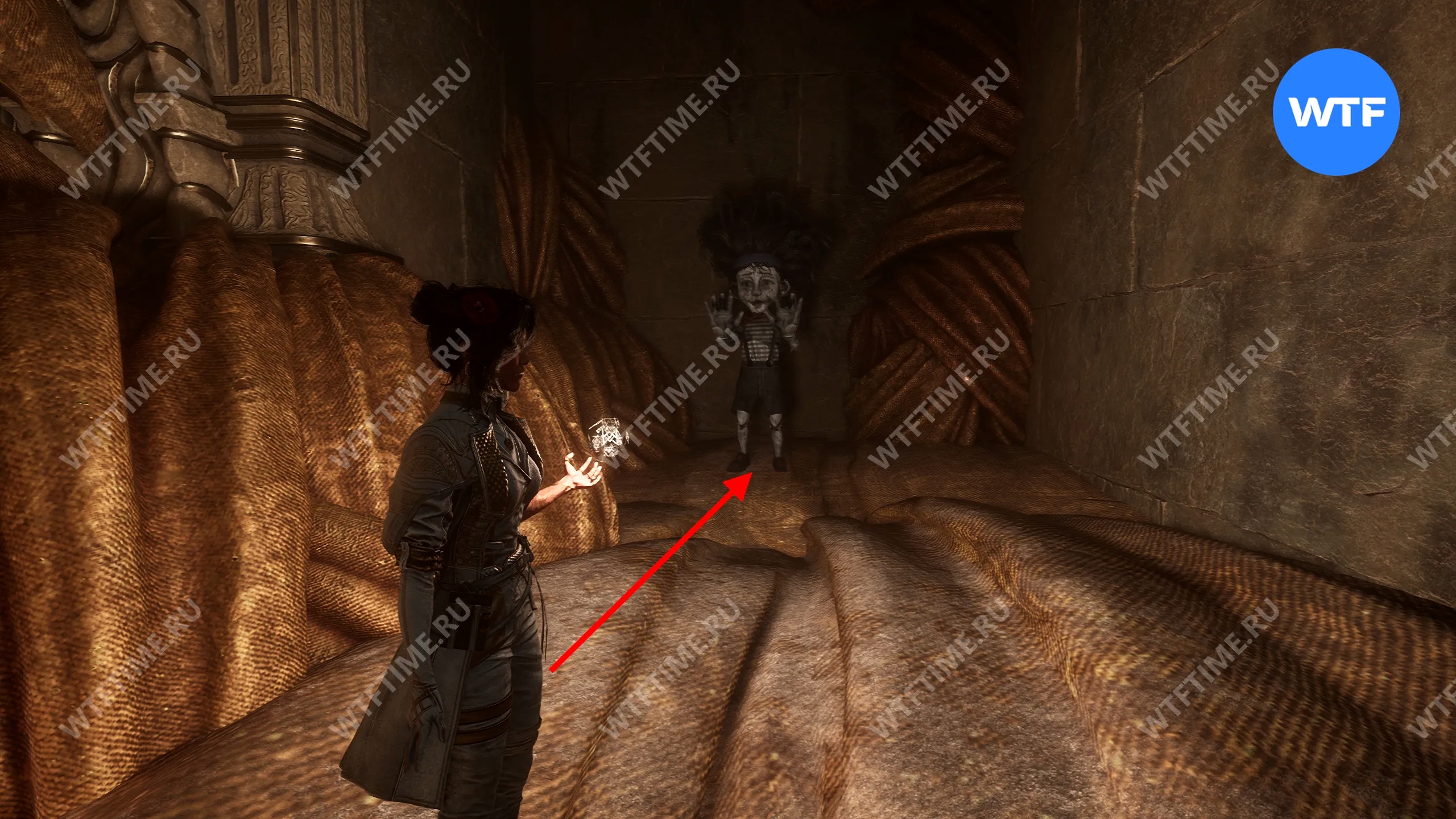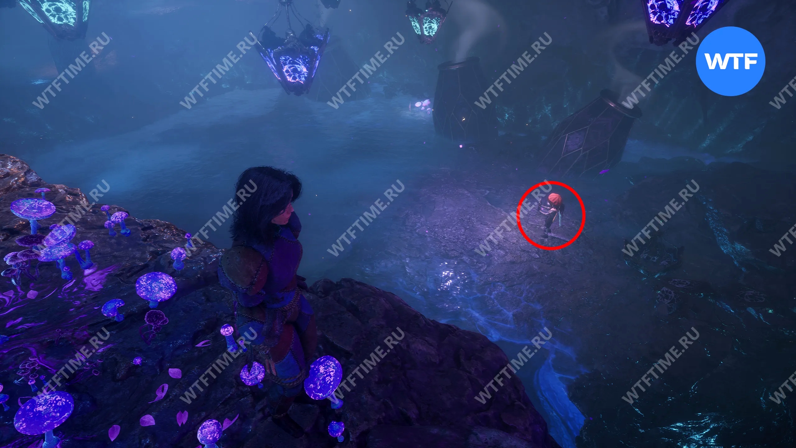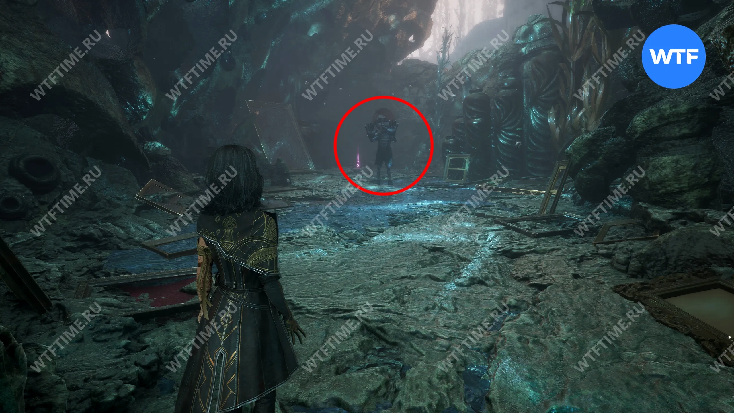 От него сверните направо, а затем держитесь левее. Дальнейший сюжетный путь будет подсвечен фонариками, но слева от него есть неприметная тропа среди водорослей, которая приведет вас к миму.