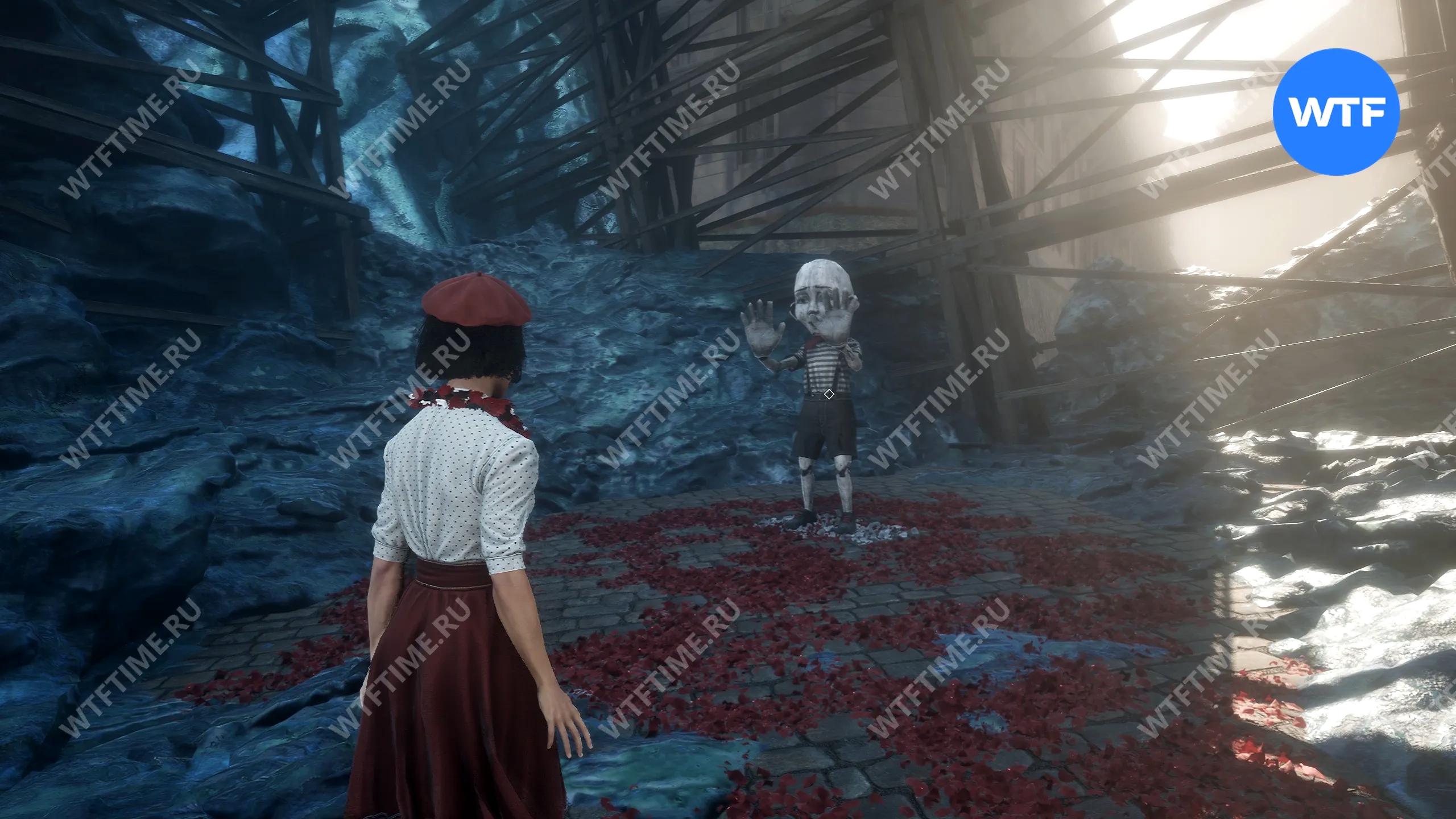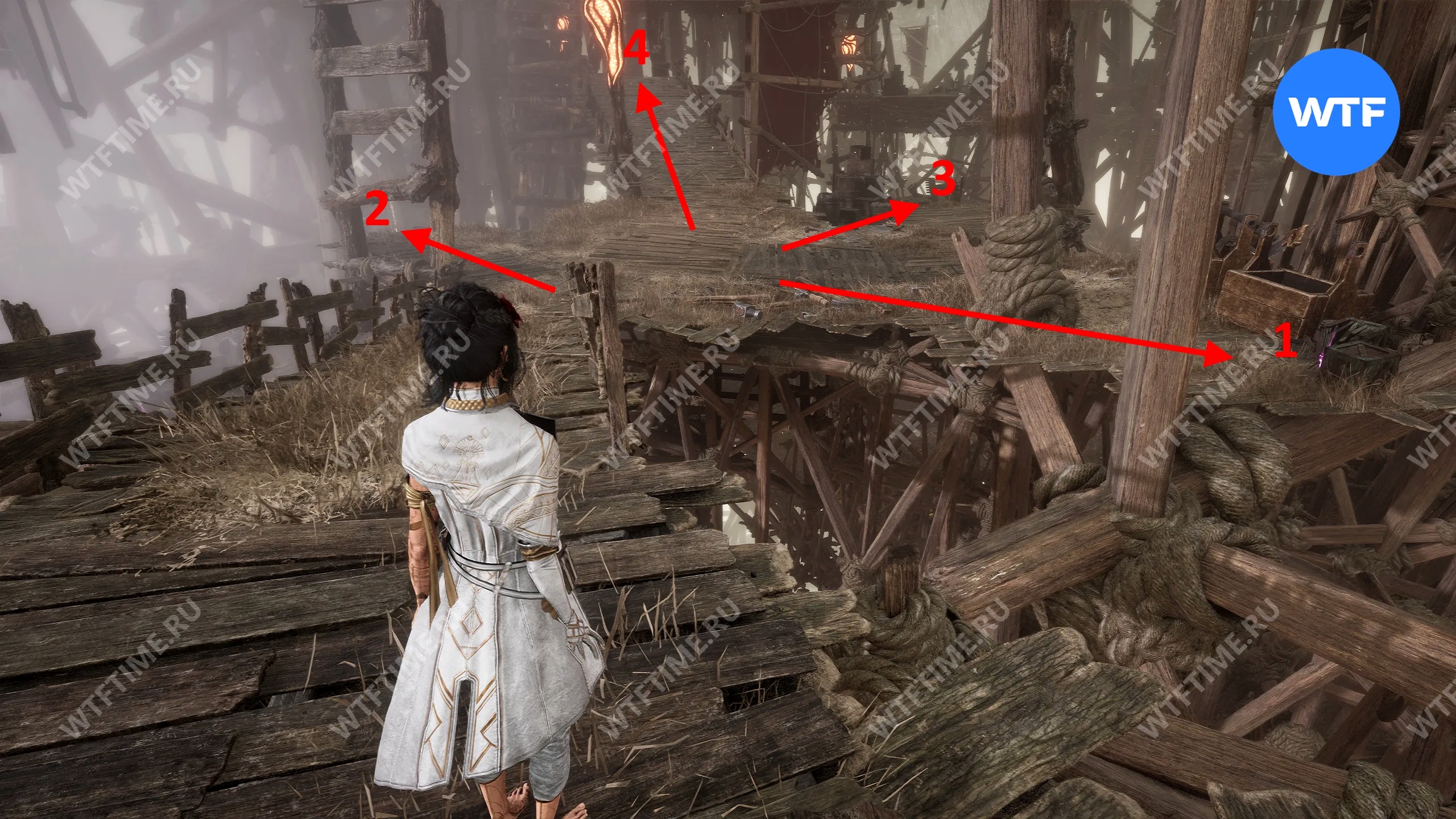 Пройдя мимо Тающего мужчины, вы вскоре окажетесь возле стены с опорами, по которым можно подняться наверх. Этот путь в итоге приведет вас к Миму Старого Люмьера.