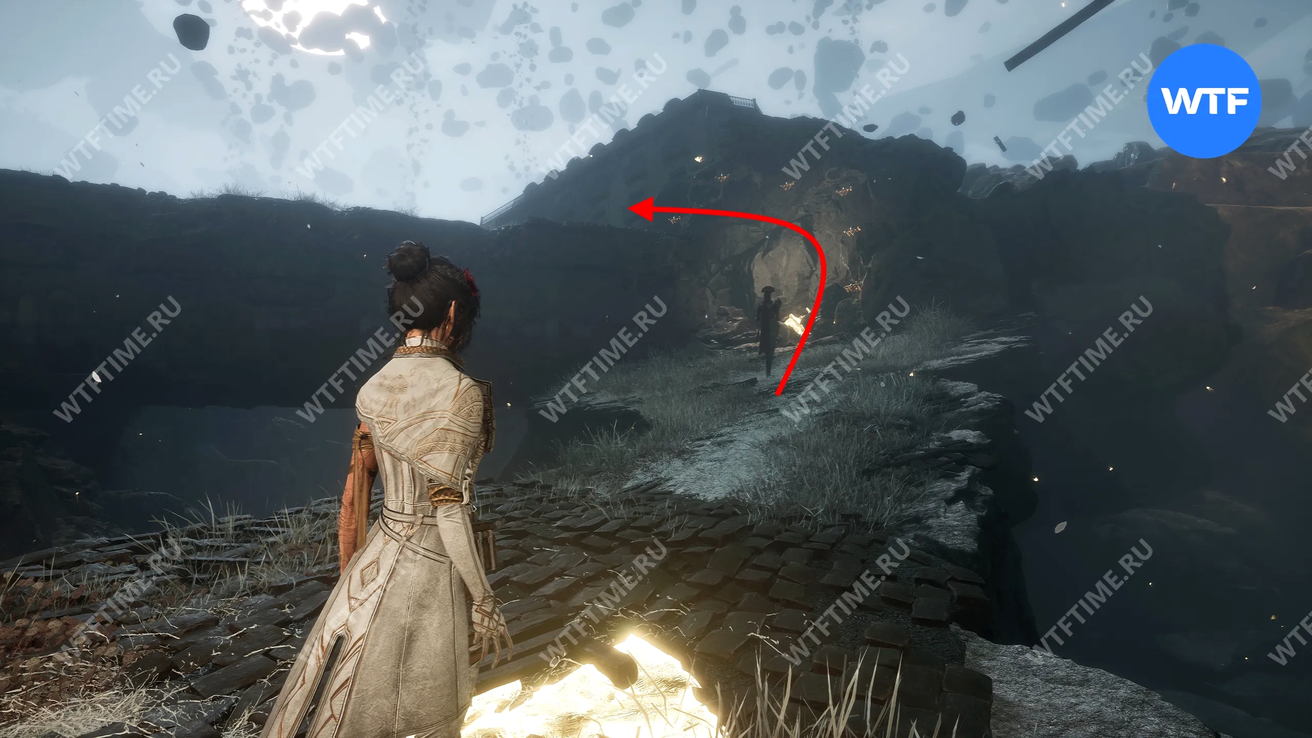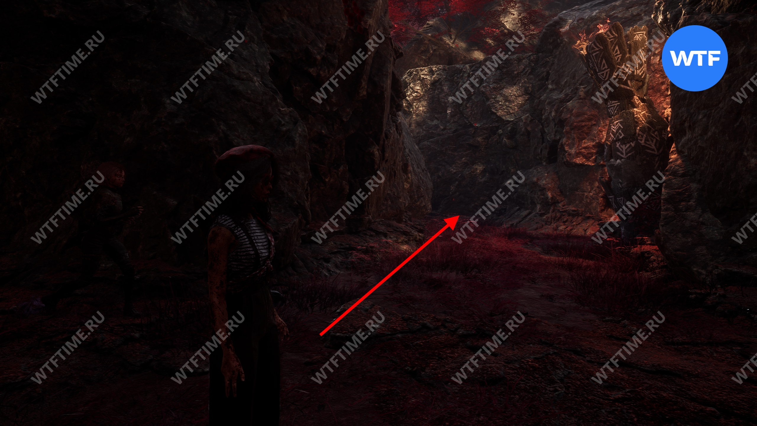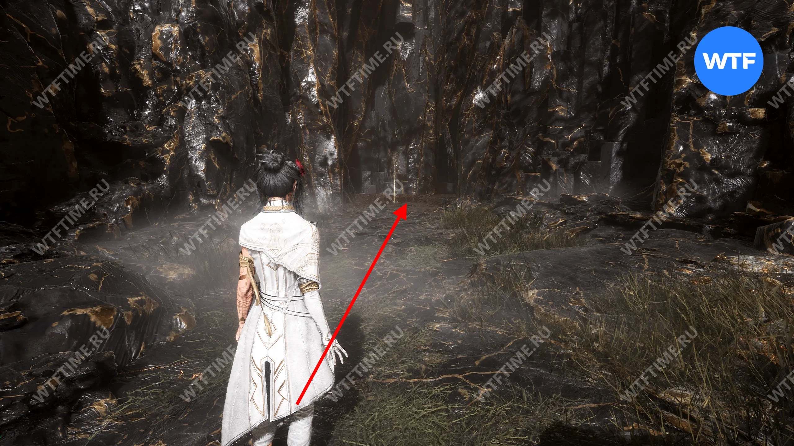 Справа от журнала есть проход среди скал, который в итоге приведет вас к Миму Желтой жатвы.