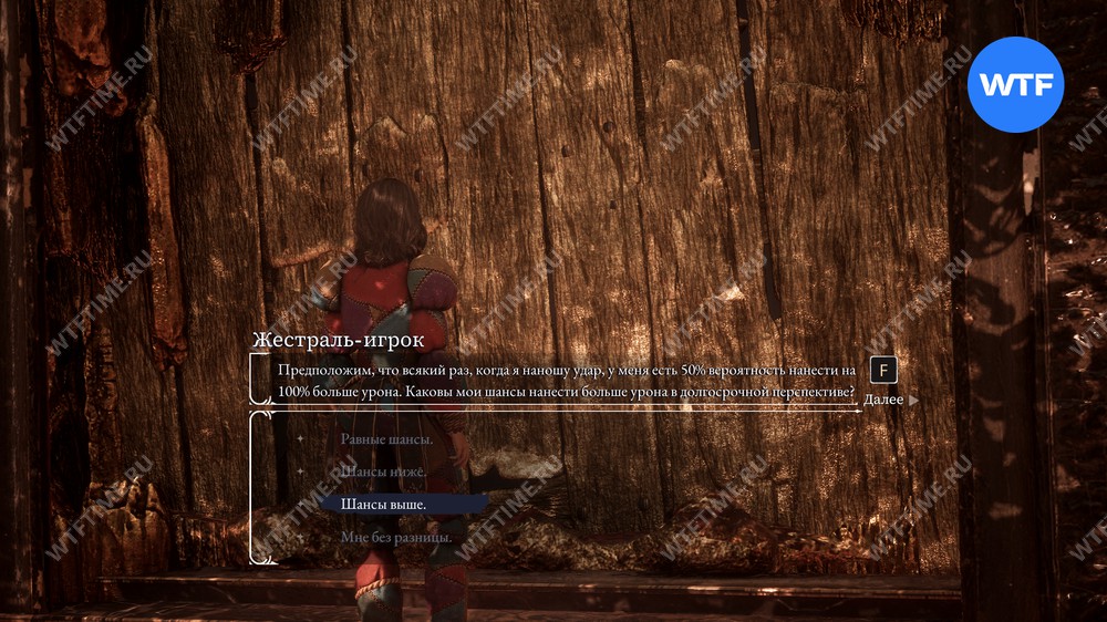 На самом деле, здесь не нужно проводить какие-то сложные вычисления и высчитывать вероятности, так как правильный ответ — «Мне без разницы». Он полностью устраивает жестраля-игрока, просто потому что так увлекательнее.
