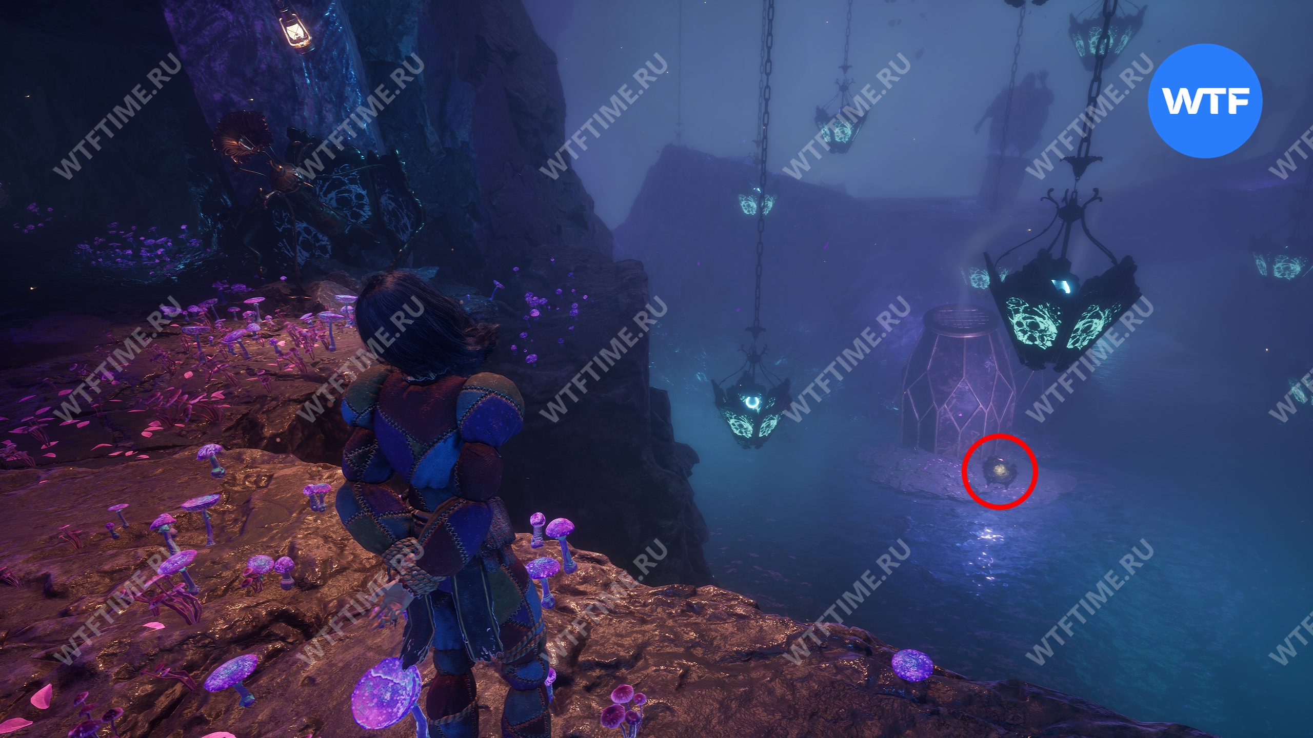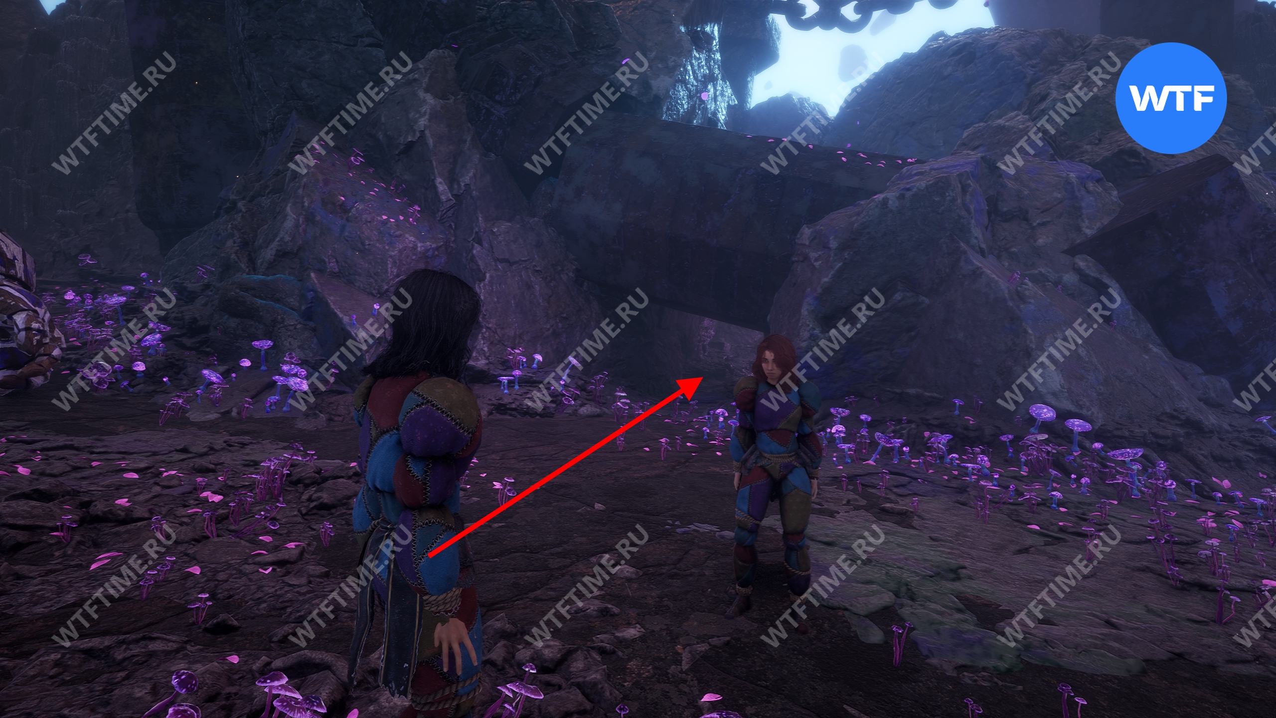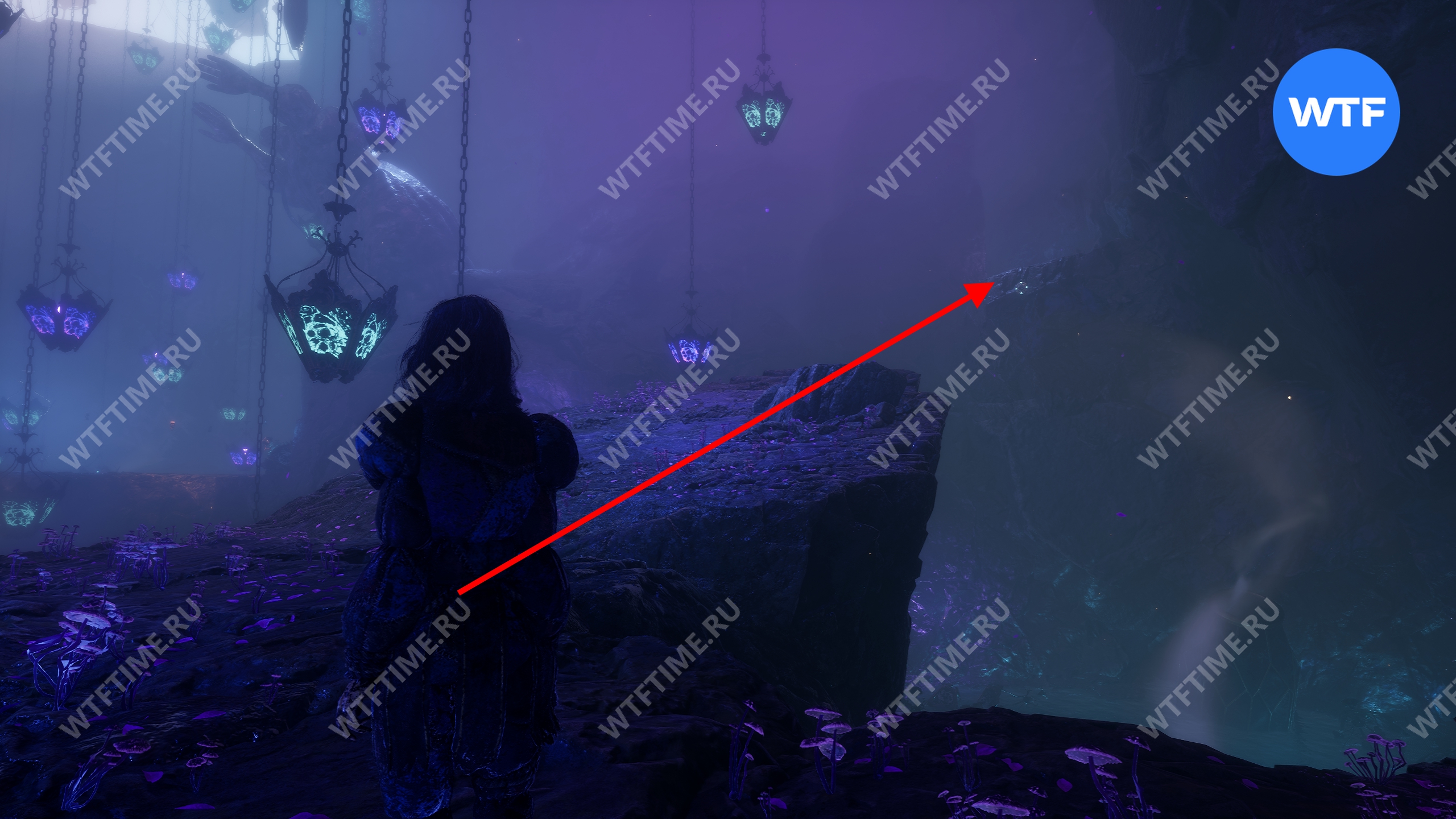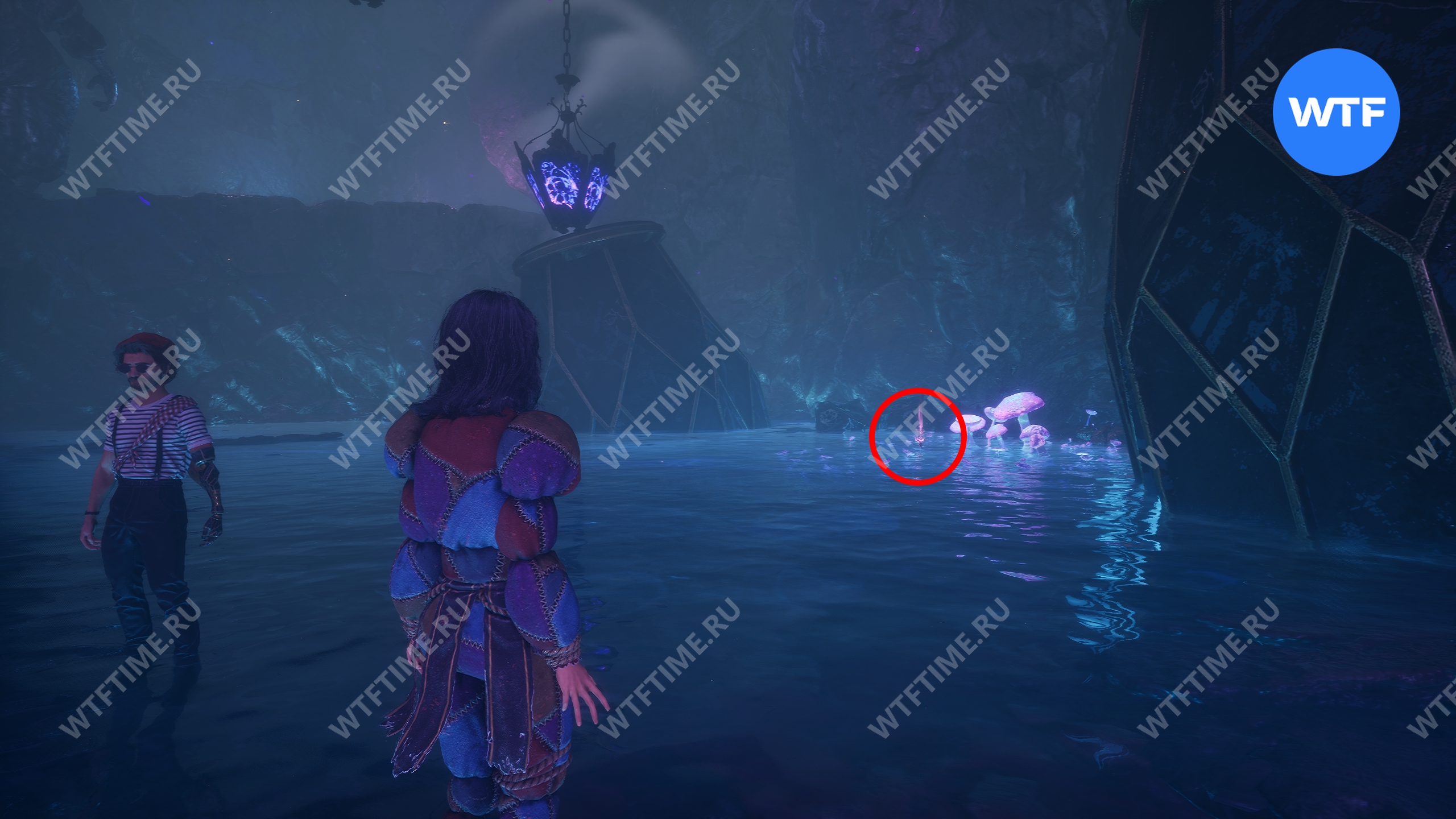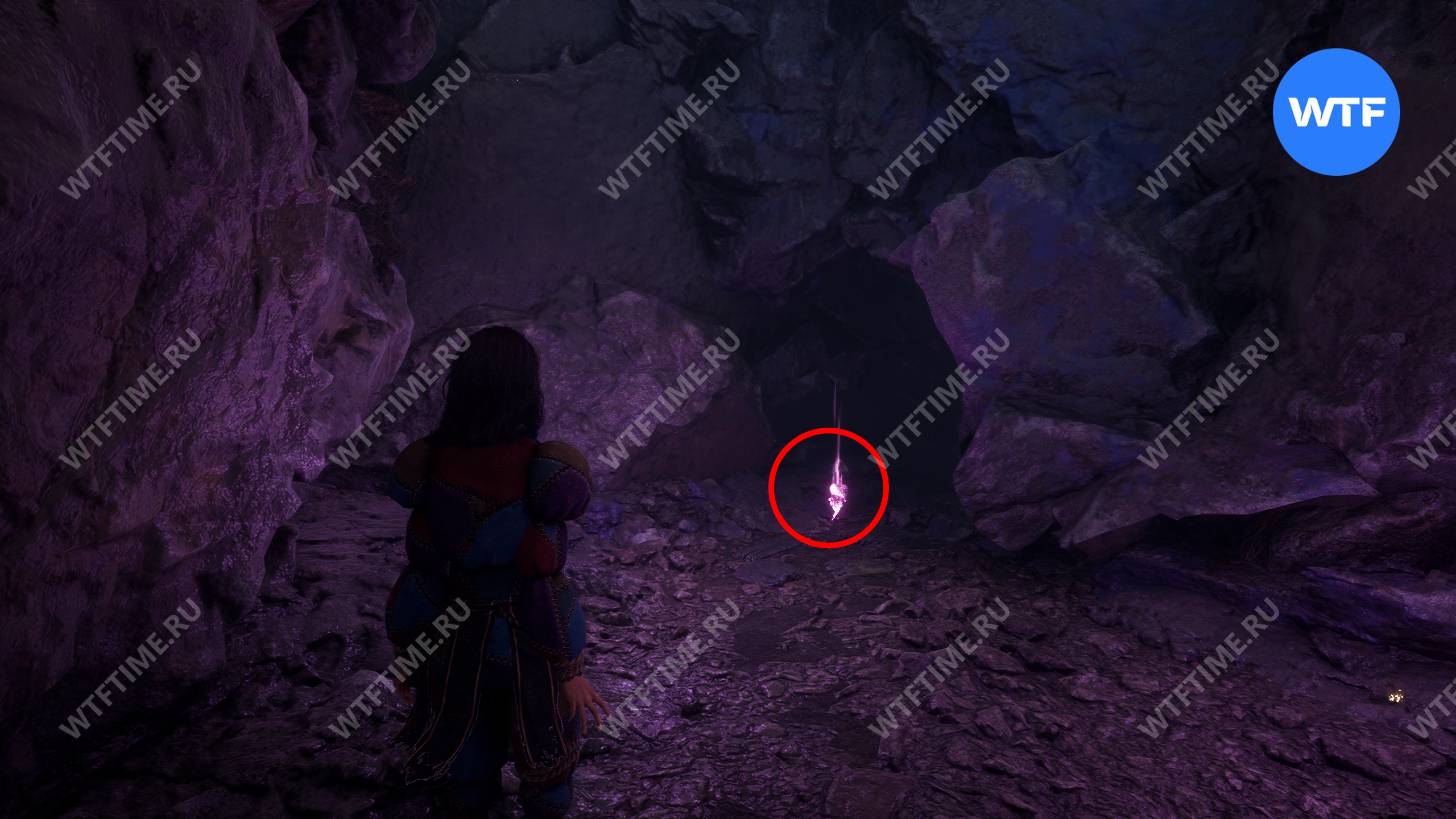 После боя с мимом не спешите подниматься обратно на мост. Вместо этого осмотрите правую часть пещеры и подберите там странный гриб. Это квестовый предмет, который нужно отдать Каратому в Селении жестралей.