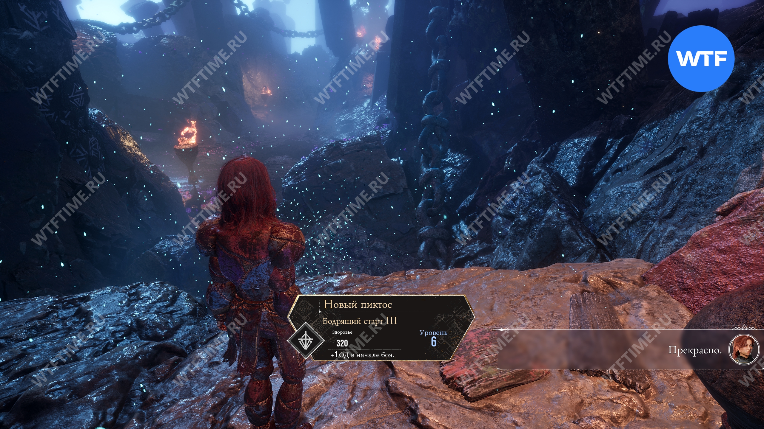 Вернитесь к левой части каменной платформы и используйте точку захвата, чтобы перебраться через пропасть. Продолжайте идти вперед, пока не увидите пиктос «Бодрящий старт III», дающий +1 ОД в начале боя, прямо на вашем пути.