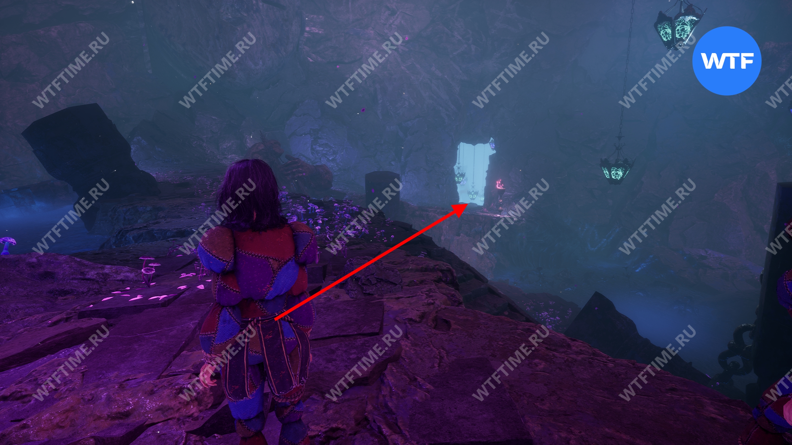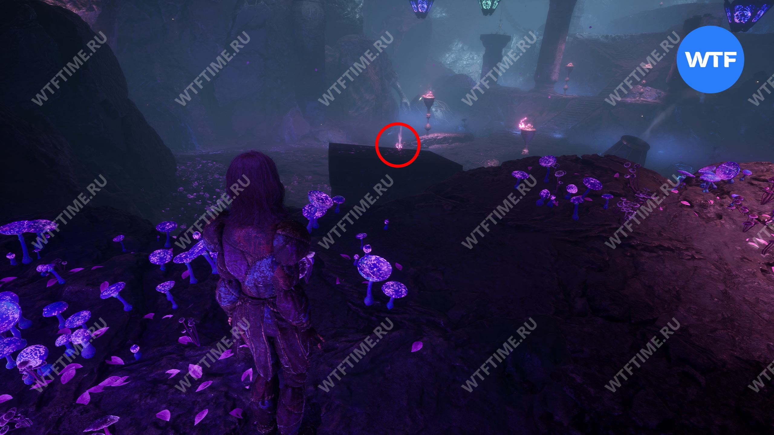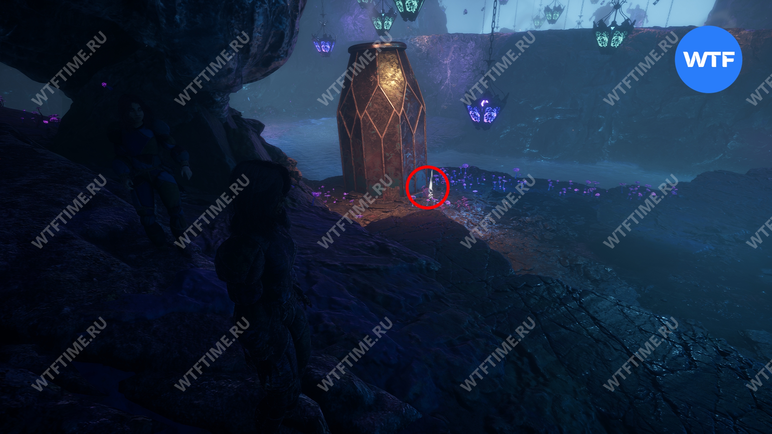 После кат сцены пройдите через небольшой лаз под упавшей колонной прямо напротив флага экспедиции «Вход». Этот путь приведет вас к цвету люмины.