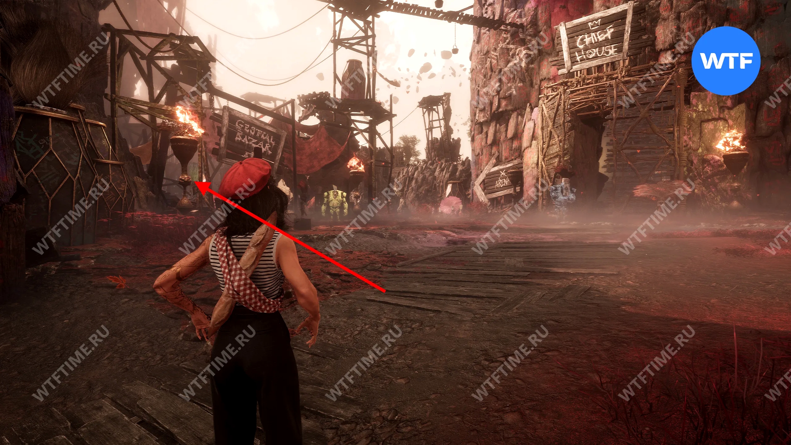 Оттуда сверните налево в сторону деревянного указателя «Gestral bazar» и пройдите через местный рынок насквозь. Это приведет вас на большое открытое пространство, где слева вы увидите огромного бульбомеха.