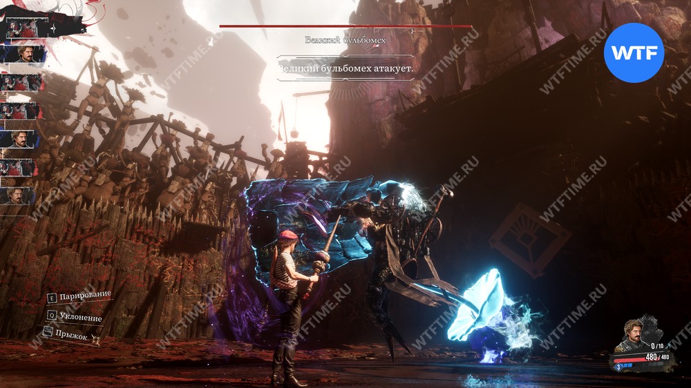 Когда вы снимите ему около 25% здоровья, бульбомех поднимет щит, снять который можно только при помощи слома. К двум предыдущим атакам добавится удар щитом и выстрел из пушки.