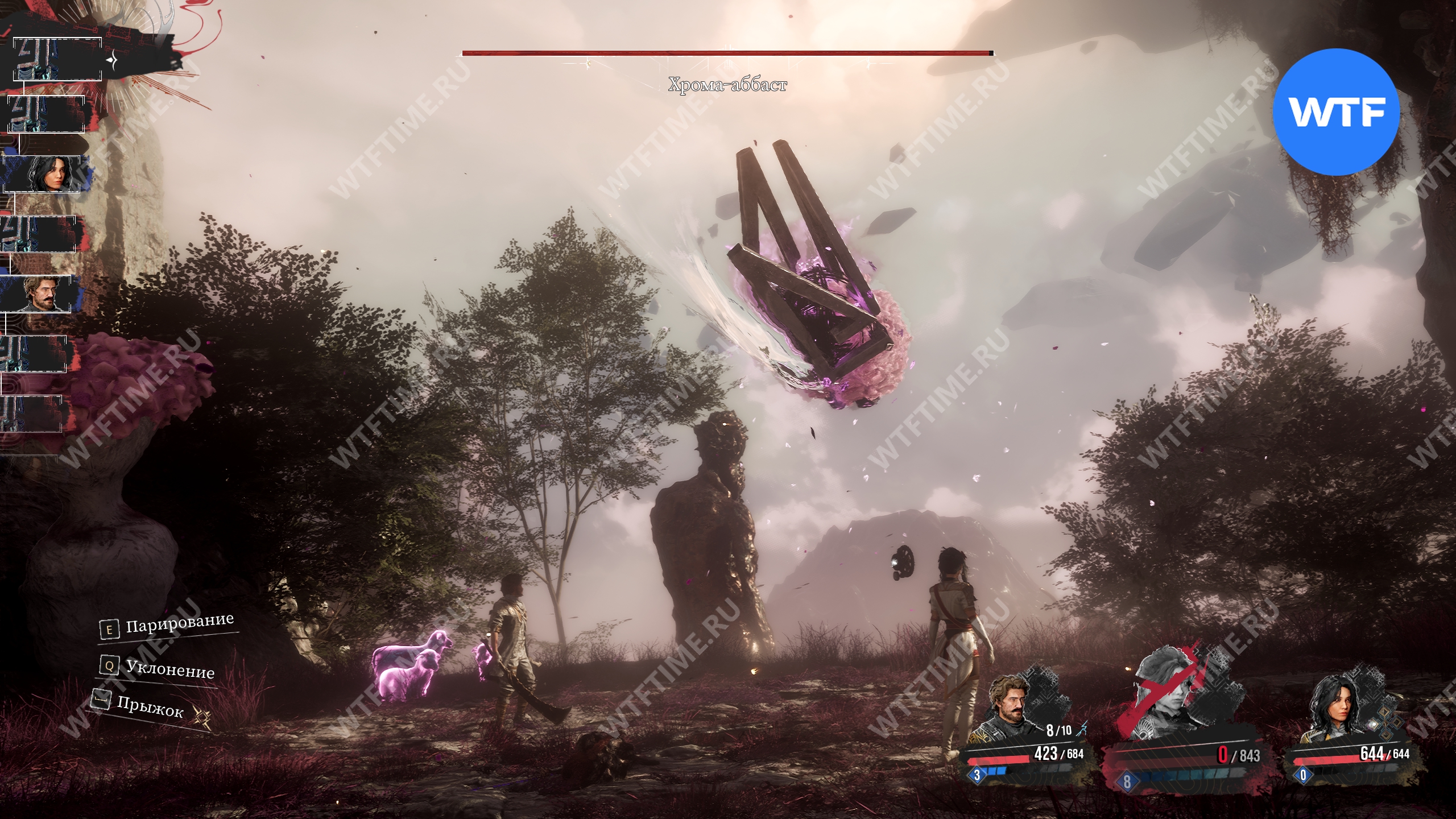 - Когда босс взлетает в воздух, он готовится атаковать вас прозрачным клинком. В этот момент смотрите на лапки. Кнопку уклонения нужно прожимать, как только увидите в них оружие;